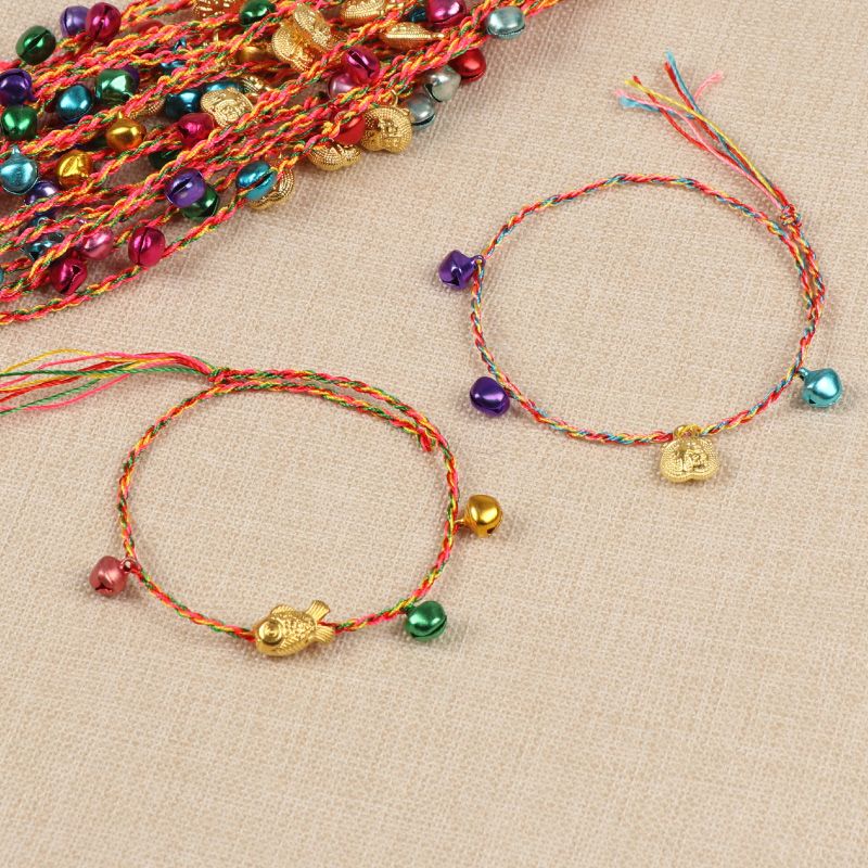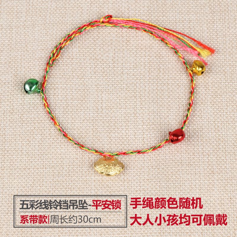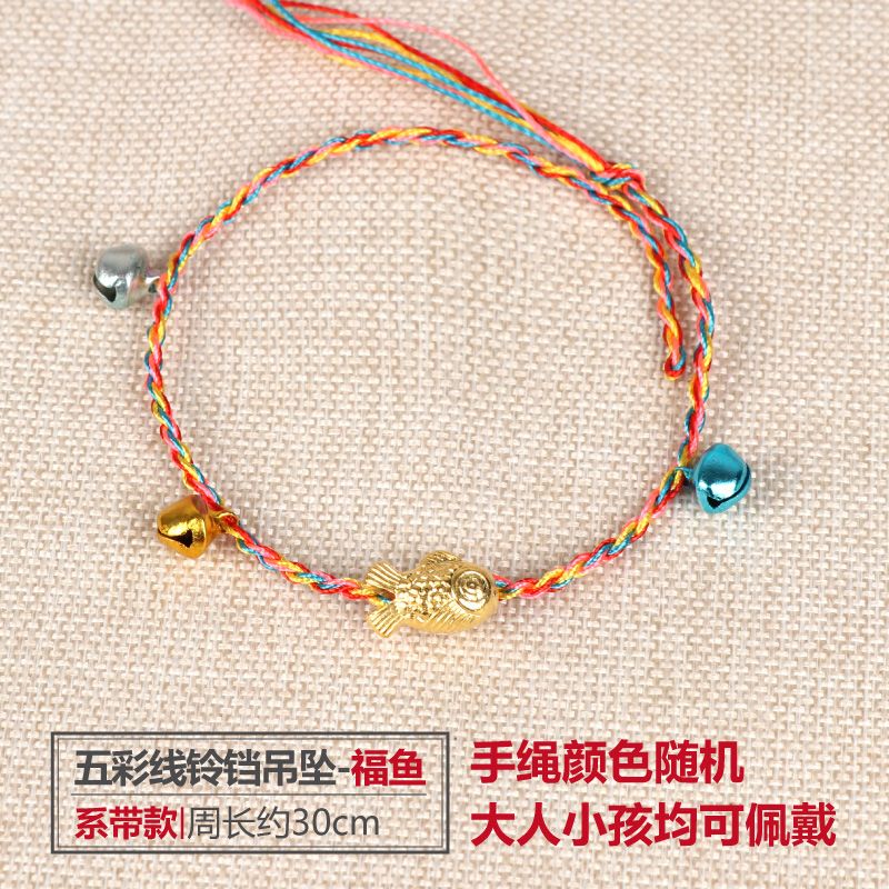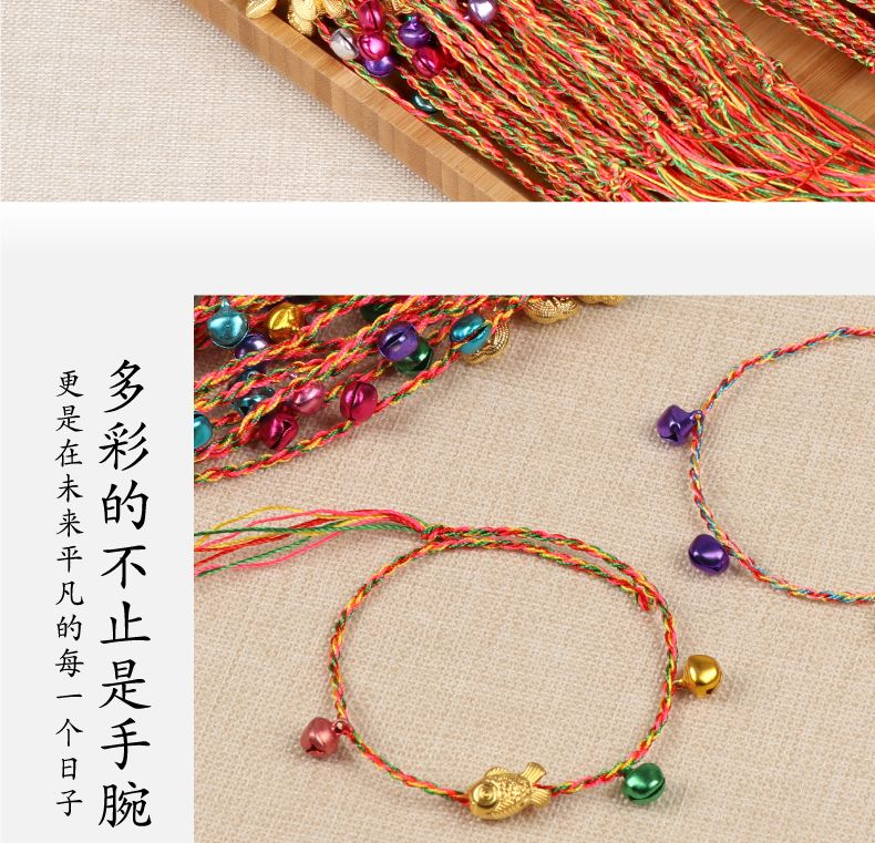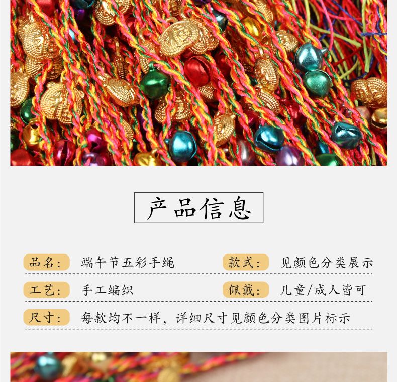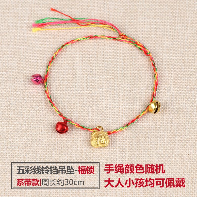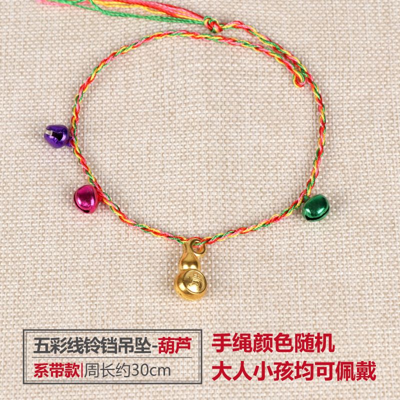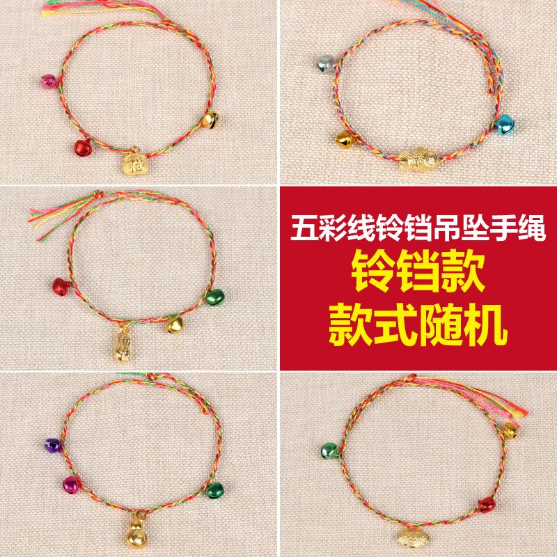 端午节五彩绳编织三线铃铛彩线手绳儿童宝宝五色线手链批发幼儿园