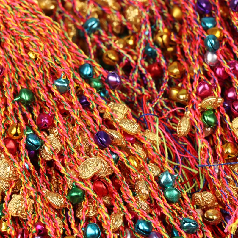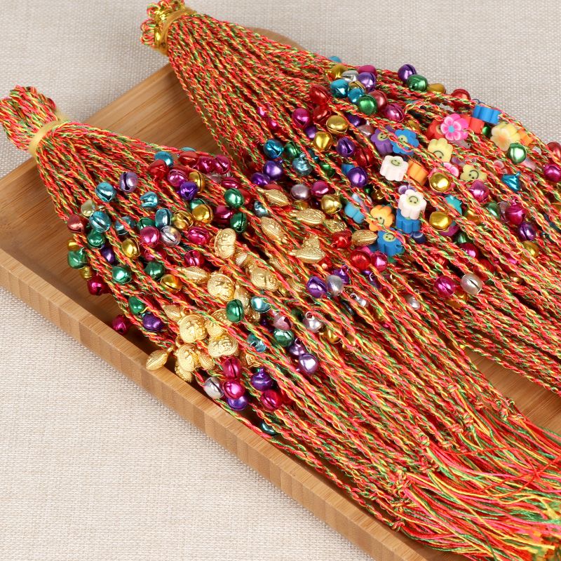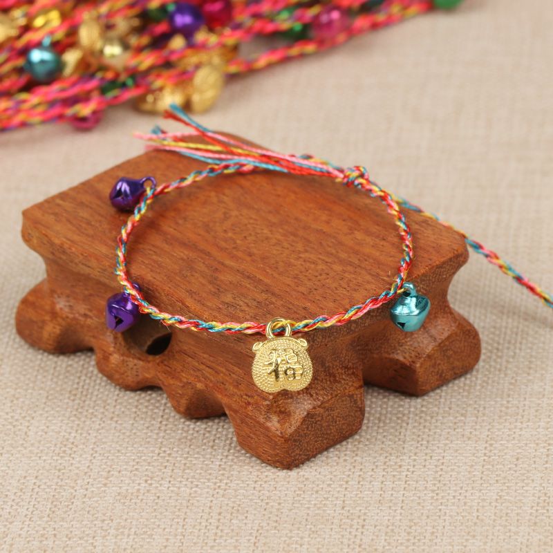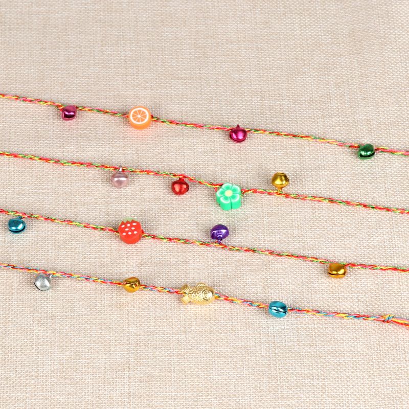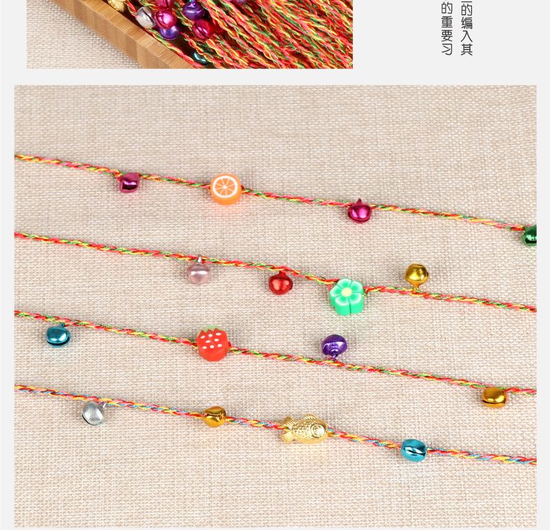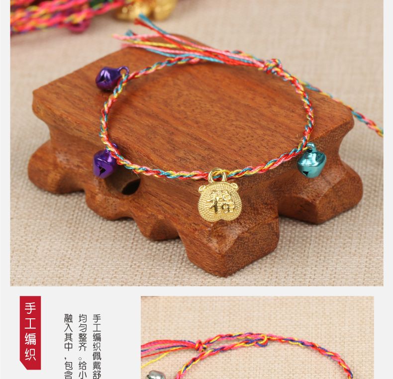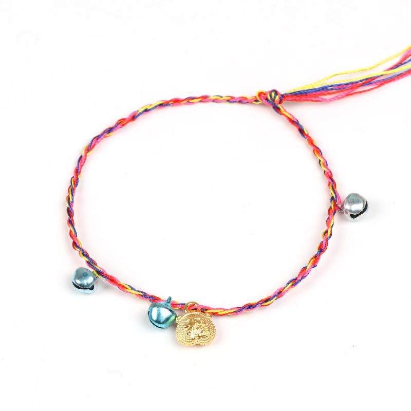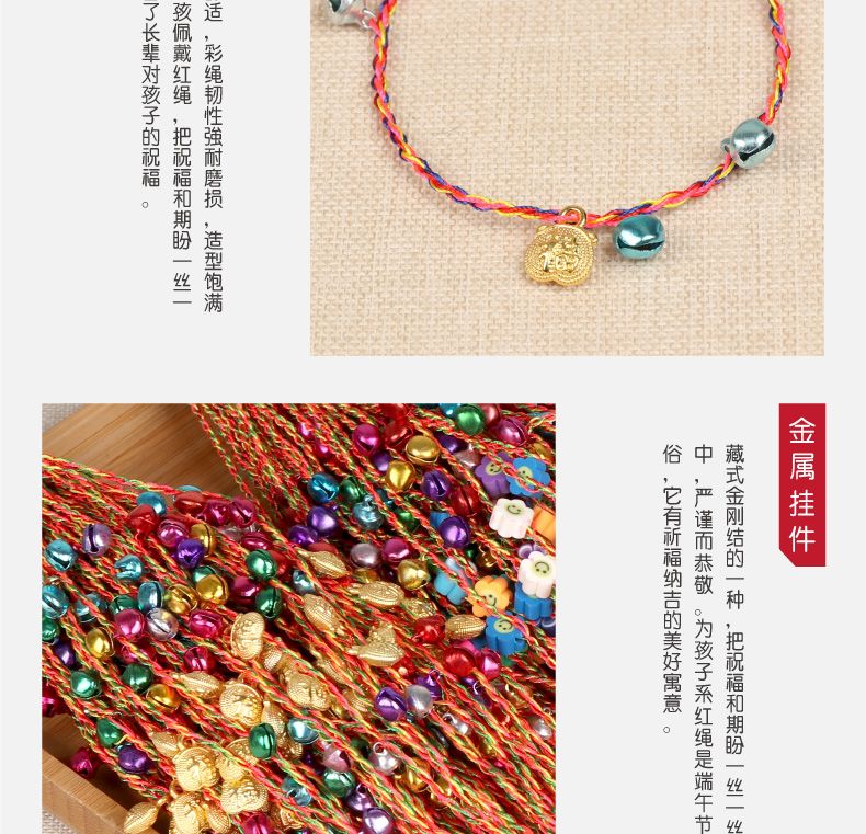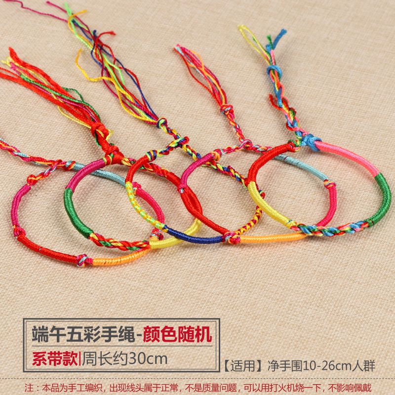 端午节五彩绳编织三线铃铛彩线手绳儿童宝宝五色线手链批发幼儿园