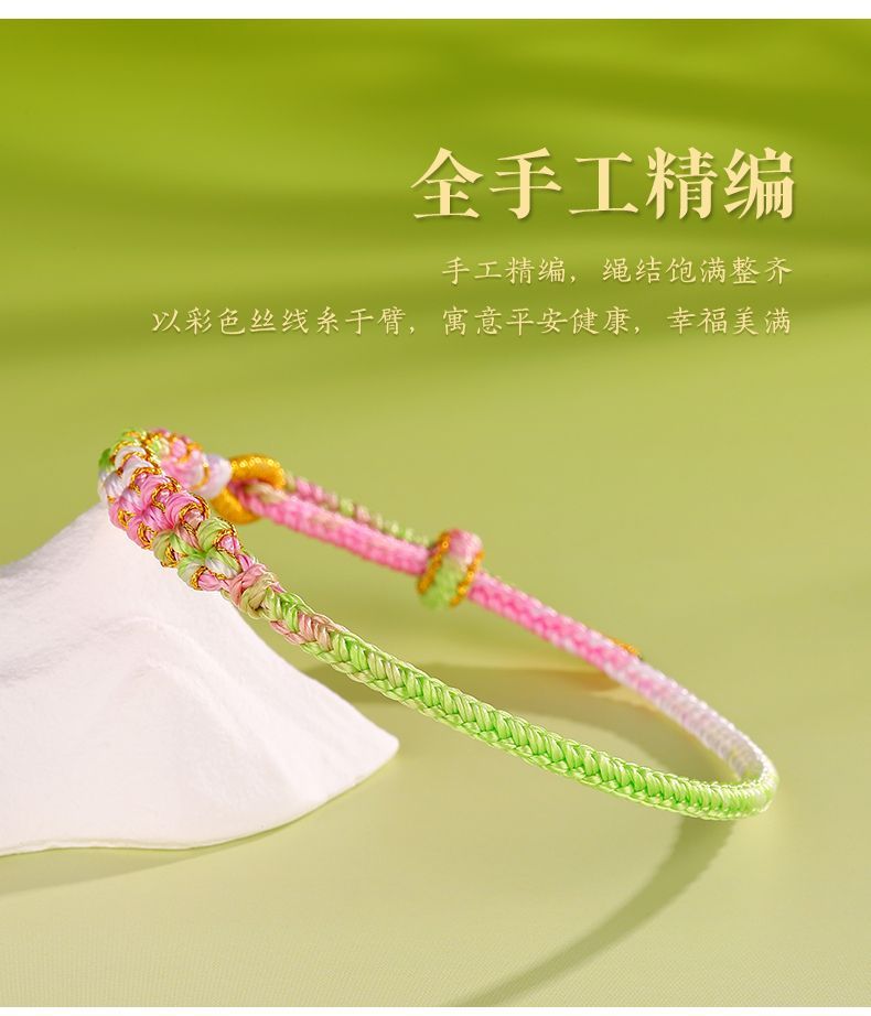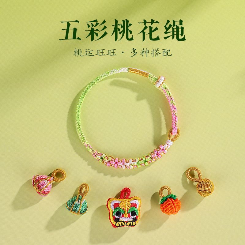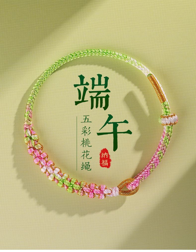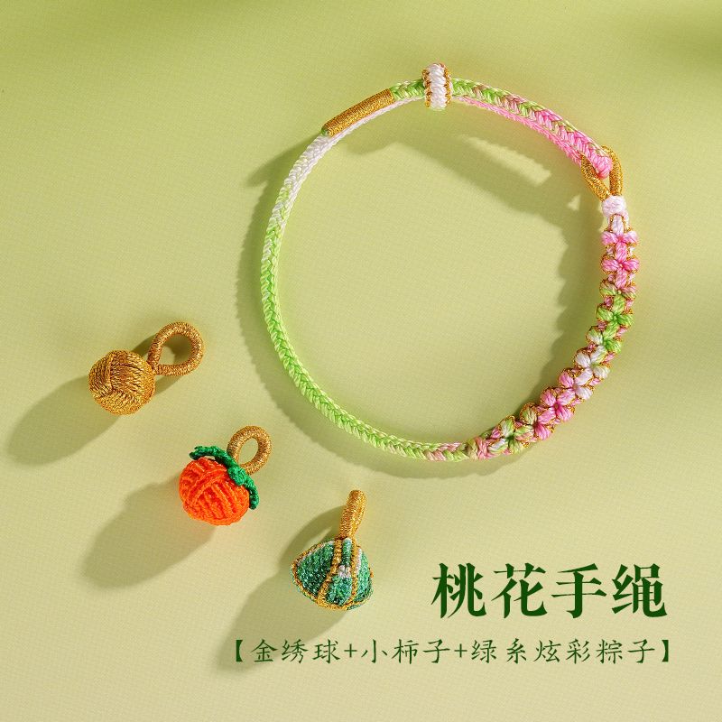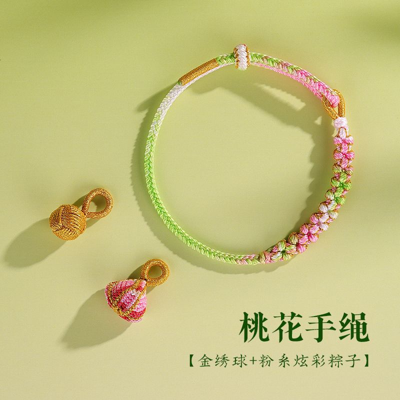 纯手工编织精品【端午节五彩绳】桃花结手绳可串粽儿童成人手链绳