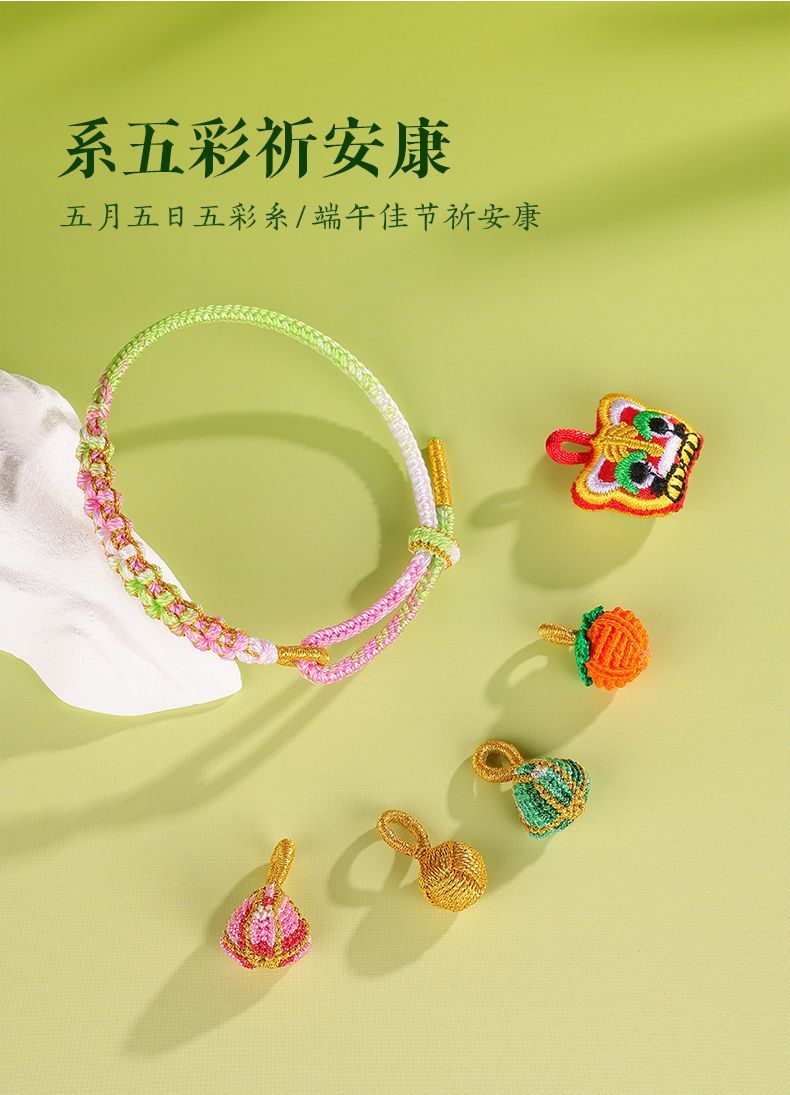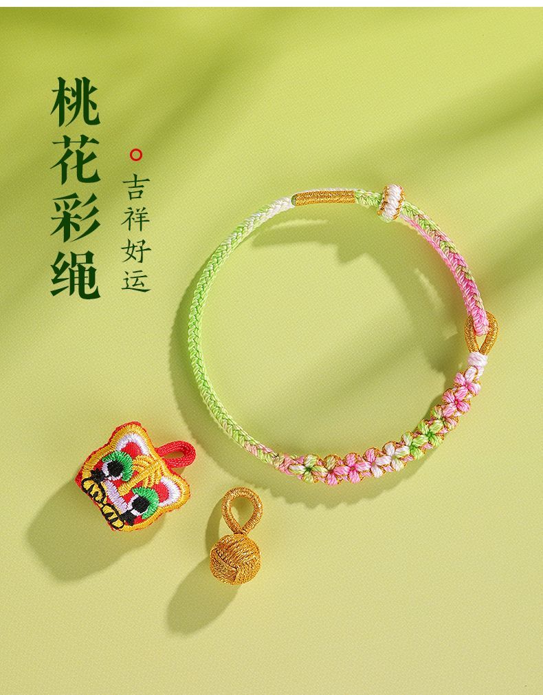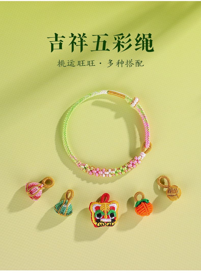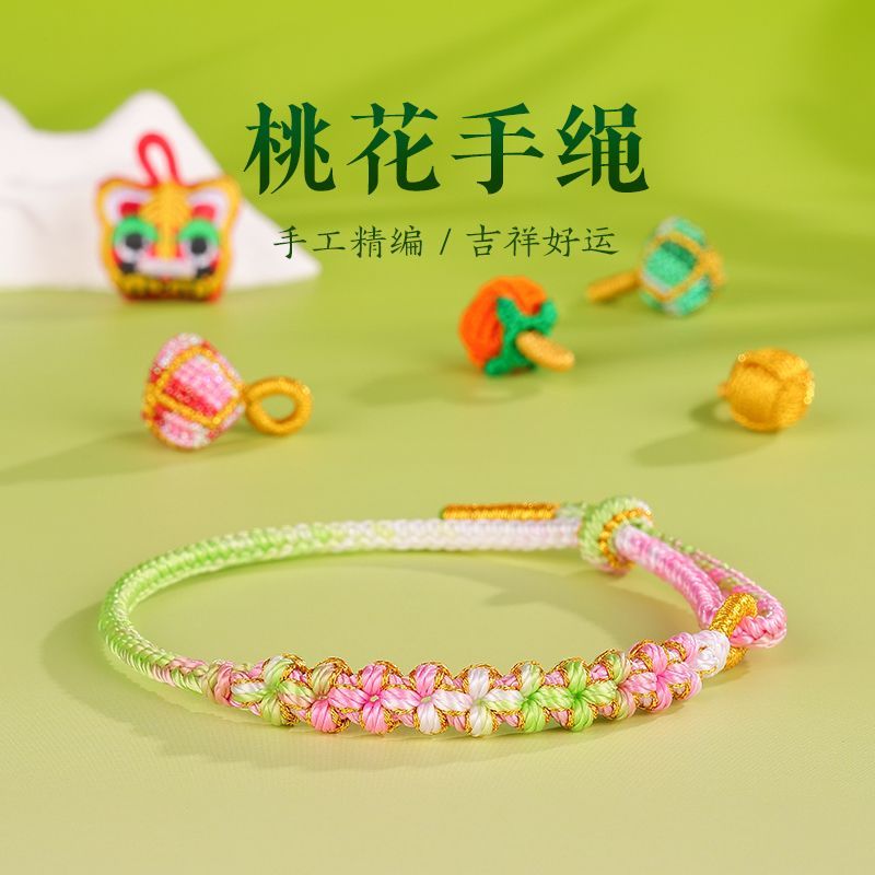 纯手工编织精品【端午节五彩绳】桃花结手绳可串粽儿童成人手链绳