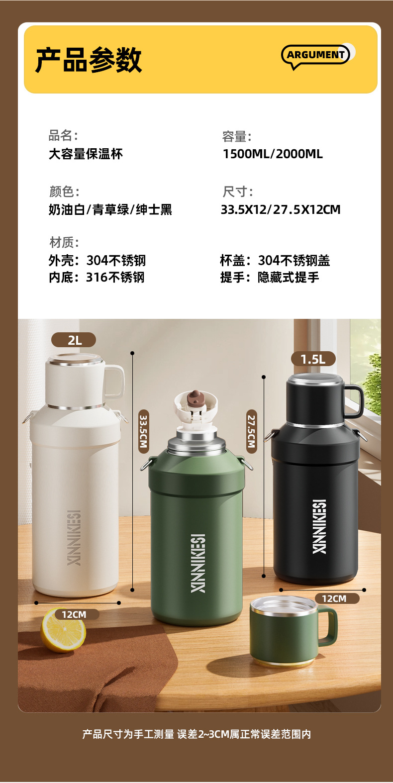 超大容量保温杯户外旅行便携保温壶316不锈钢杯子高颜值车载大号