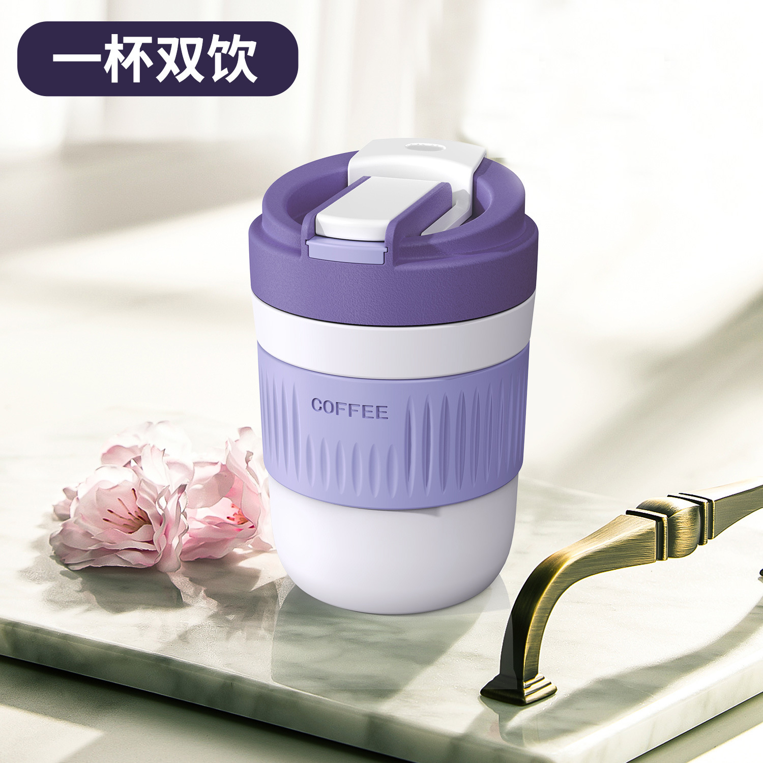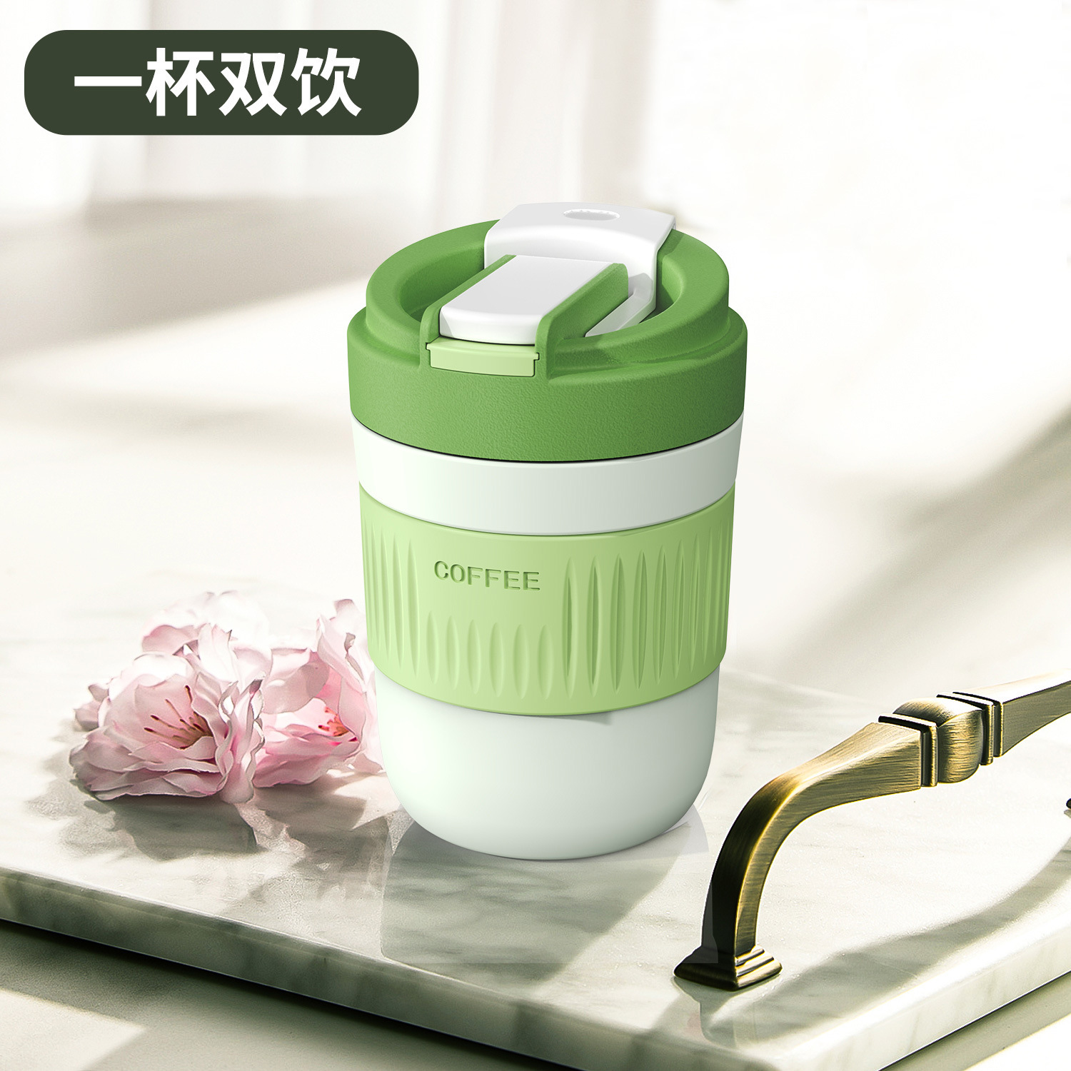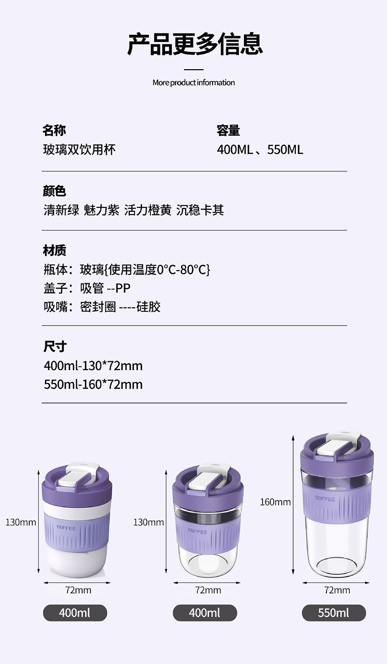 双饮杯带吸管杯咖啡杯便携水杯小礼品杯子玻璃杯高颜值牛奶杯批发