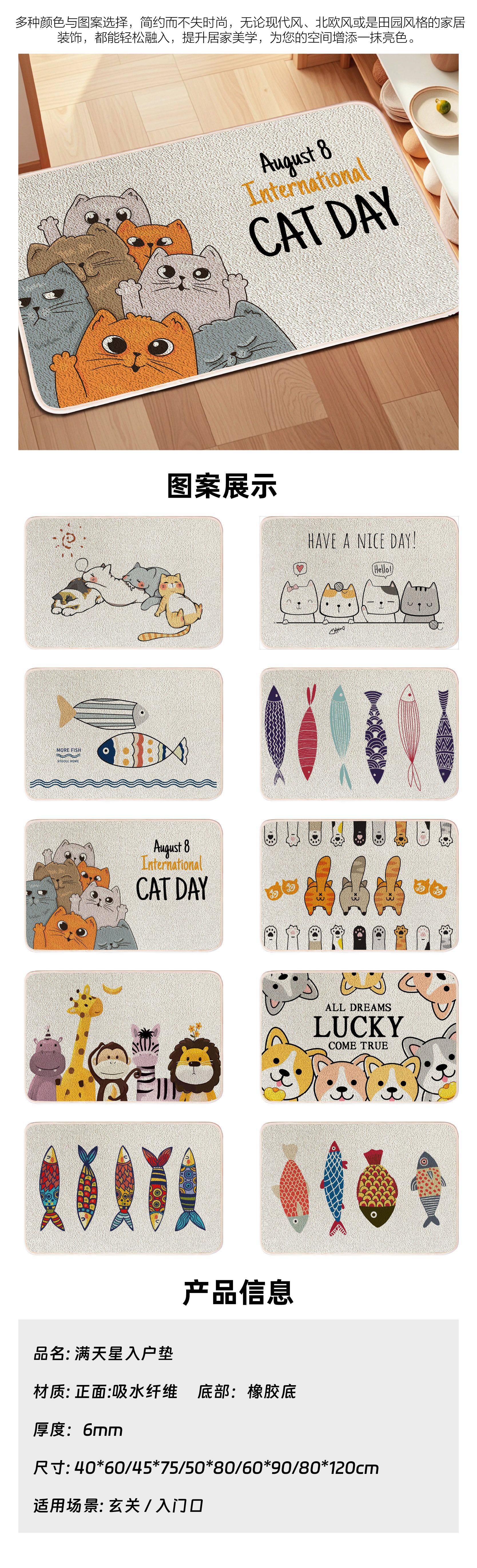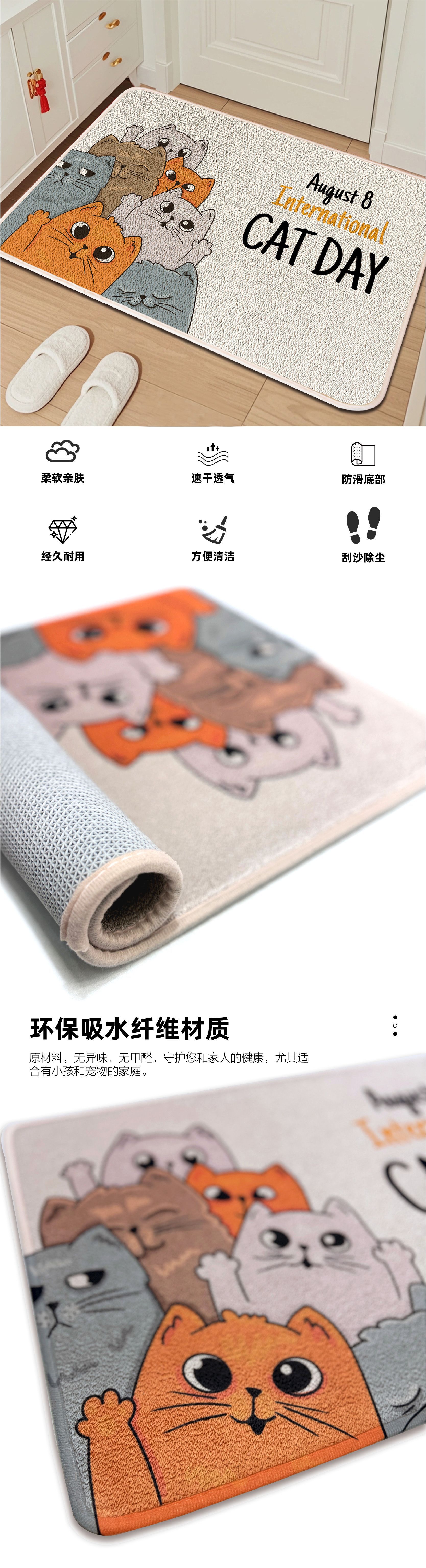 跨境卡通入户门垫厨房圈绒TPR防滑浴室地垫吸水玄关耐脏蹭脚垫