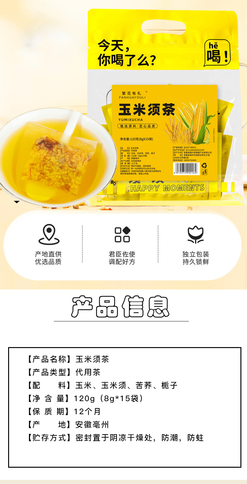 厂家玉米须茶玉米纤维泡水喝熬夜肝养独立茶包元气休闲养生茶代发
