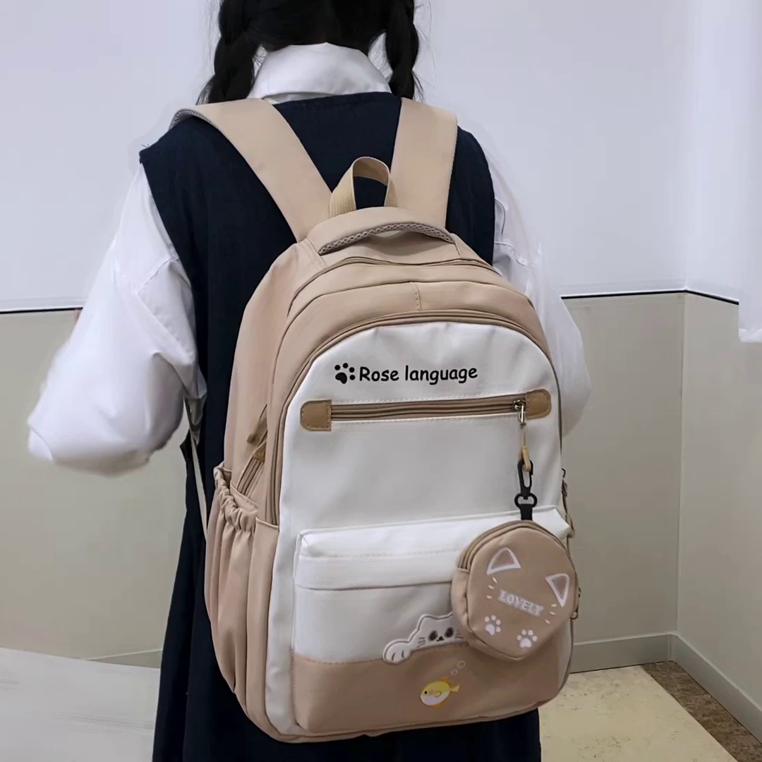 小清新书包女初高中生多功能四件套双肩背包高颜值可爱小猫背包