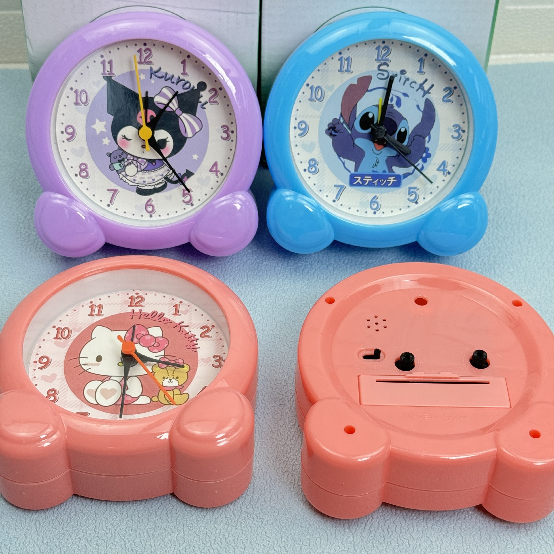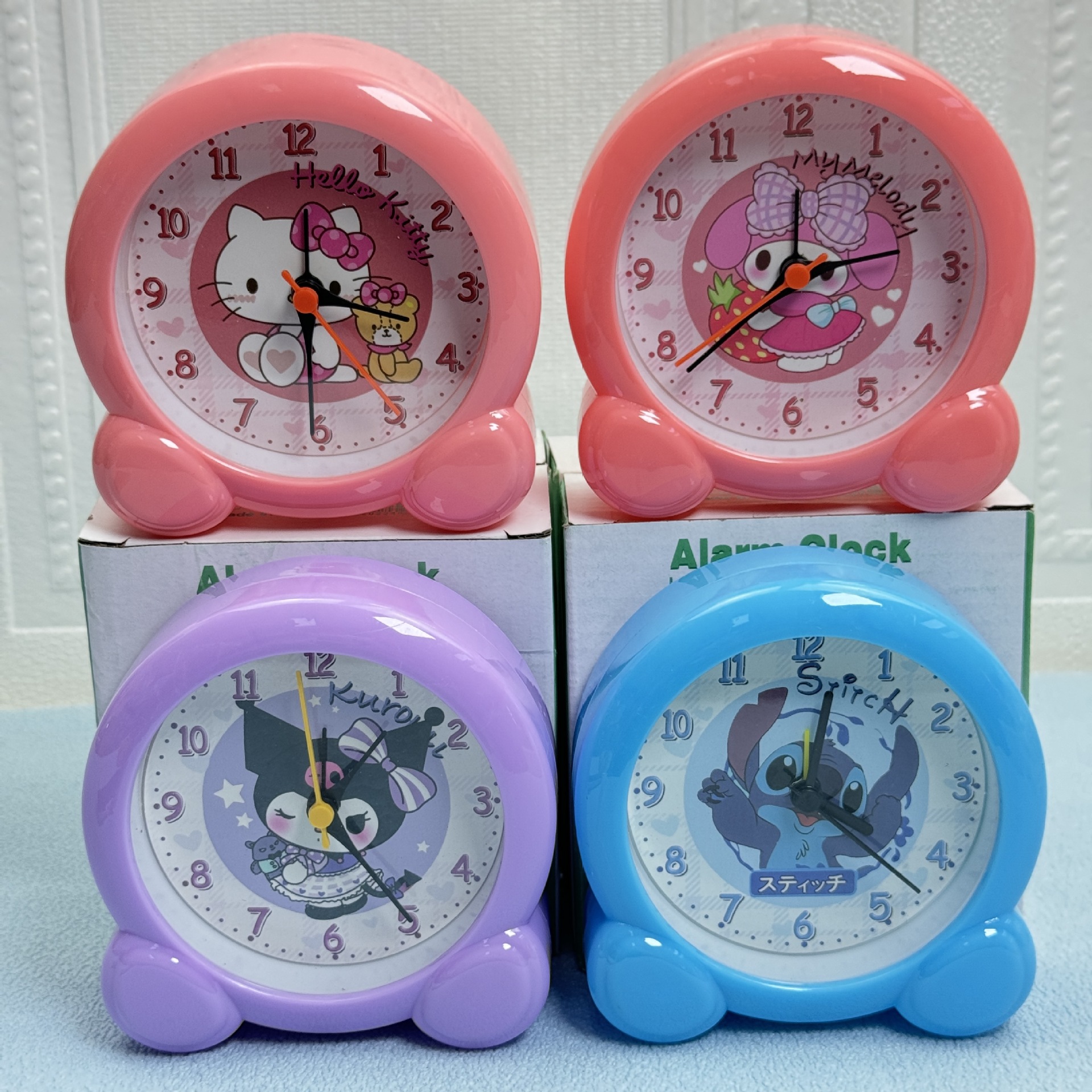 三丽鸥库洛米史迪仔美乐蒂KT猫闹钟趣味卧室静音桌面摆件时钟奖品