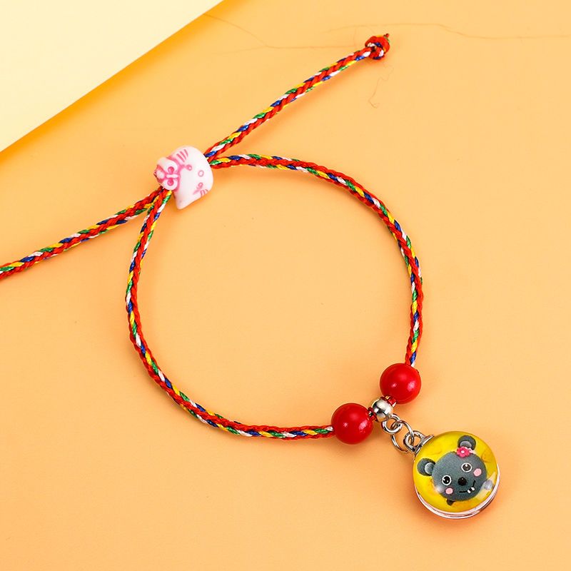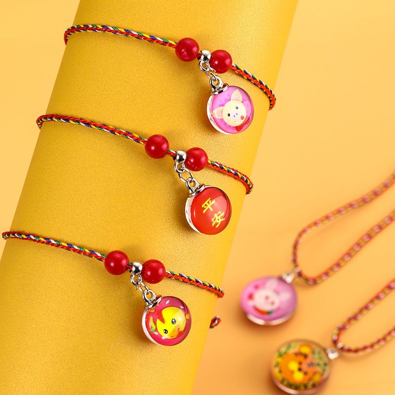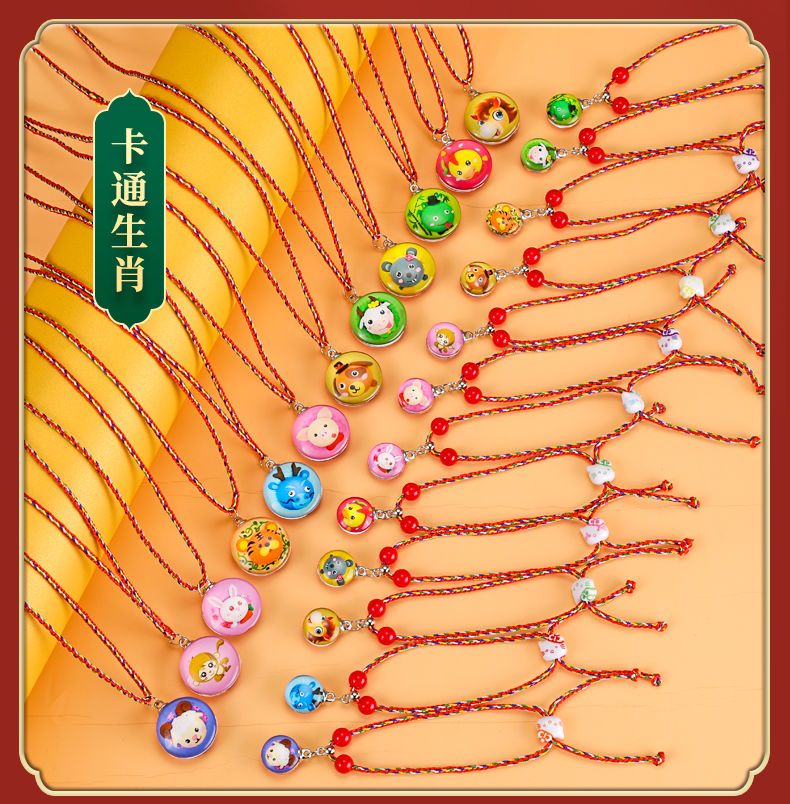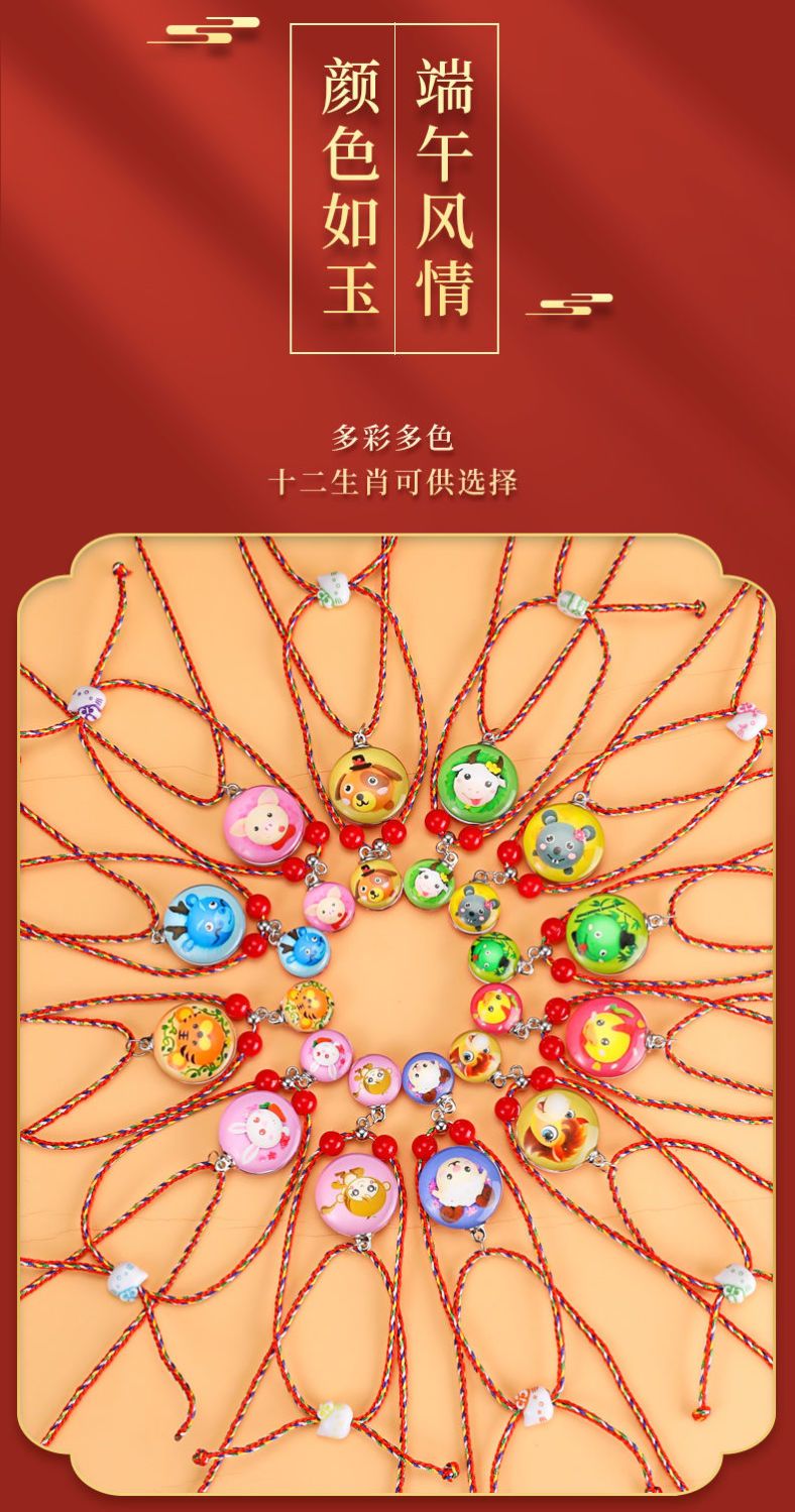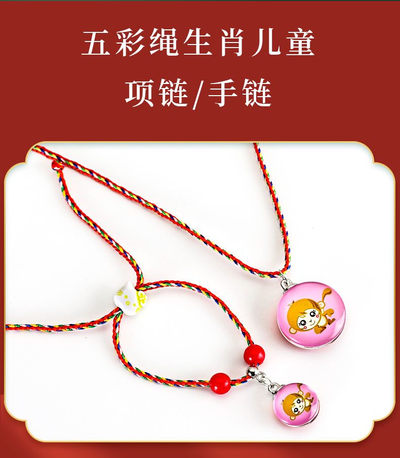 挂脖五彩绳十二生肖挂件编织手绳礼物手链儿童脖子挂绳绳彩绳礼品