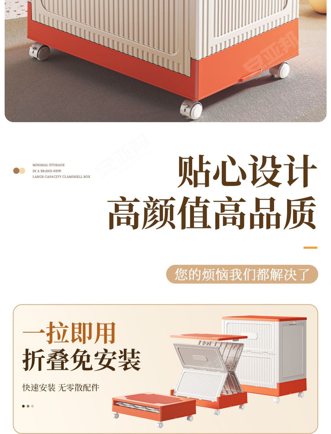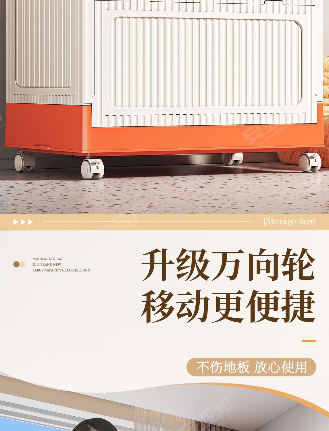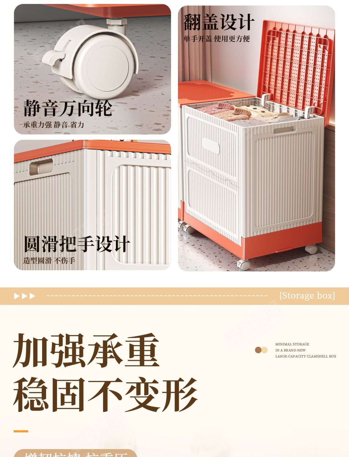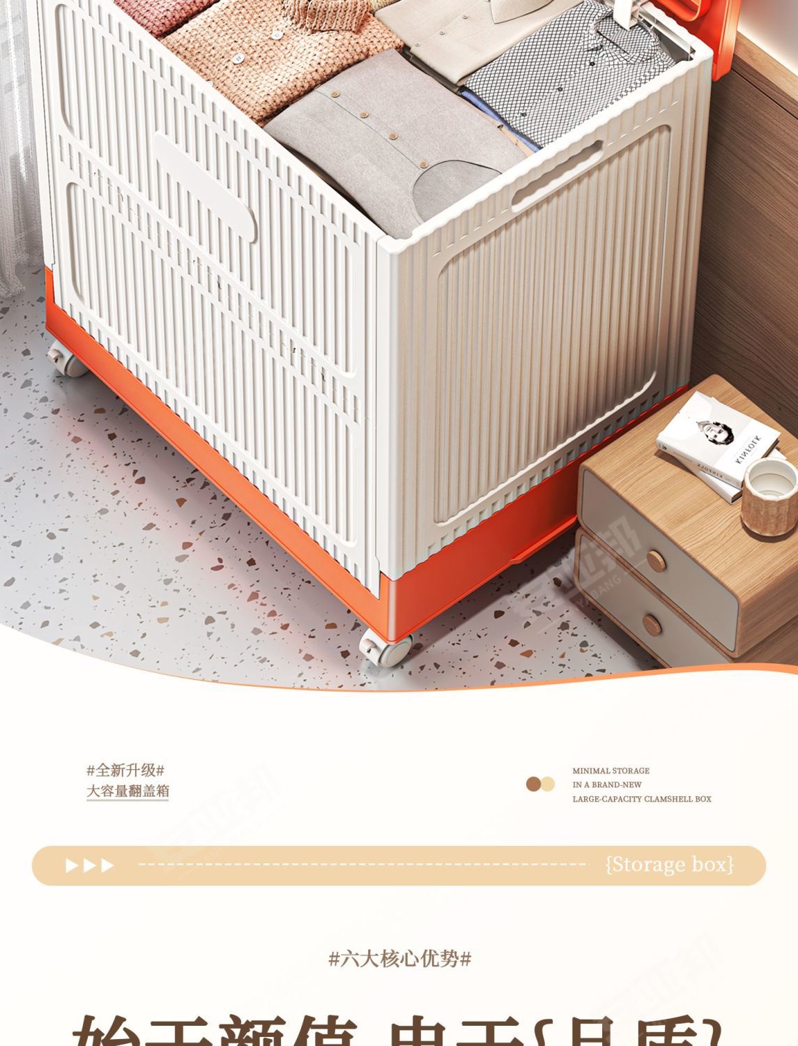 收纳柜衣服收纳柜大容量家用翻盖整理箱带轮可折叠箱子被子储物柜