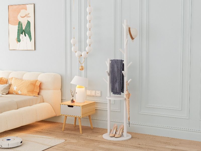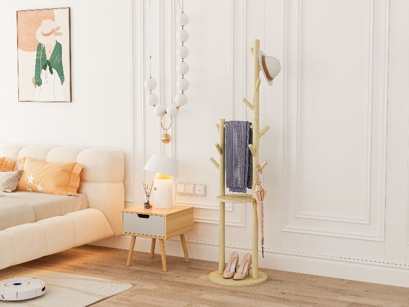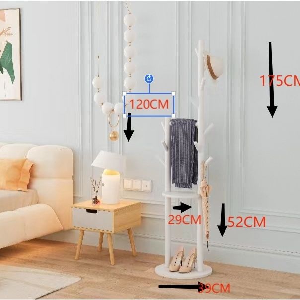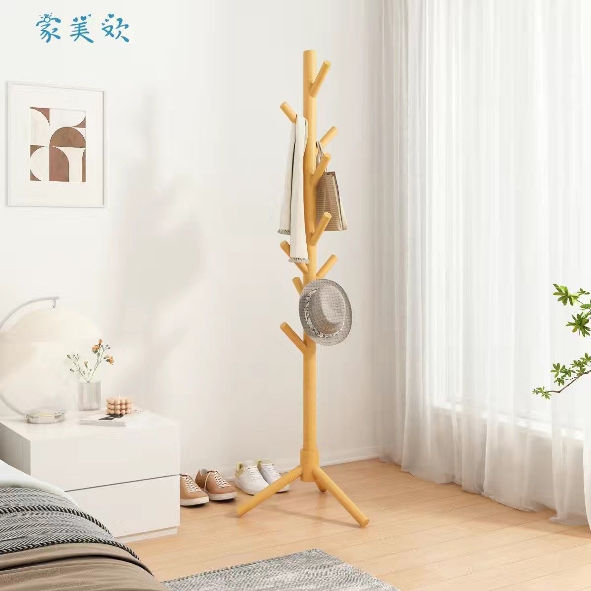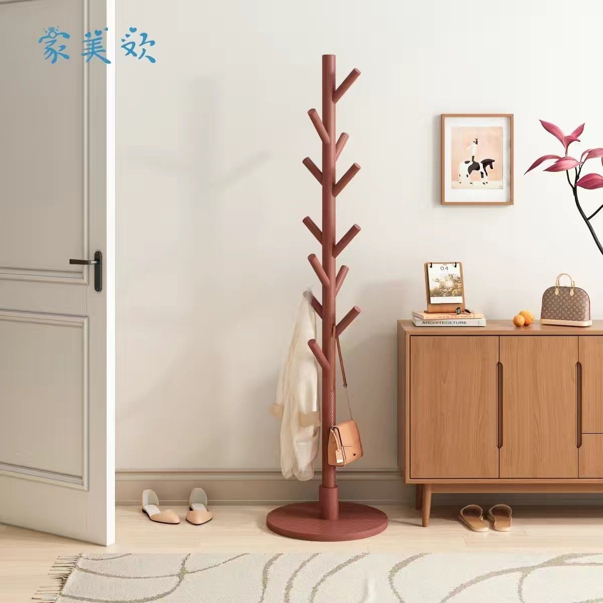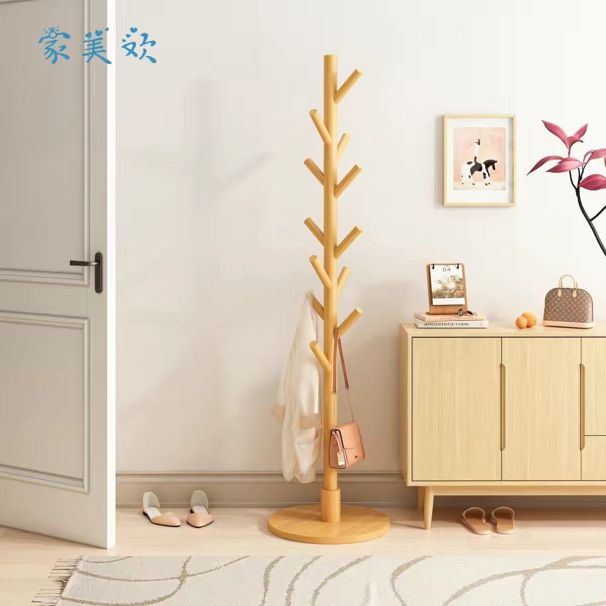 实木轻奢多用简易衣帽架圆盘晾衣架床头柜挂包架卧室衣架落地立式