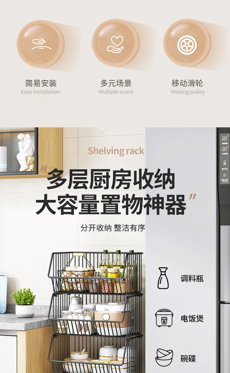 菜篮子厨房置物架落地多层蔬菜水果家用转角台面储物架层架收纳架
