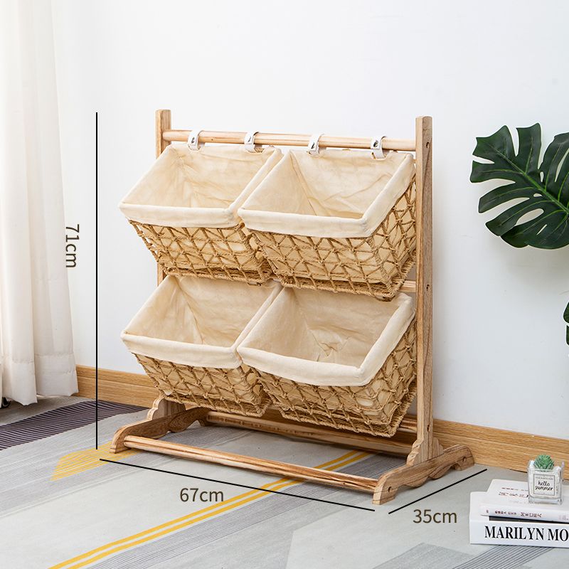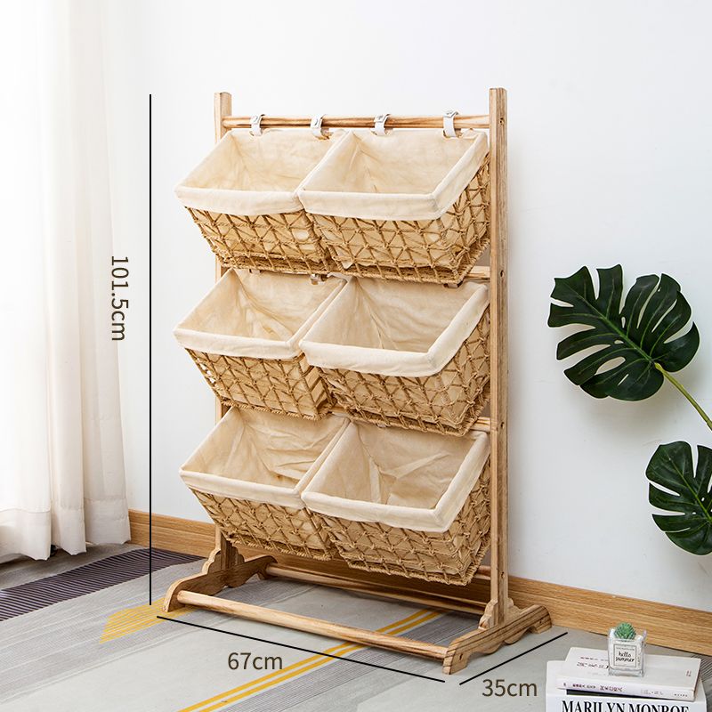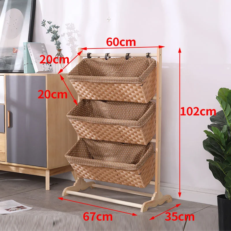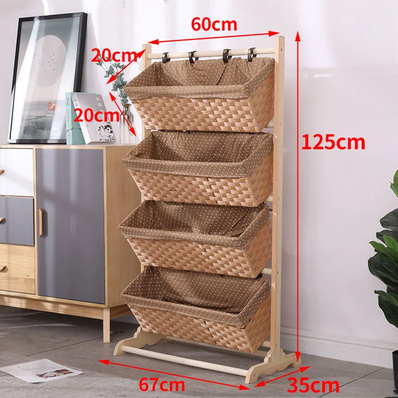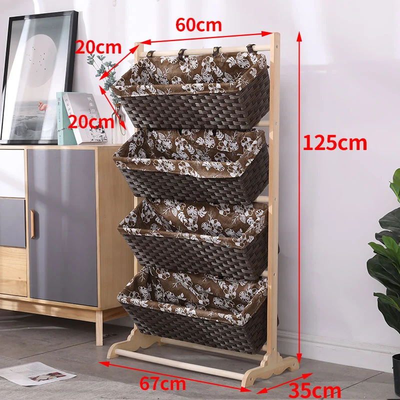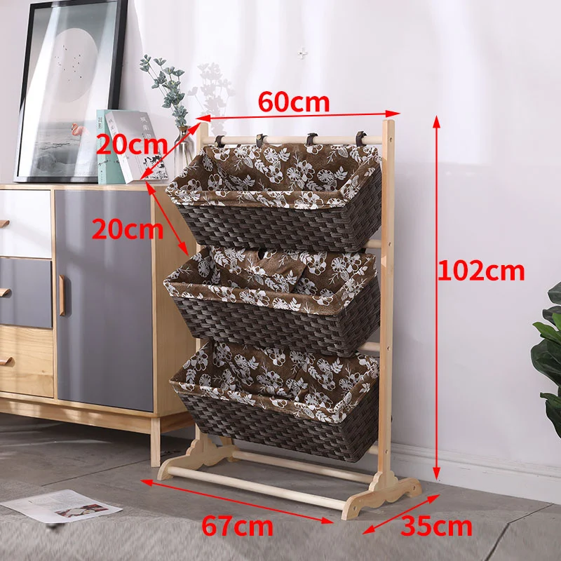 家用置物架落地储物架卧室客厅书报架田园布艺零食收纳架多层
