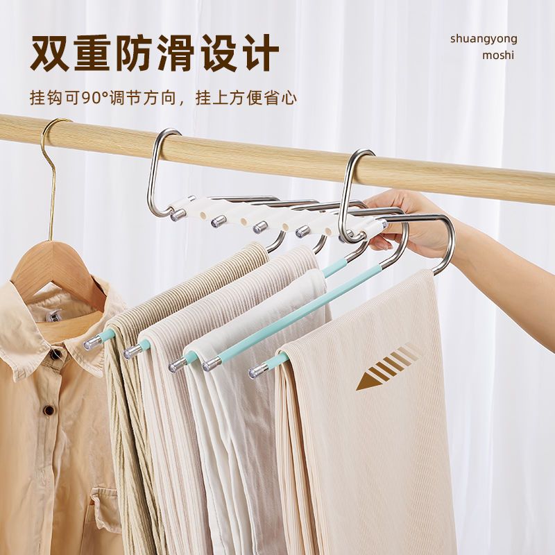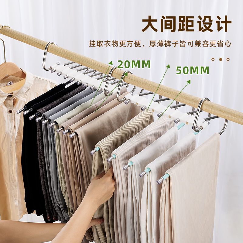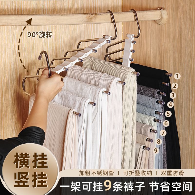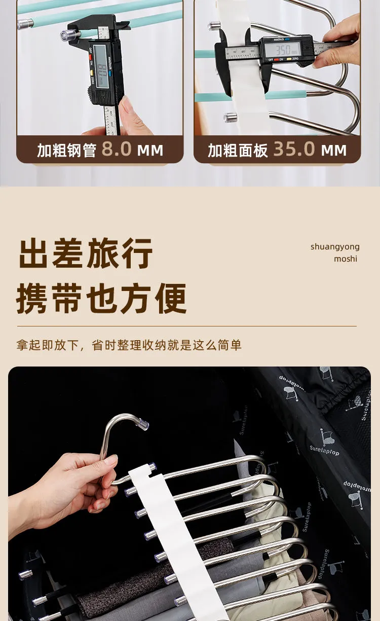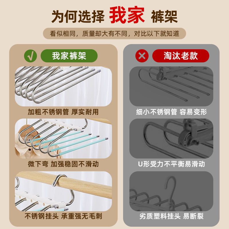 加粗加厚鹅型不锈钢裤架多功能折叠防滑防斜无痕多层柜内裤子收纳
