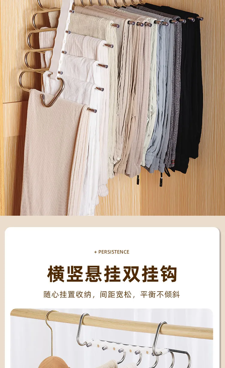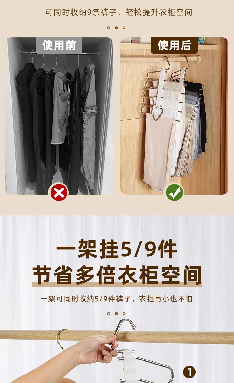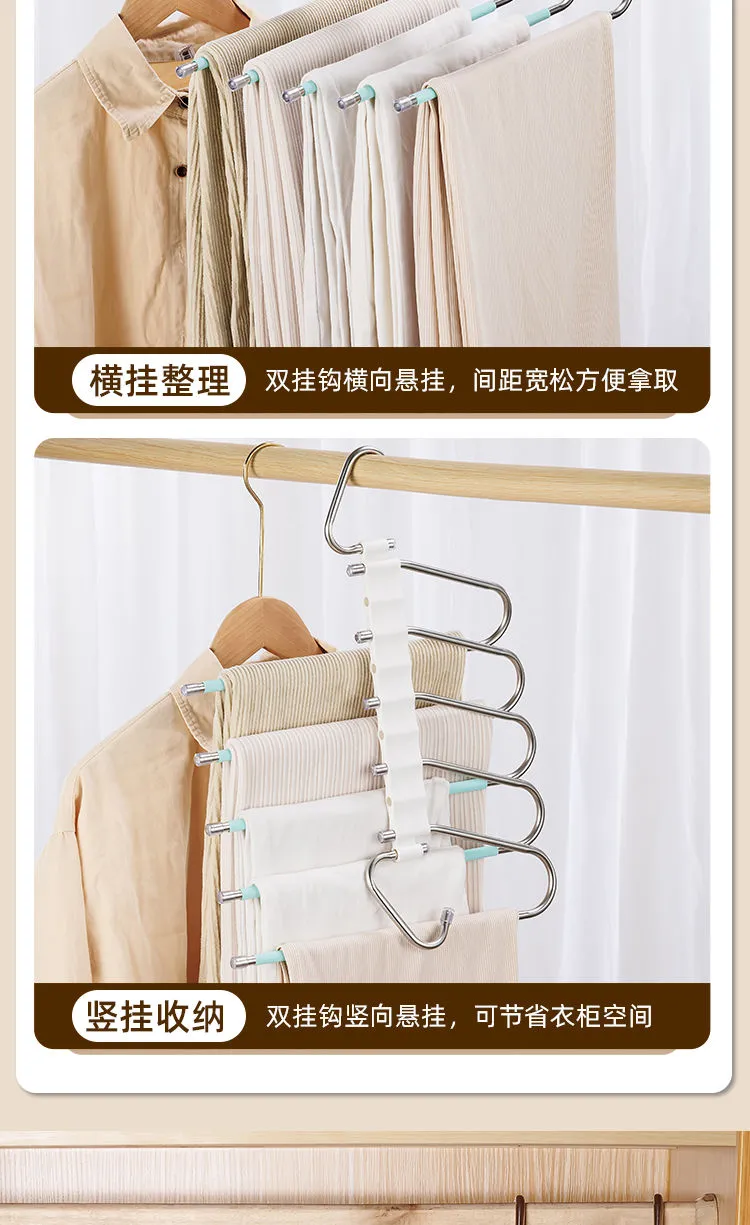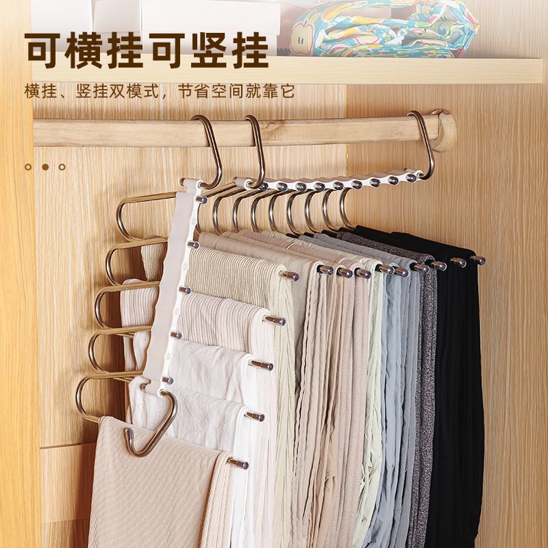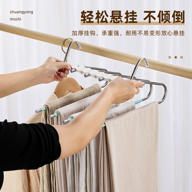 加粗加厚鹅型不锈钢裤架多功能折叠防滑防斜无痕多层柜内裤子收纳