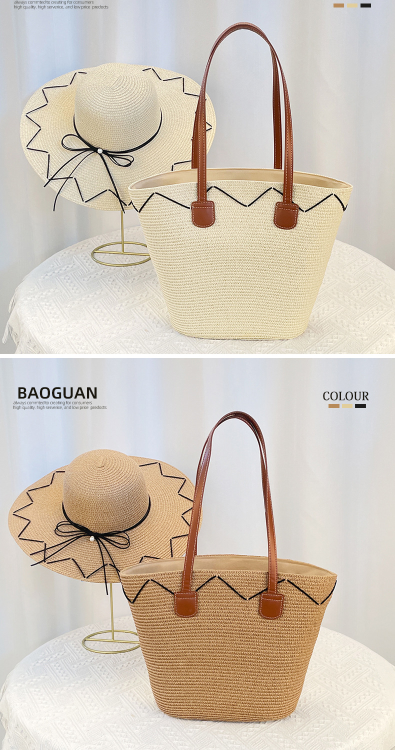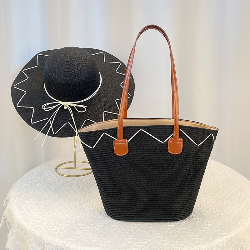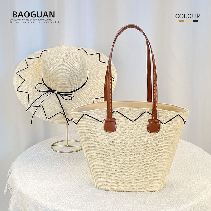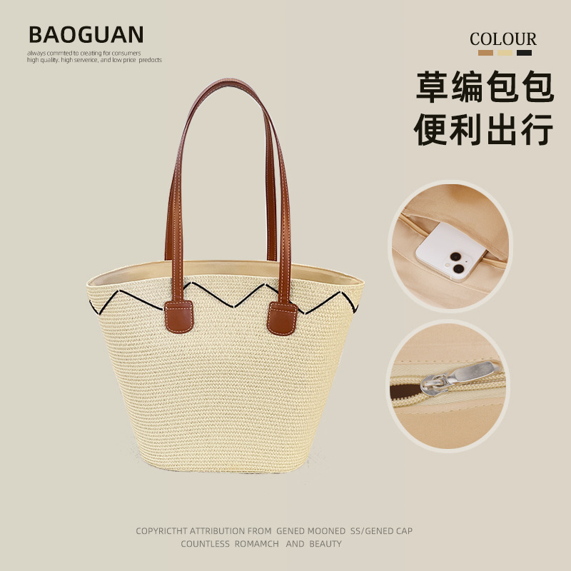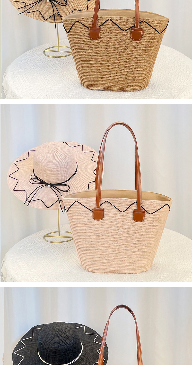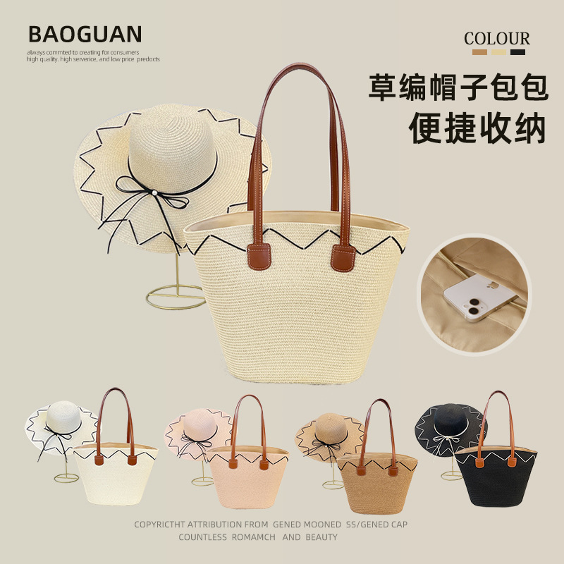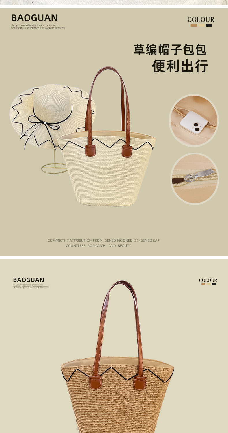 简约百搭单肩草编包新款大容量编织帽沙滩海边单肩通勤时尚托特包
