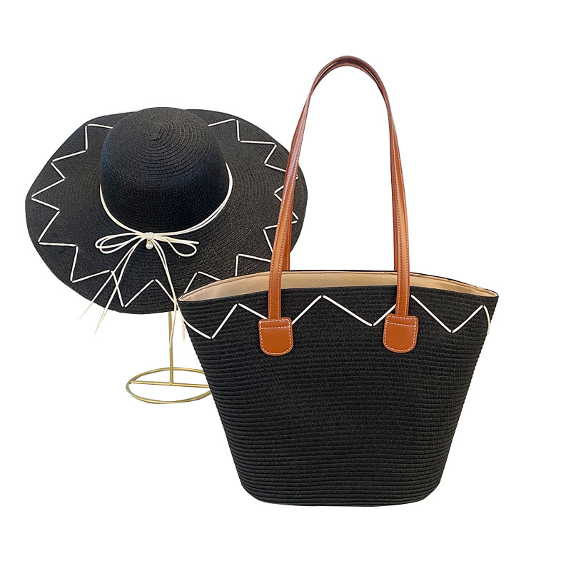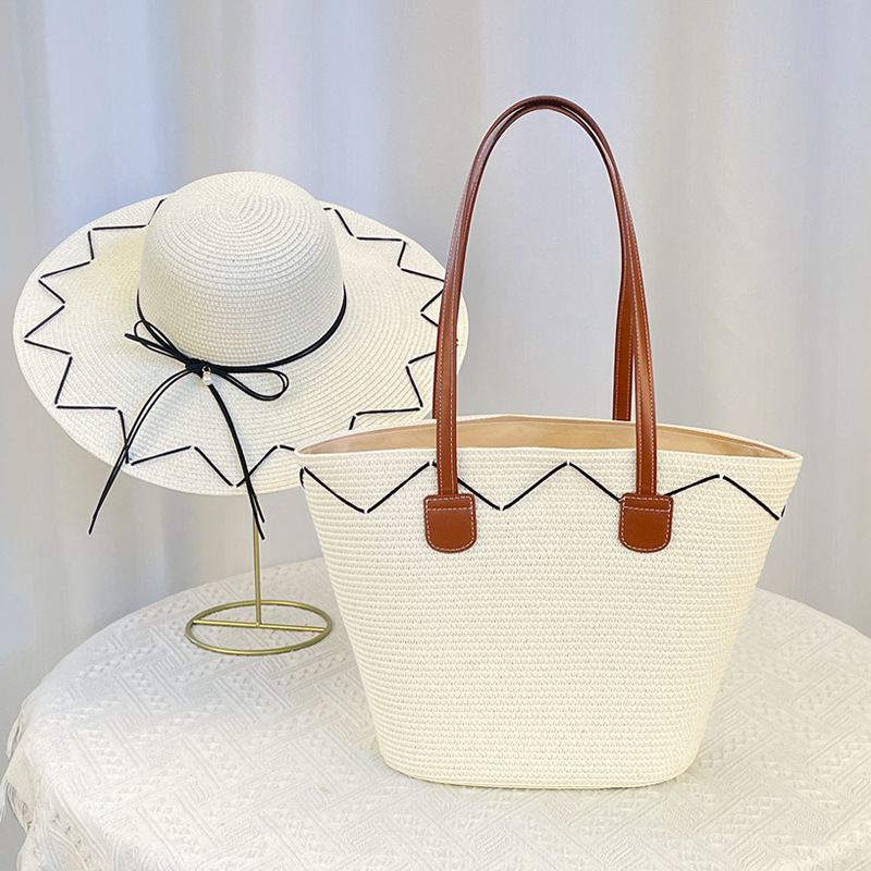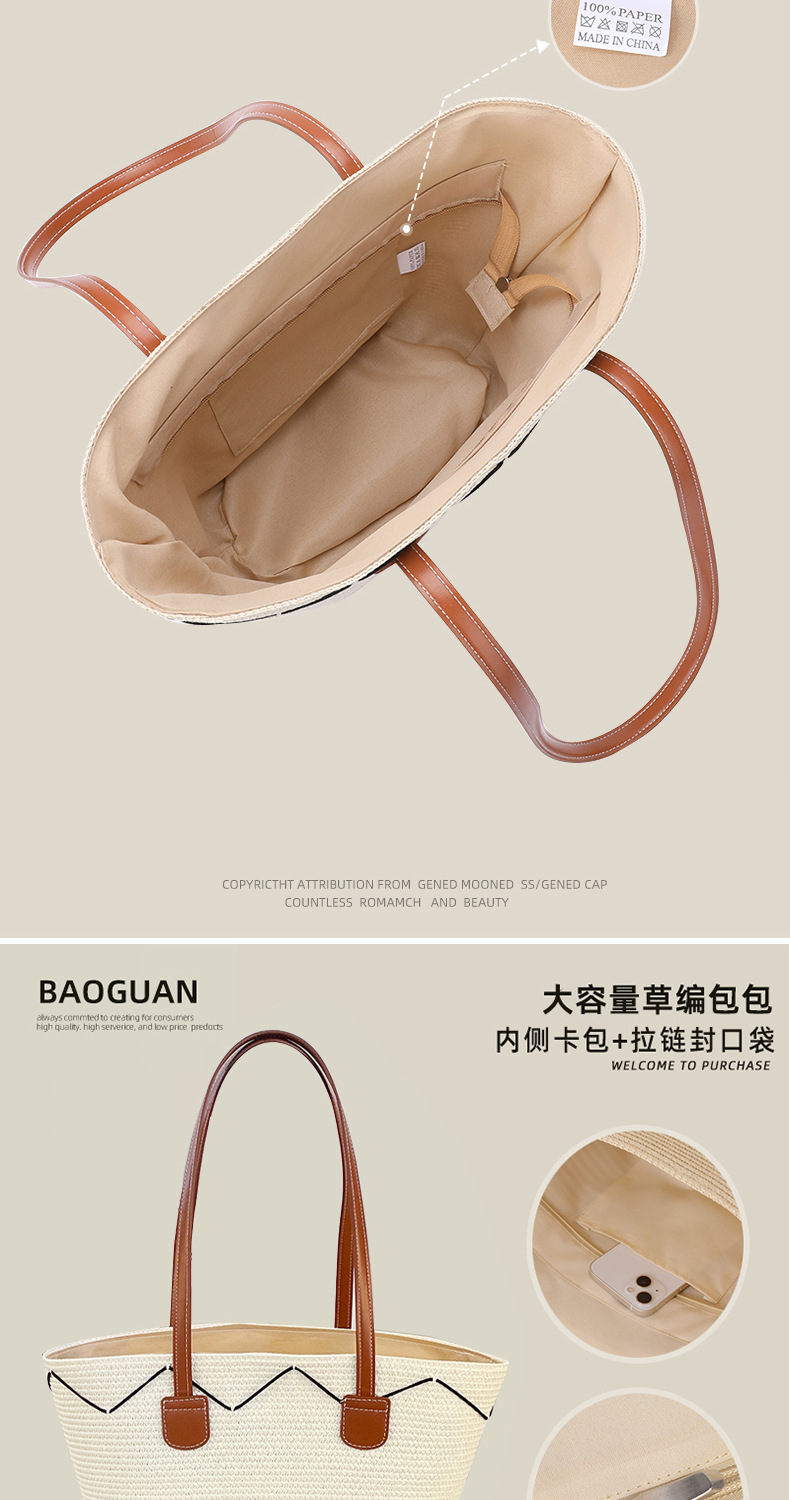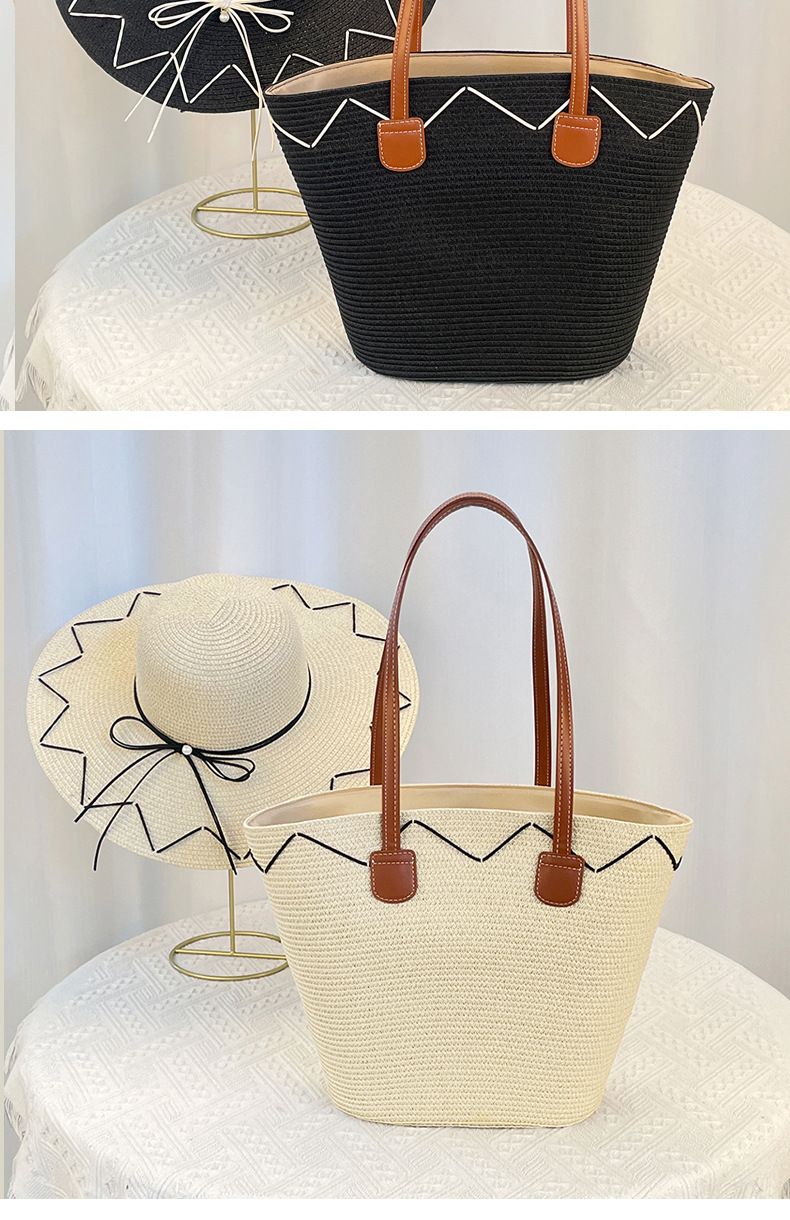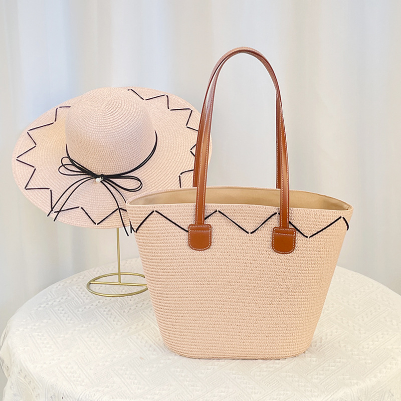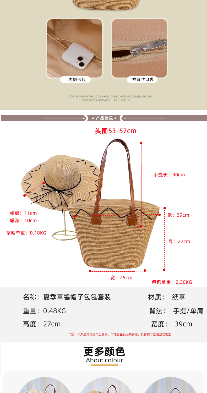 简约百搭单肩草编包新款大容量编织帽沙滩海边单肩通勤时尚托特包