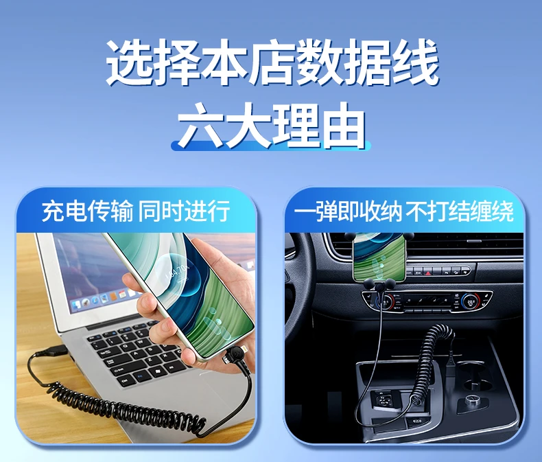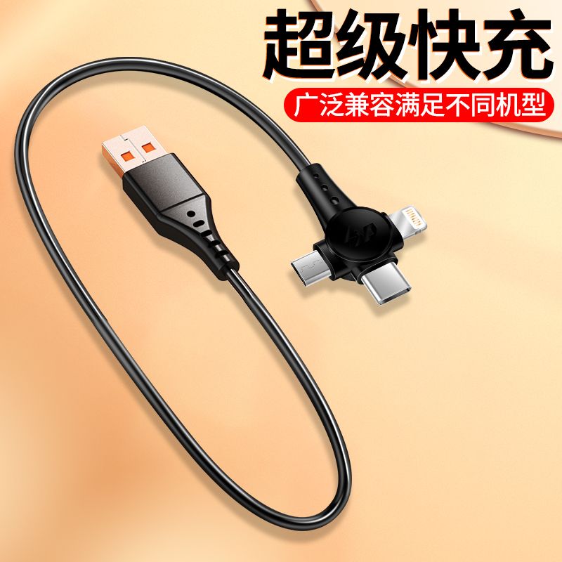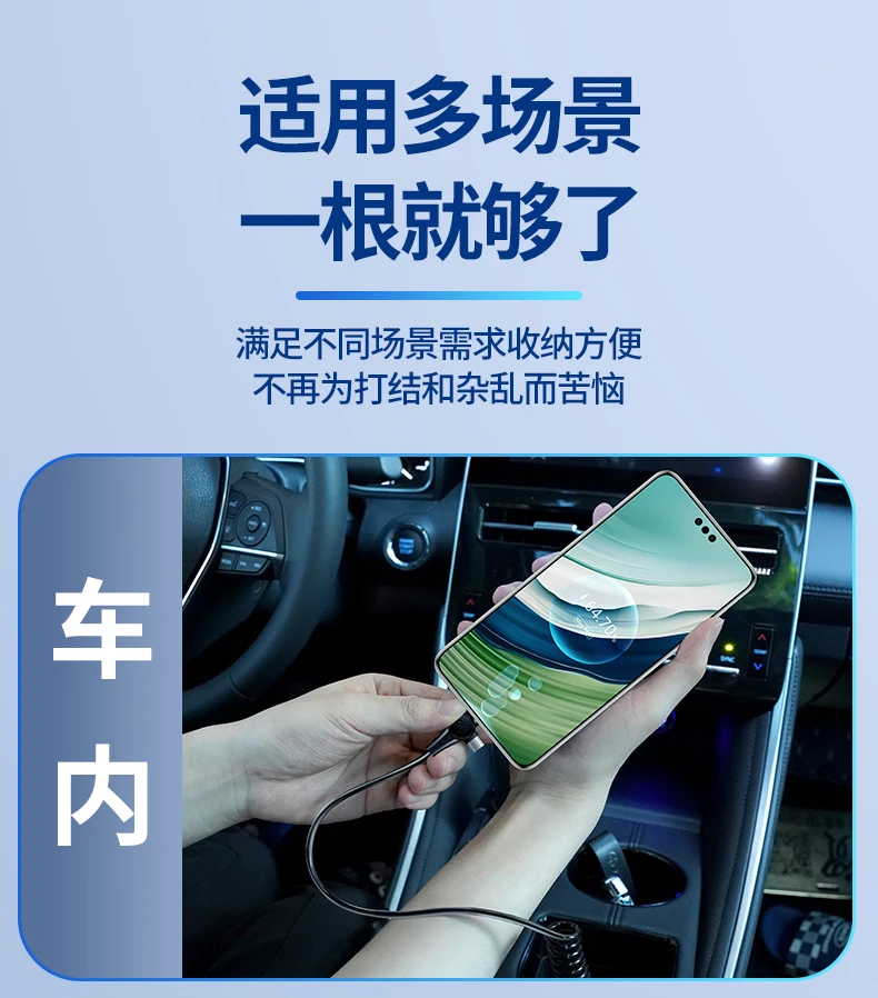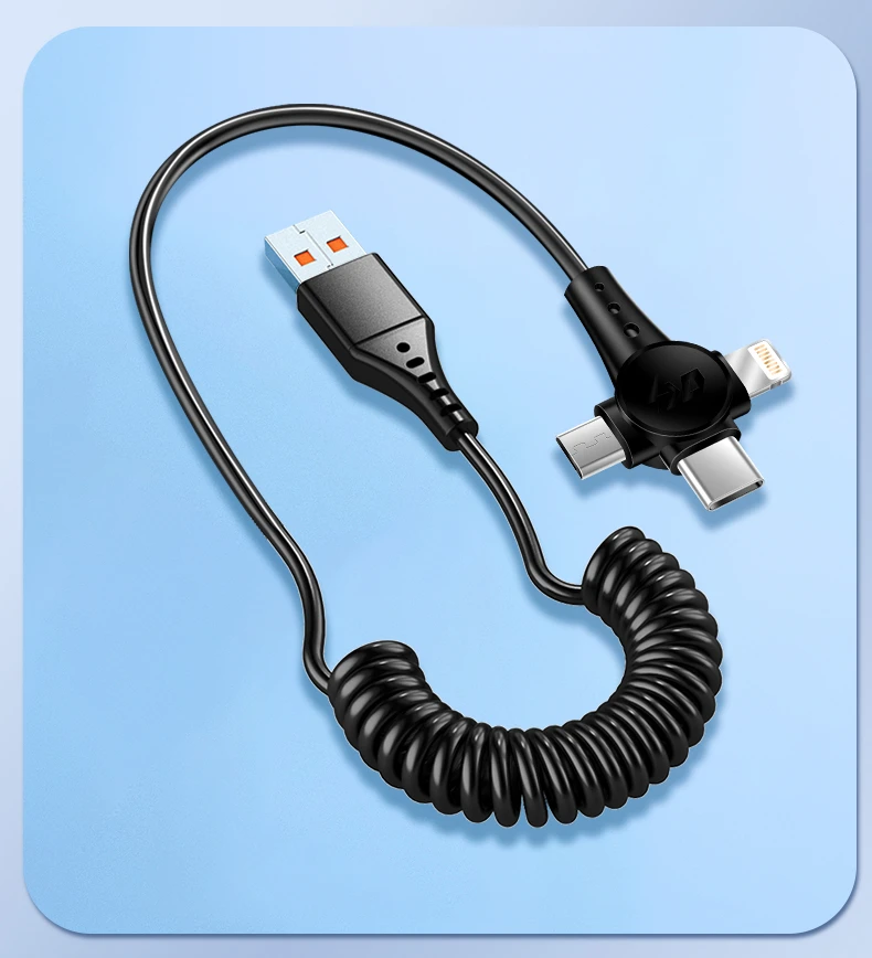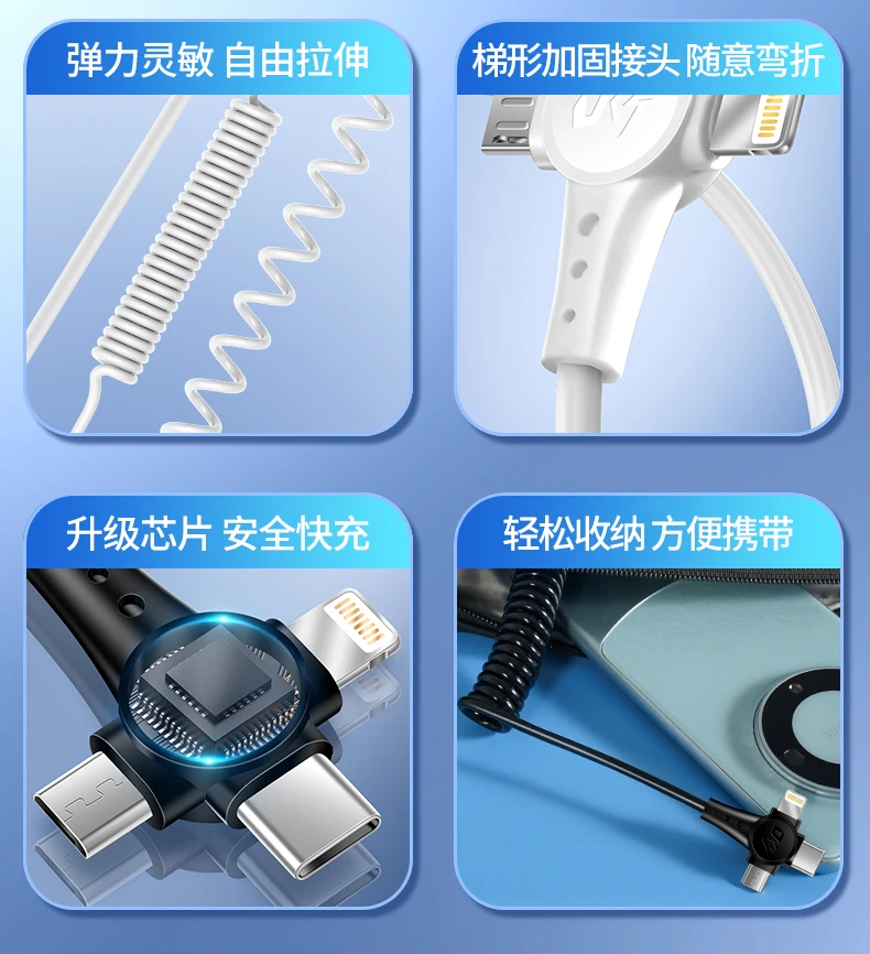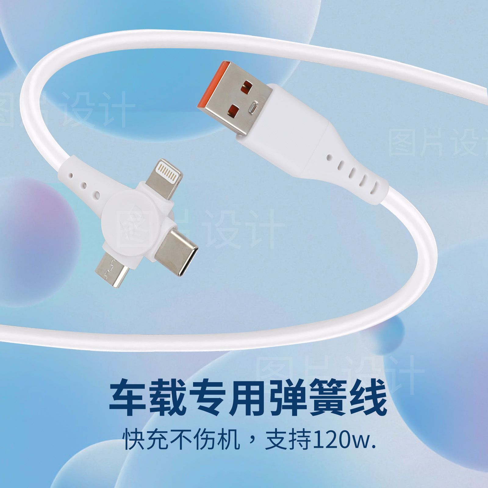 弹簧三合一超级快充数据线适用华为小米vivo苹果充电车载