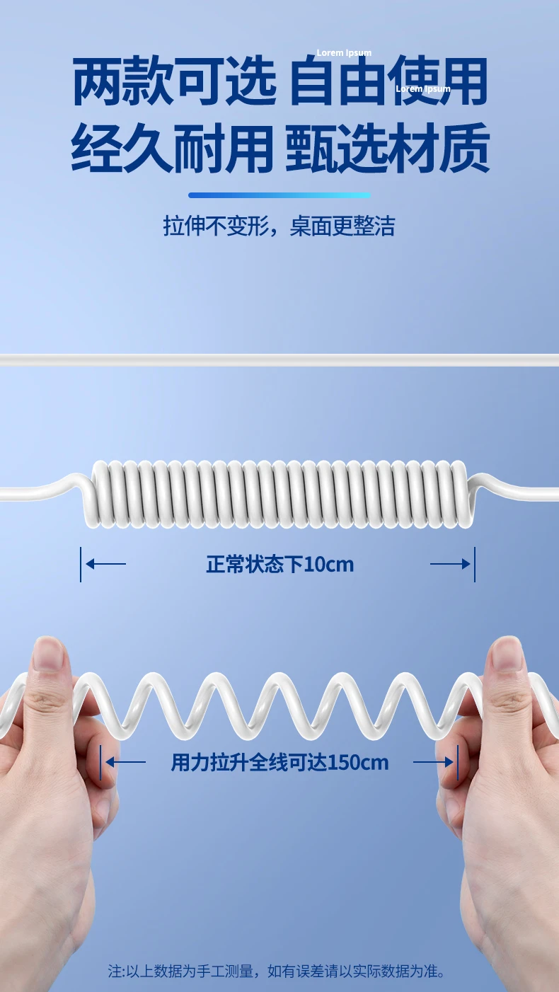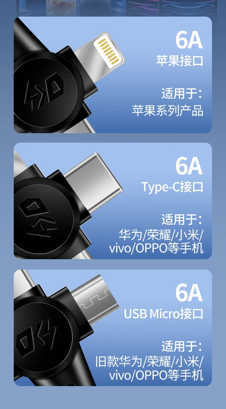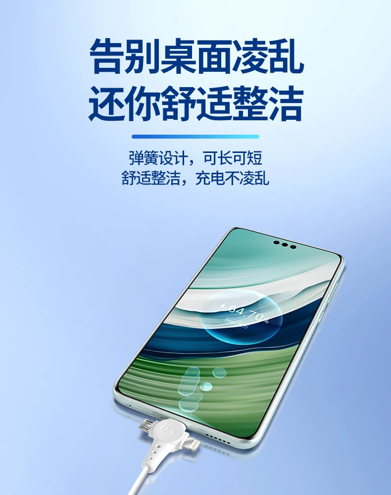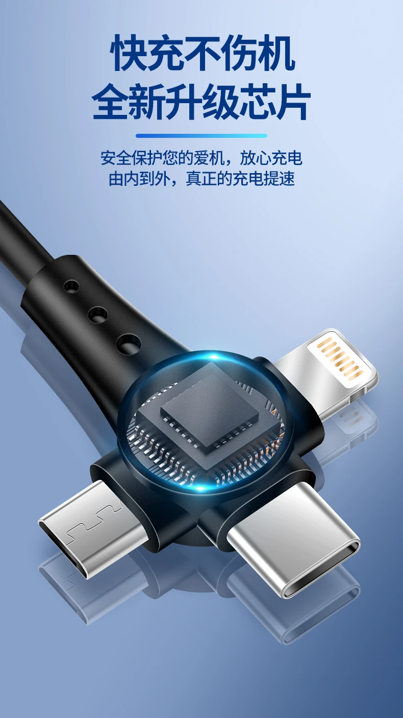 弹簧三合一超级快充数据线适用华为小米vivo苹果充电车载