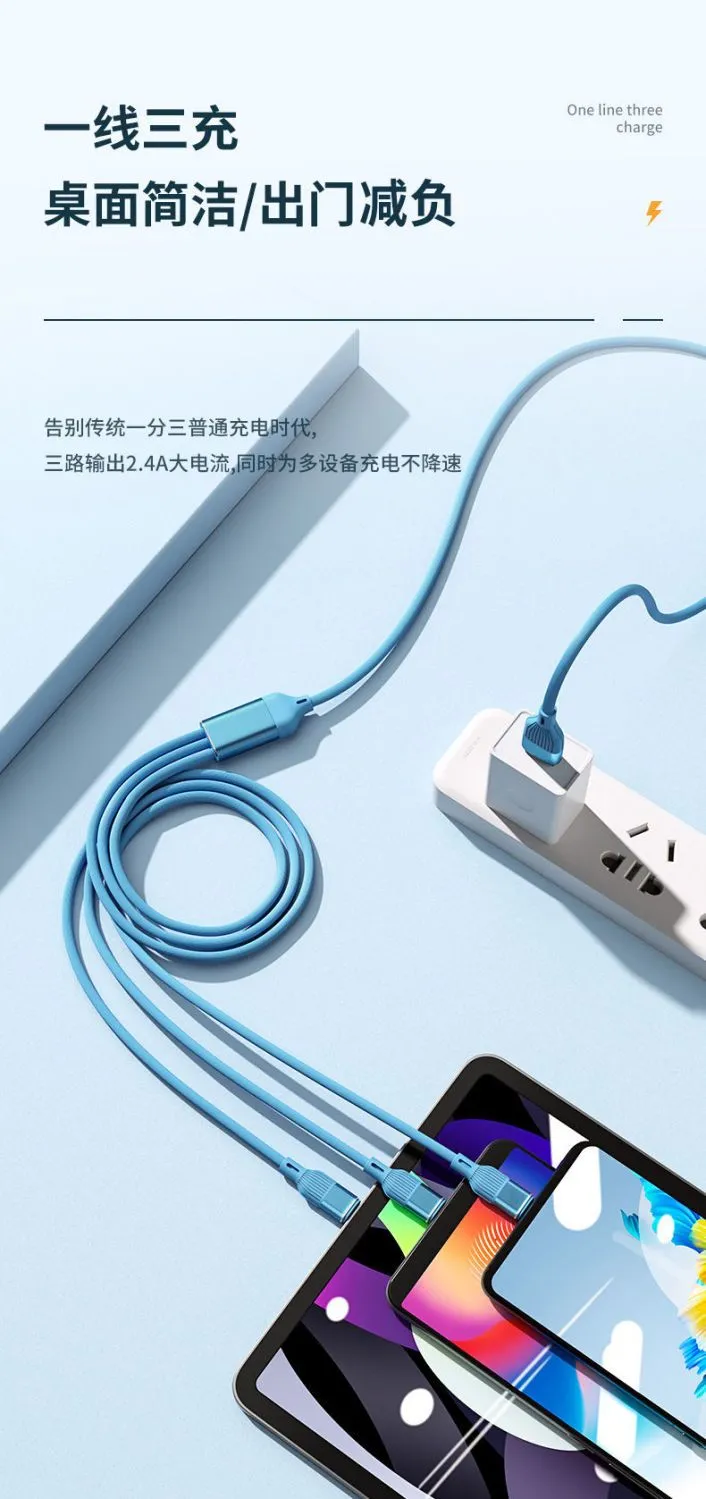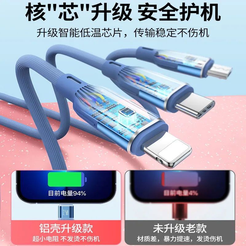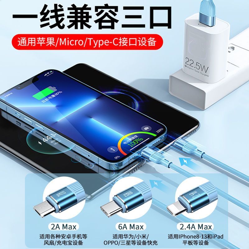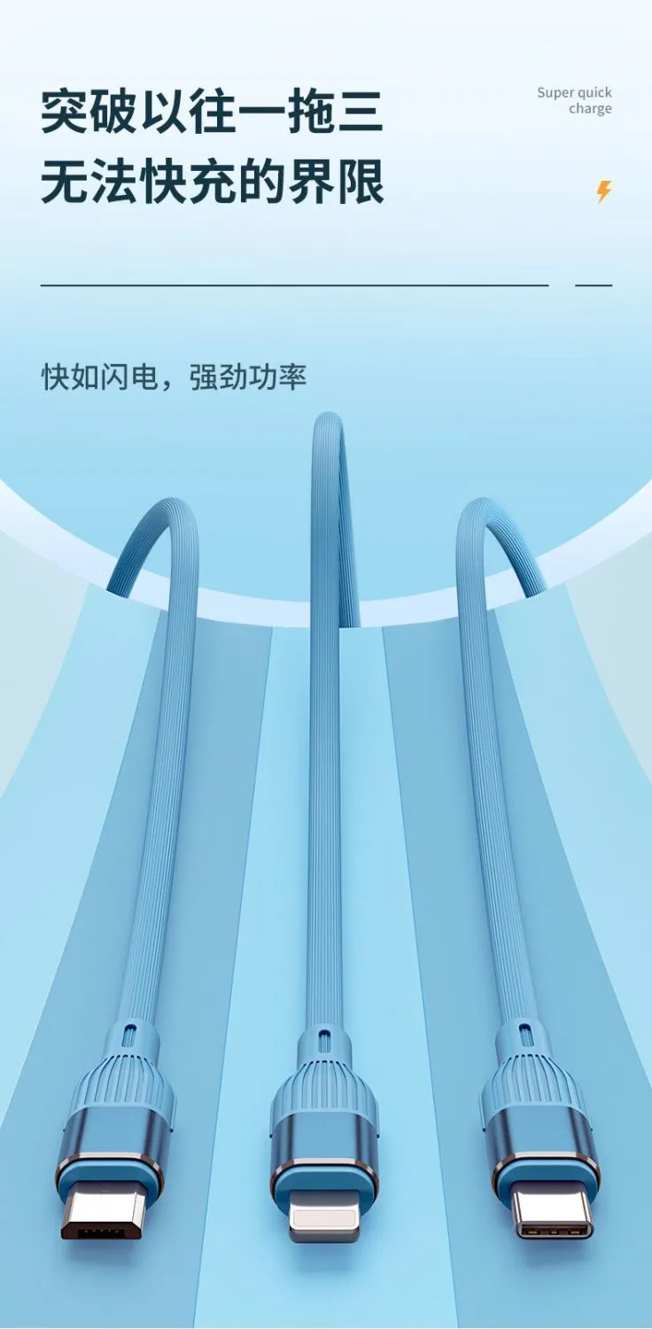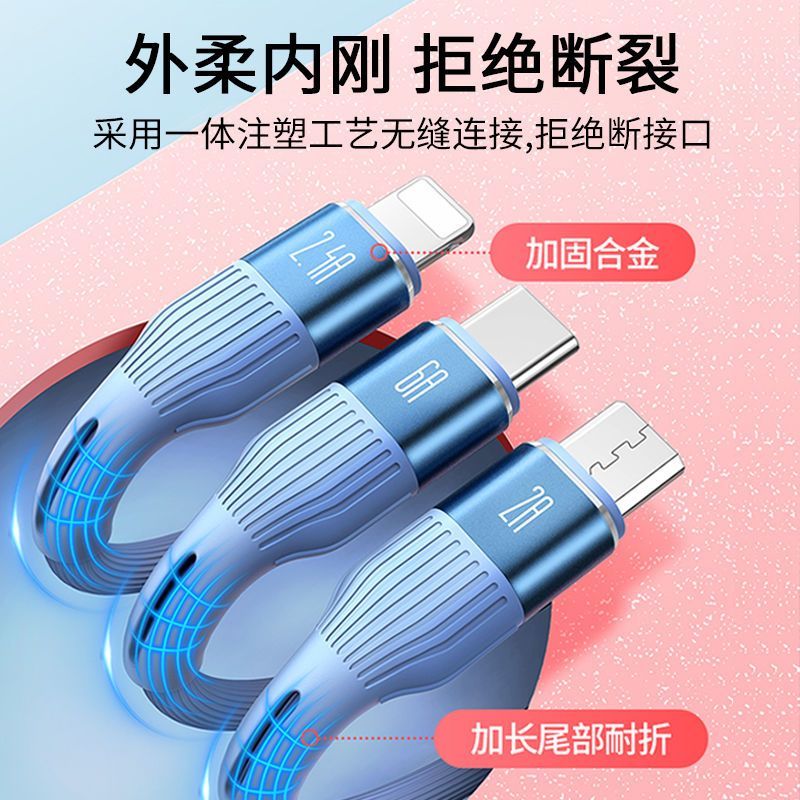 顺旺顺200W加粗数据线三合一快充手机充电线适用苹果小米华为荣耀