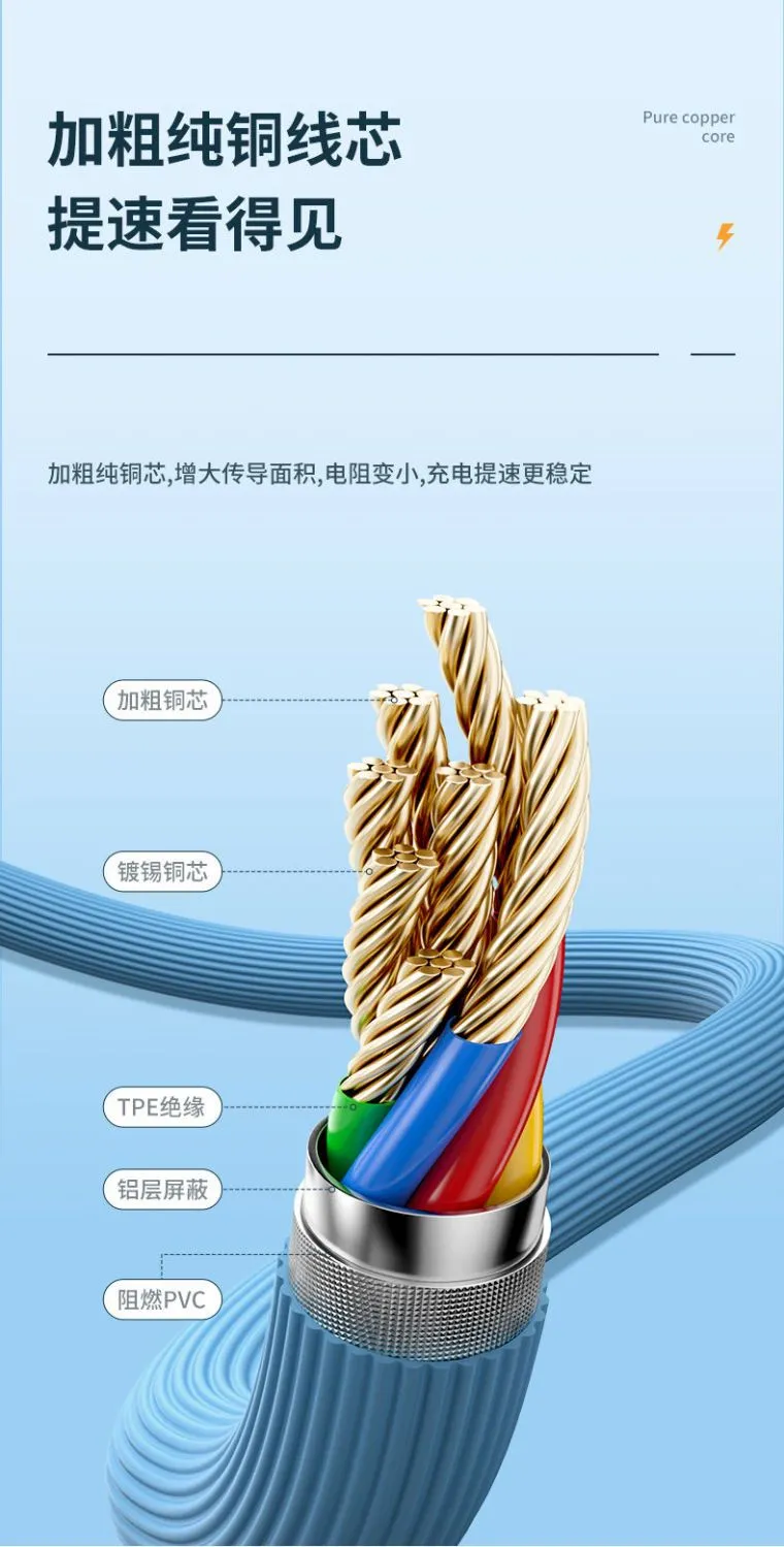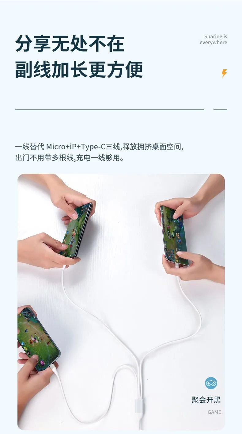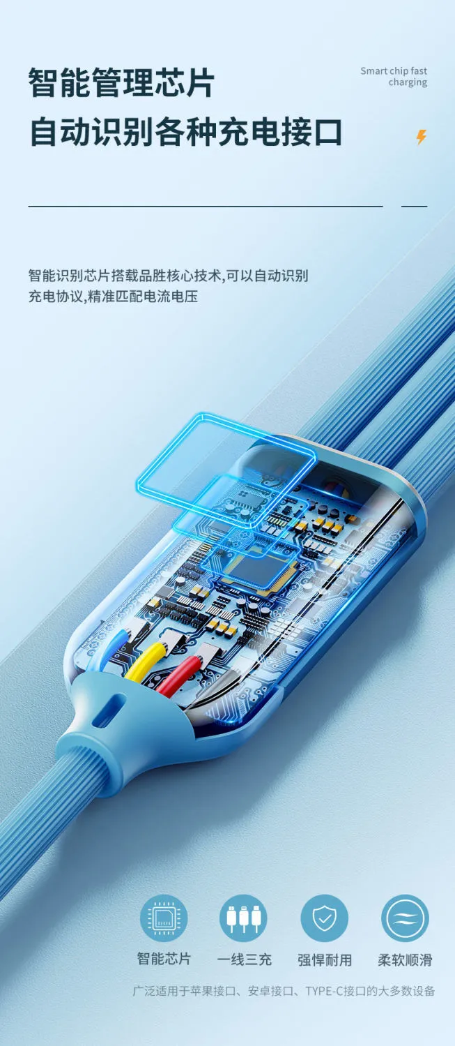顺旺顺200W加粗数据线三合一快充手机充电线适用苹果小米华为荣耀