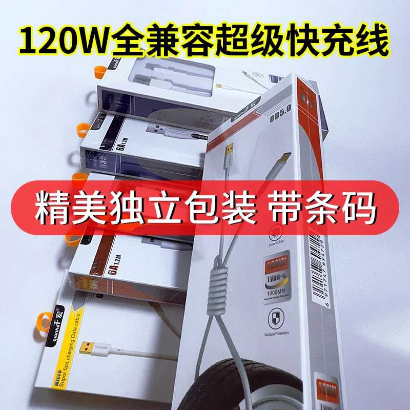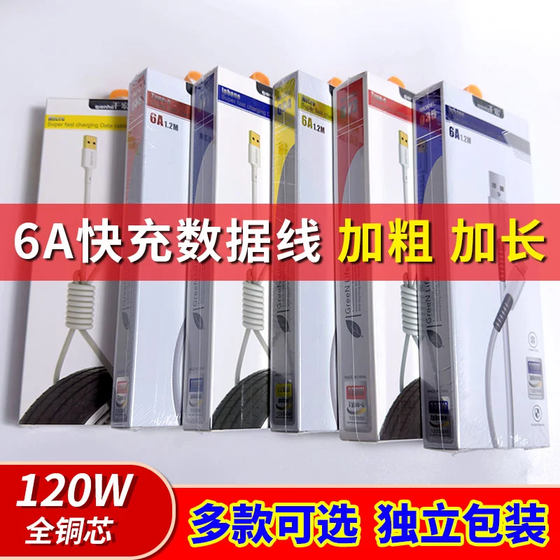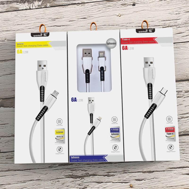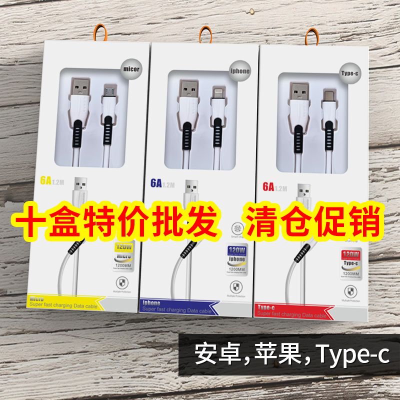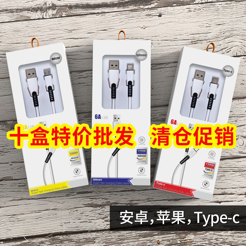 批发千宏数据线盒装超级快充闪充线适用华为小米安卓苹果铜芯线6A