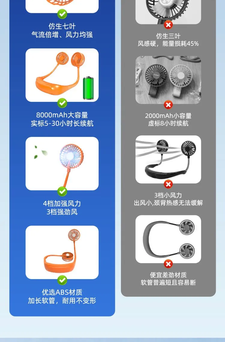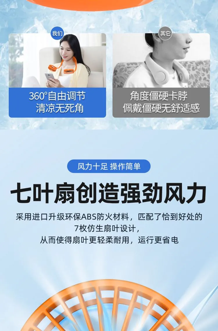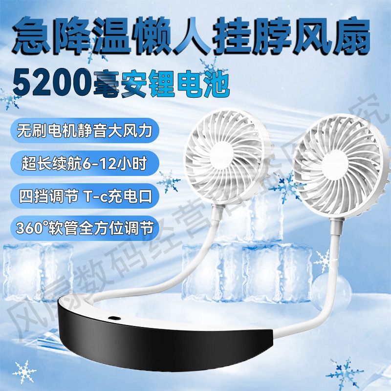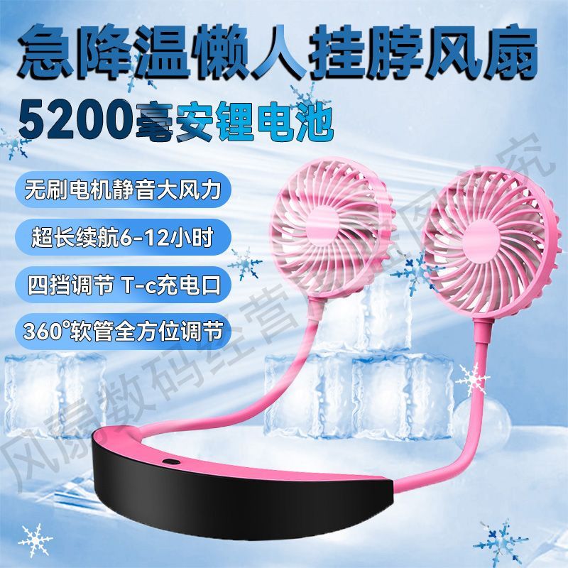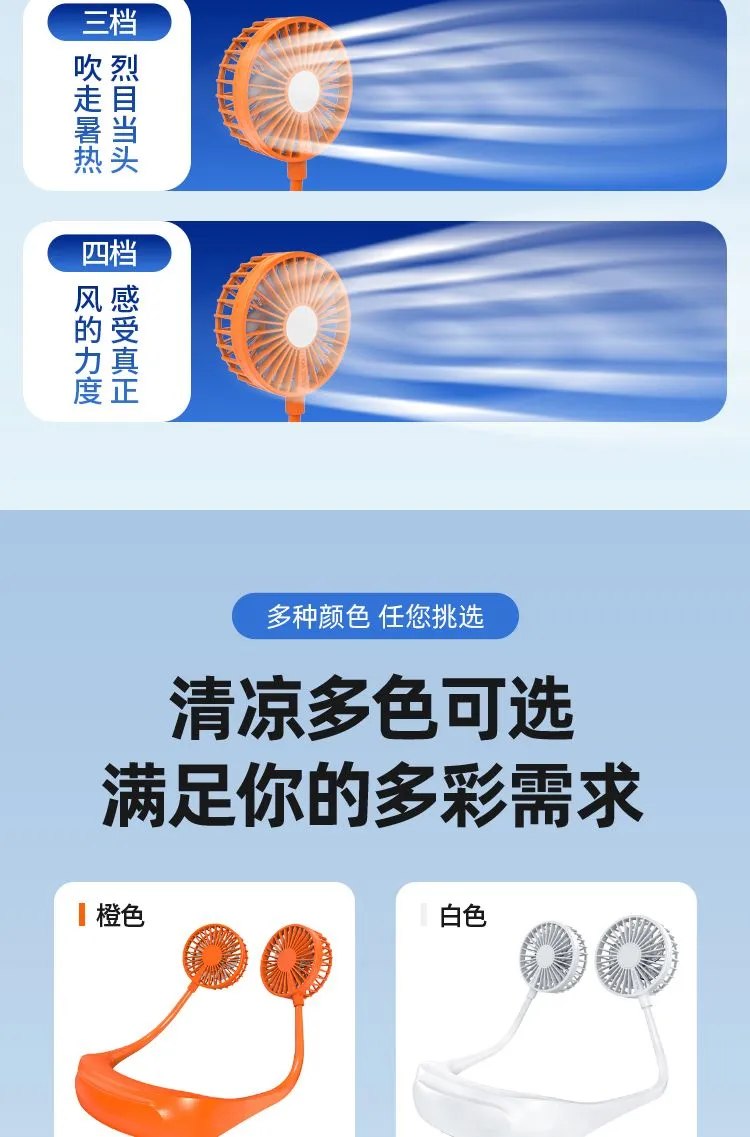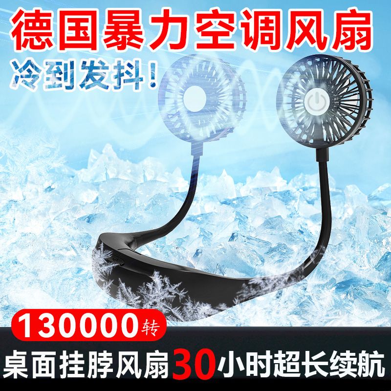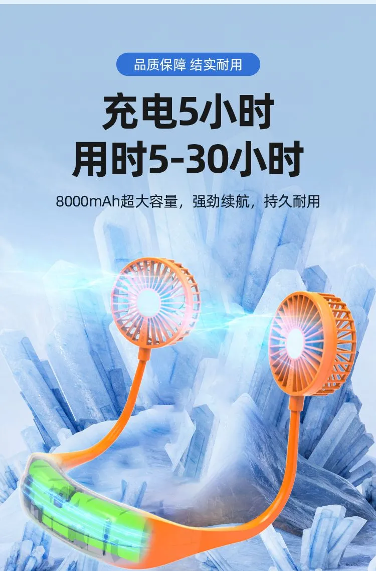 新款挂脖小风扇户外大风力工地静音续航24小时大容量学生宿舍风扇
