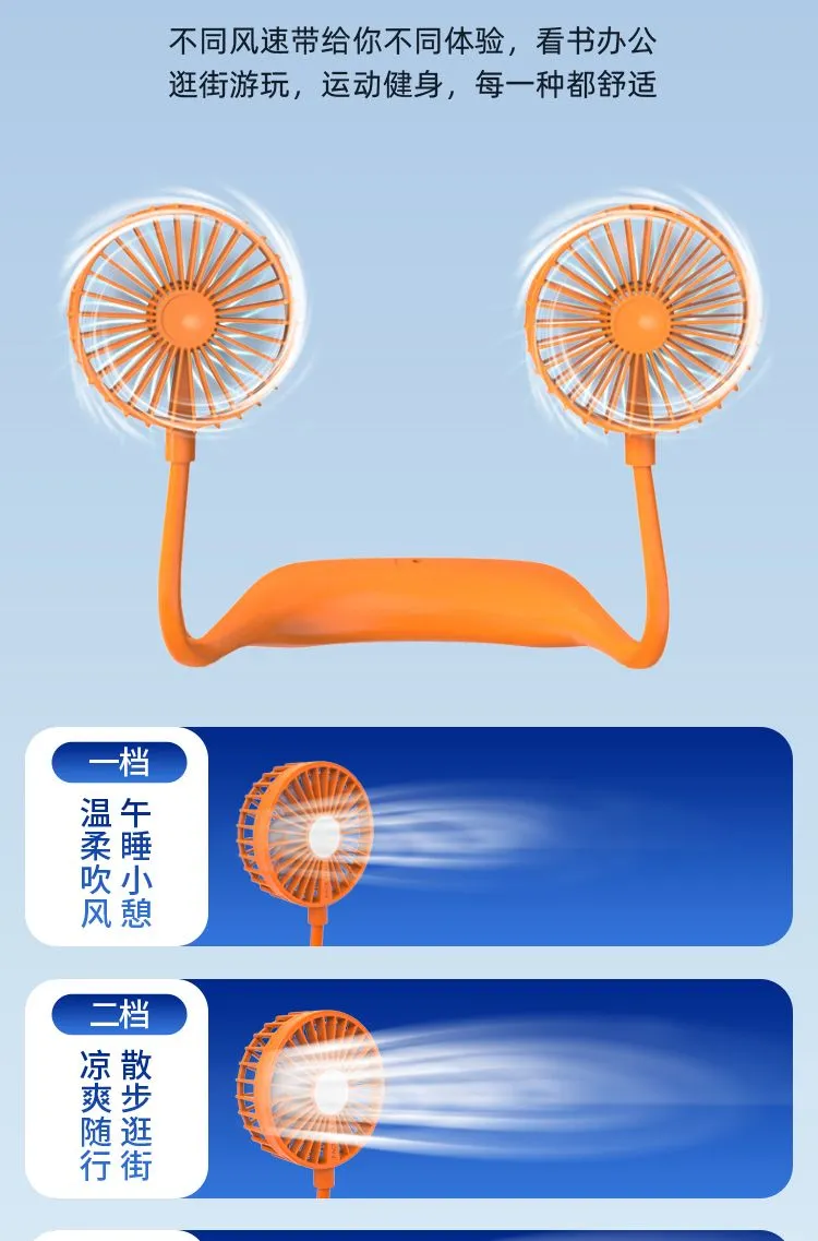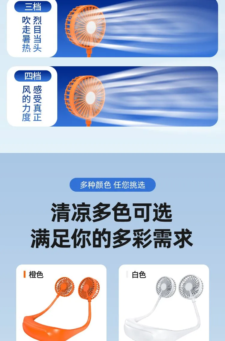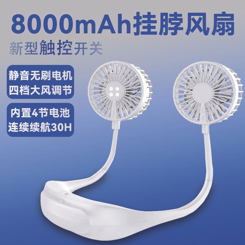 13000M新款挂脖风扇懒人随身便携USB充电厨房夏天户外静音电风扇