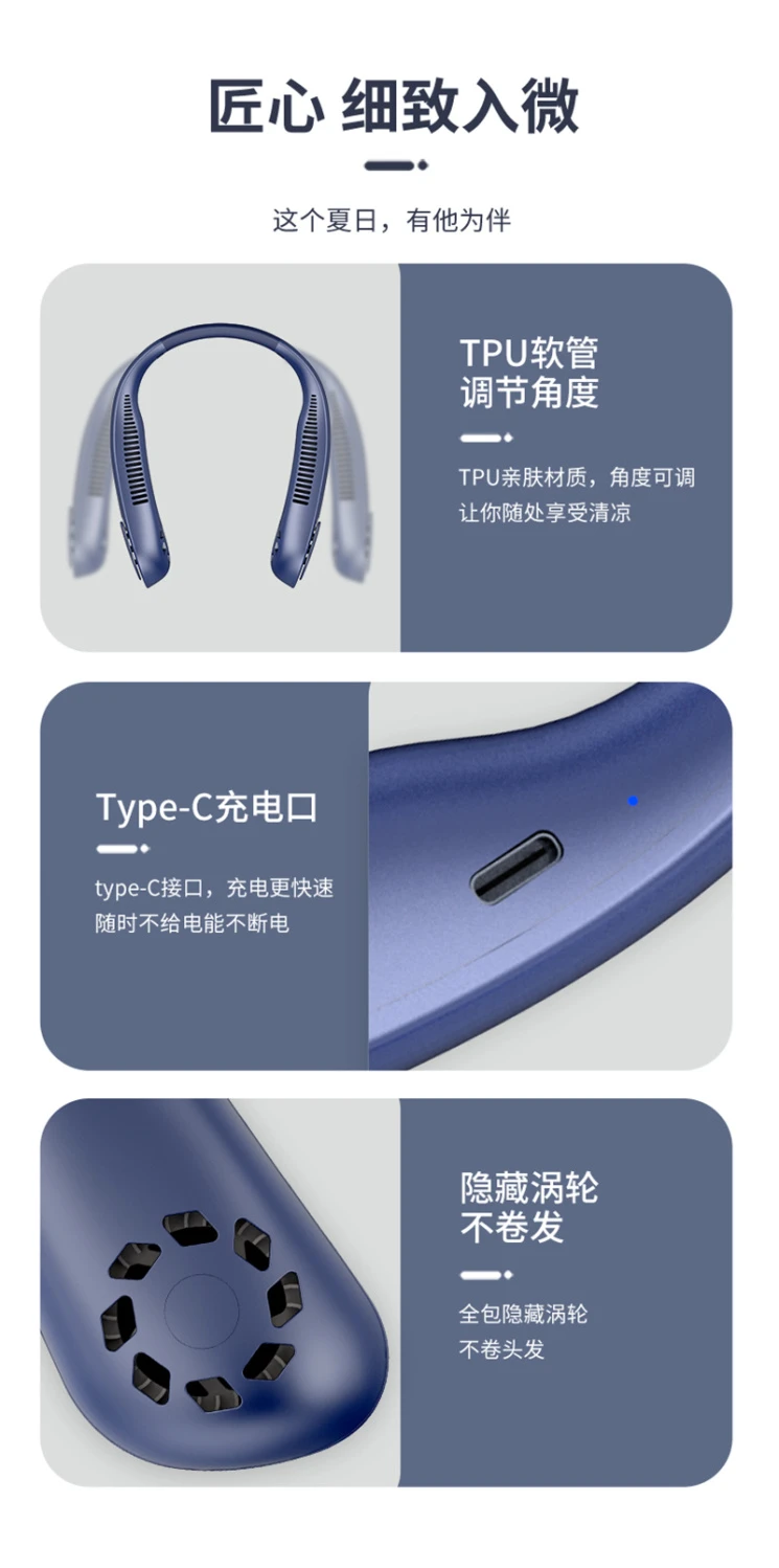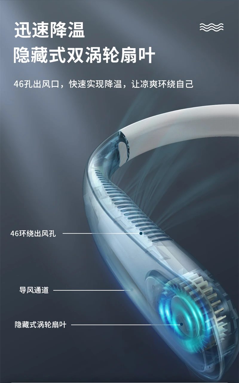 20000毫安挂脖风扇充电挂耳颈无叶制冷空调户外厨房夏天降温神器