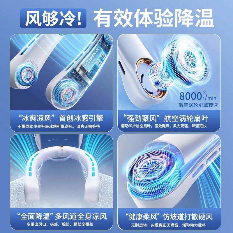 2025新款挂脖式小风扇可充电学生上课懒人随身携带挂颈上降温神器