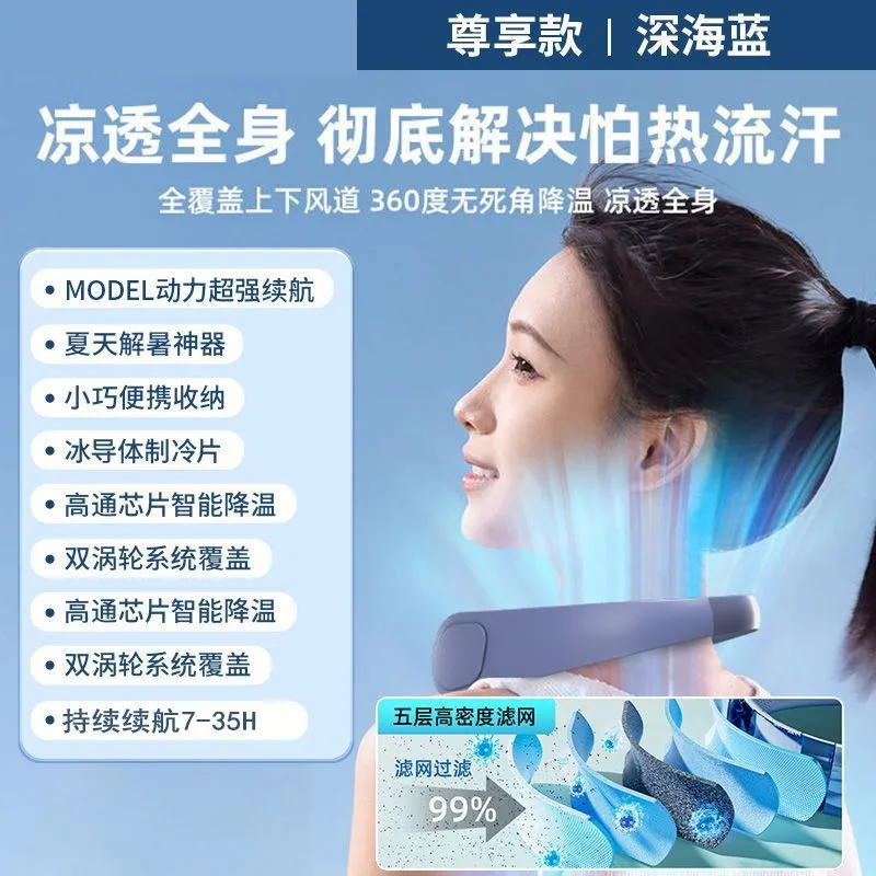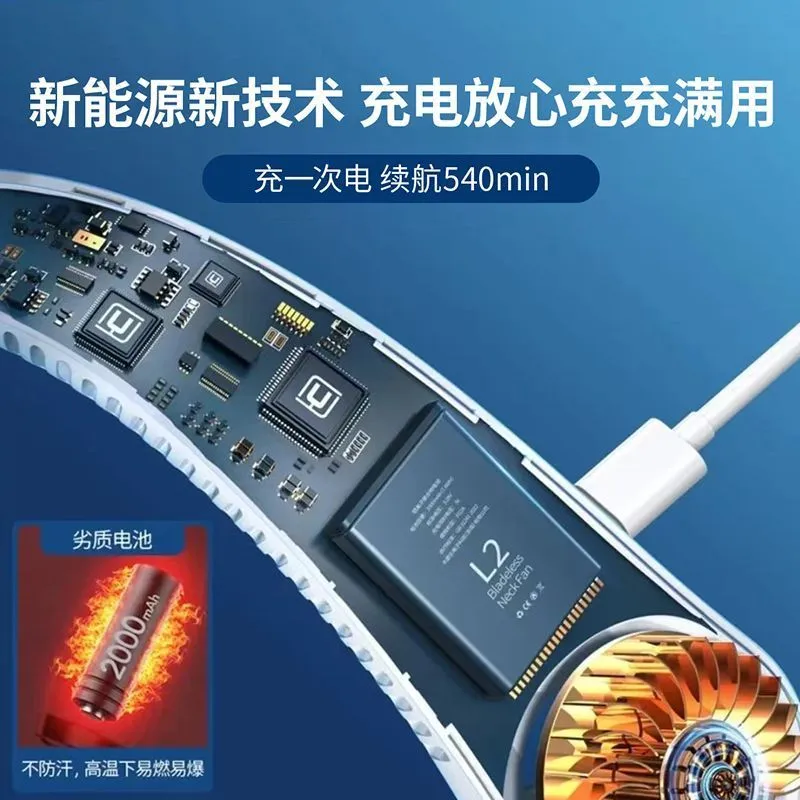 22000毫安新款挂脖风扇制冷小型空调宿舍户外工地大风力充电静音