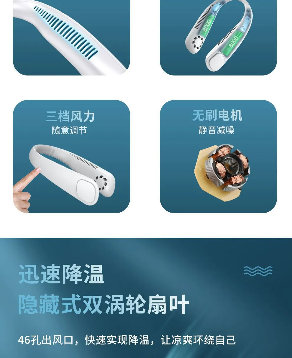 无叶挂脖风扇18000毫安续航24小时学生宿舍静音大风力强风小风扇