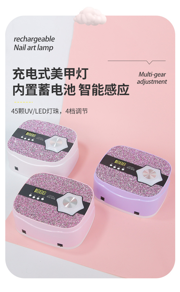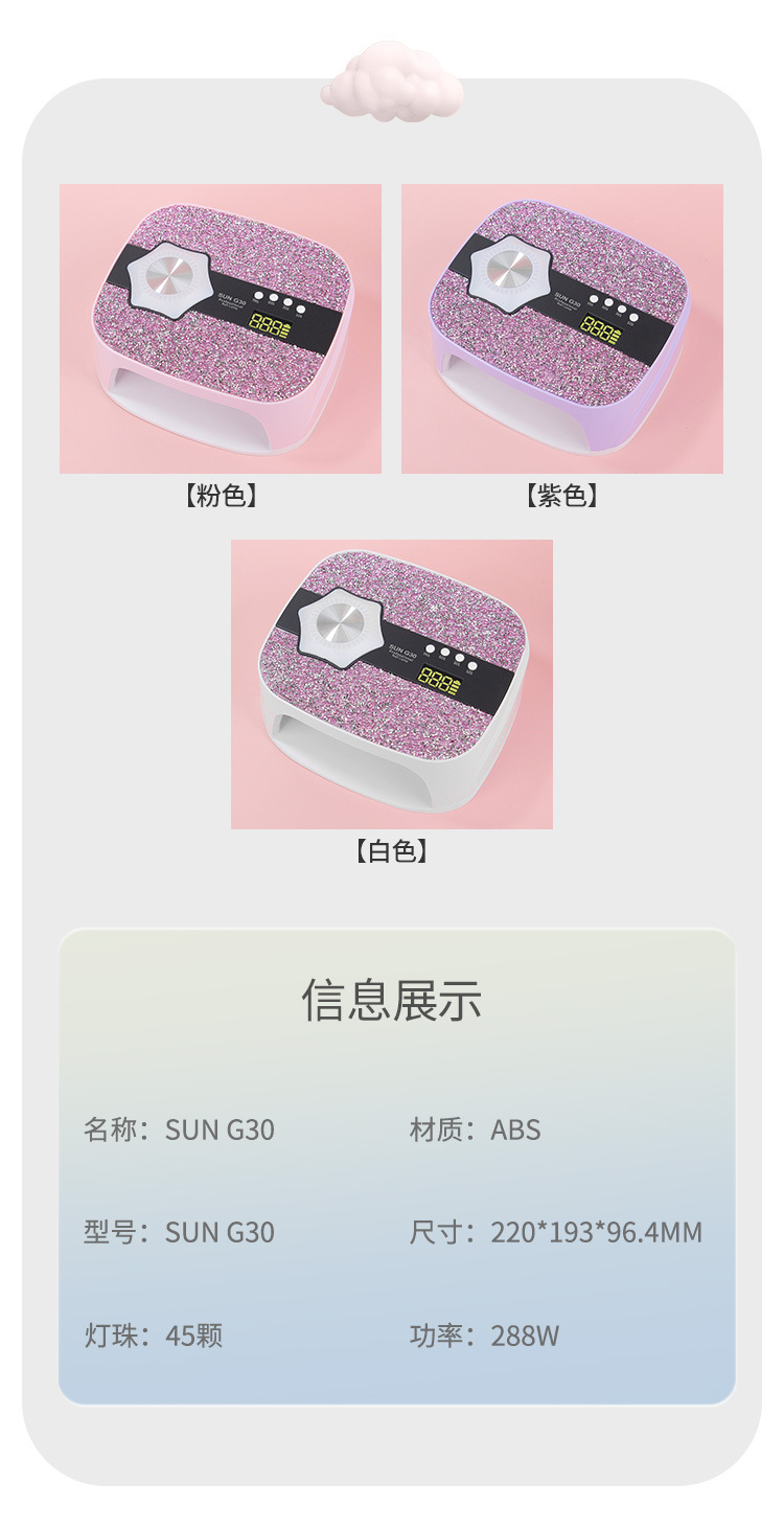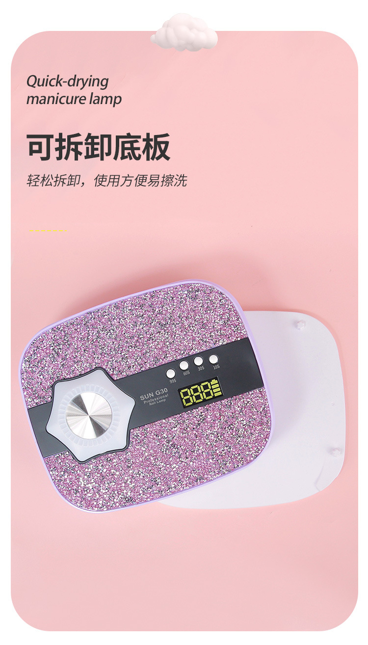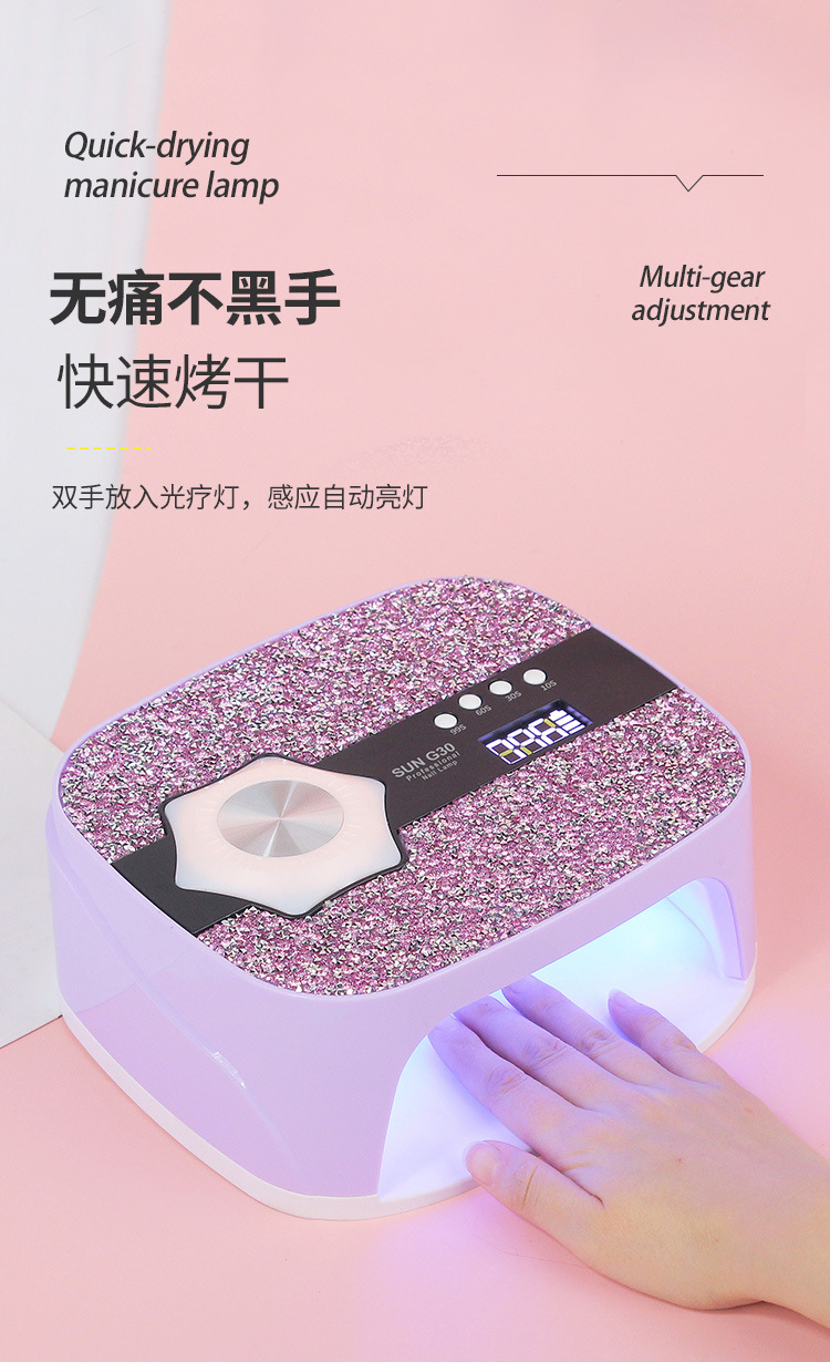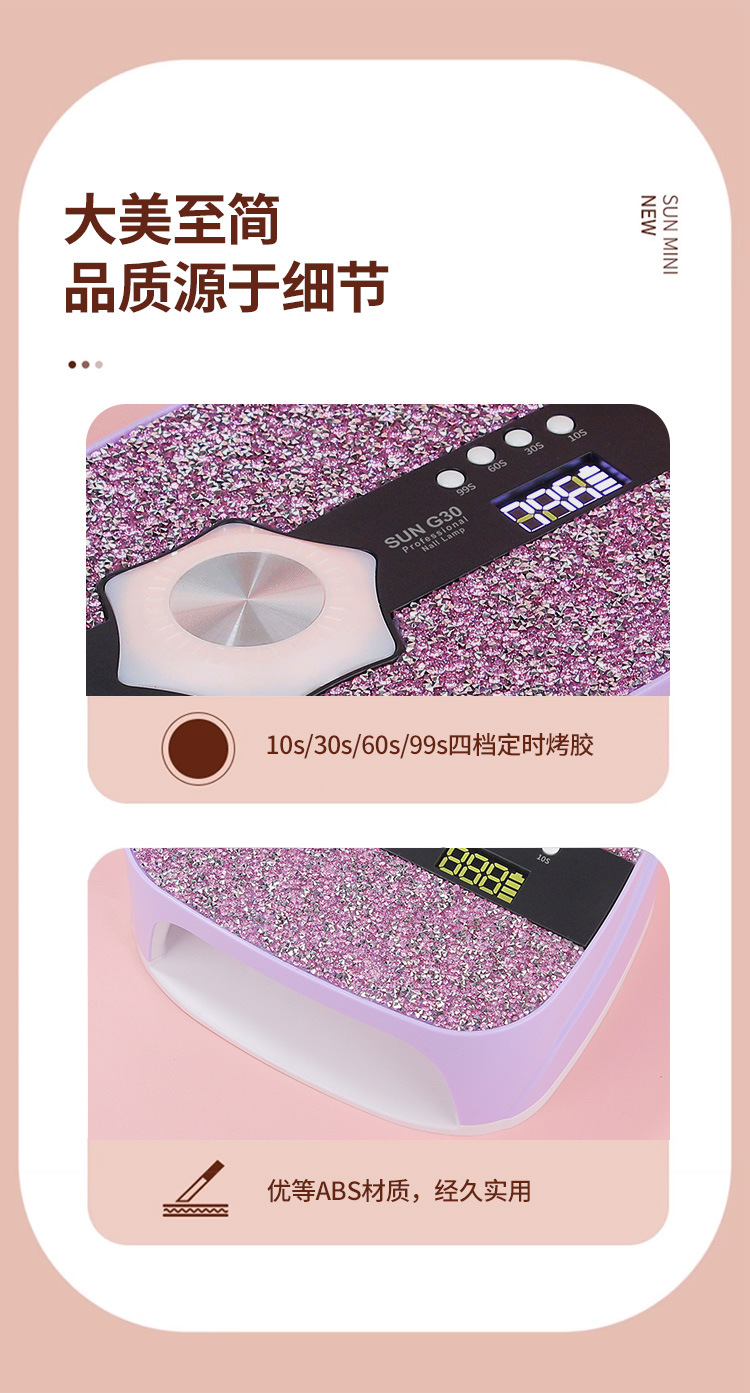 新款SUN G30镶钻美甲灯大功率甲油胶烤灯充电美甲光疗机美甲