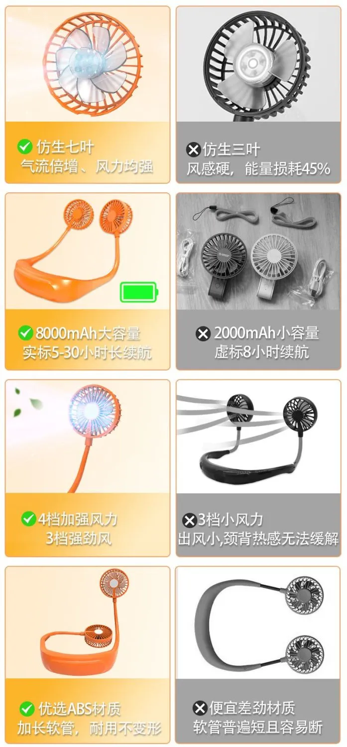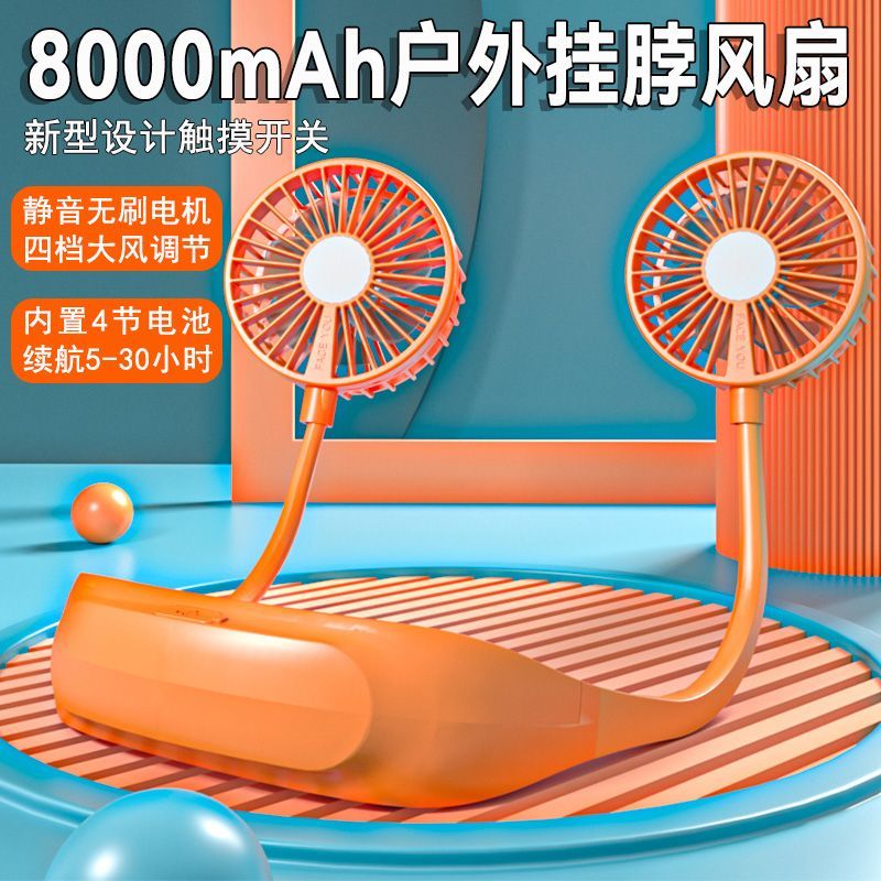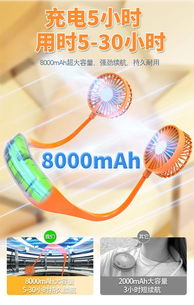 8000毫安新款挂脖风扇降温大风力上课静音宿舍工作风扇续航48小时