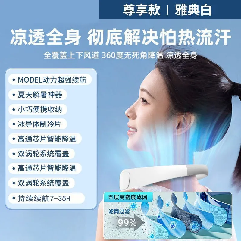 22000毫安挂脖风扇充电挂耳劲无叶制冷空调户外厨房夏天降温神器
