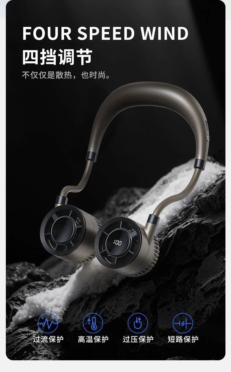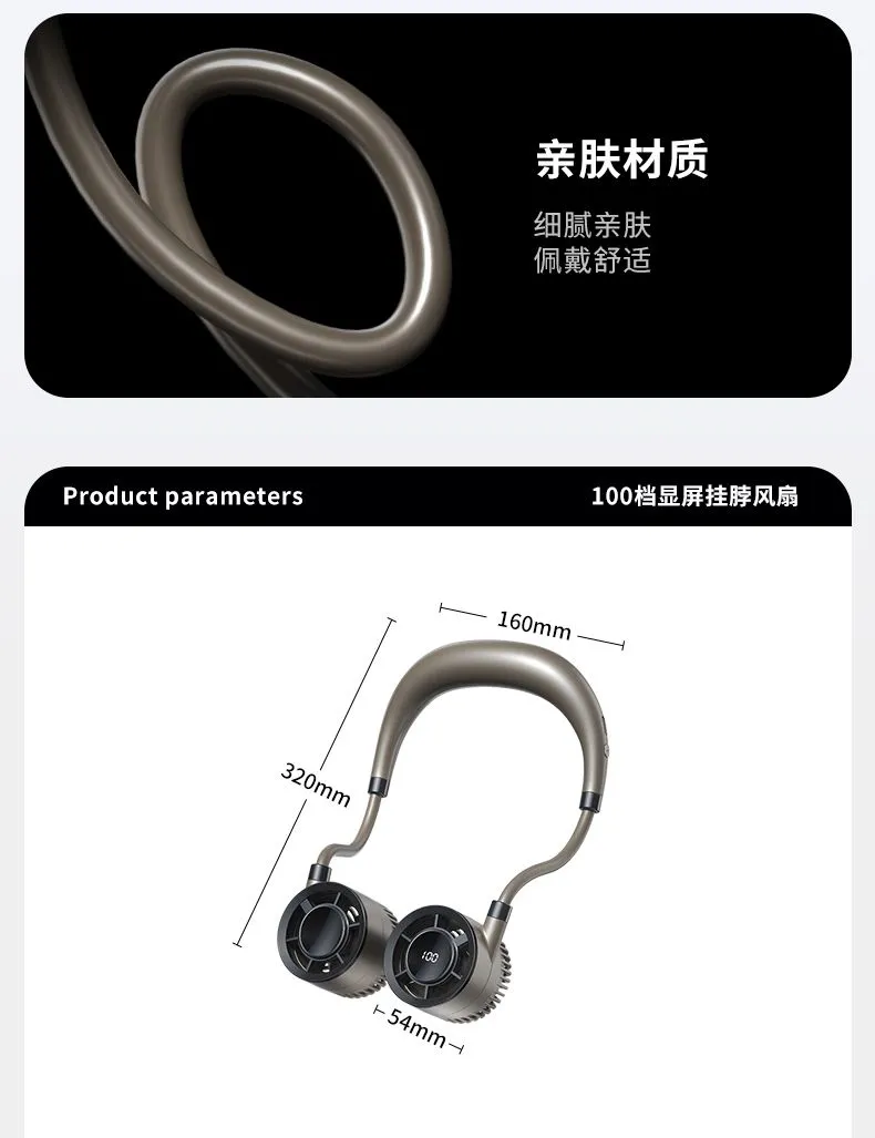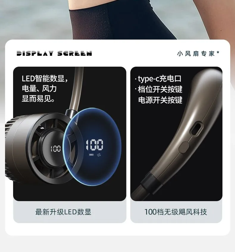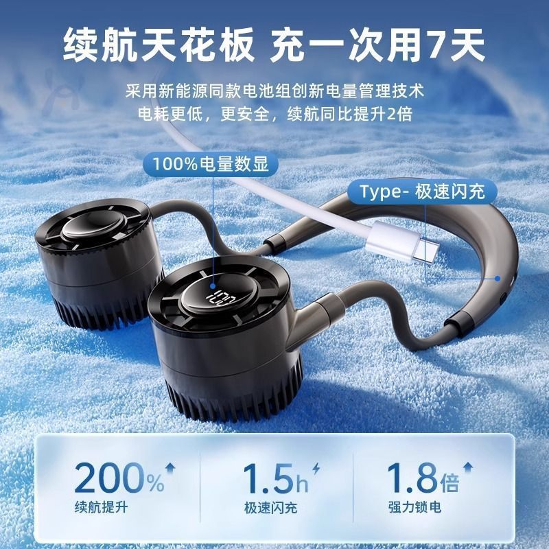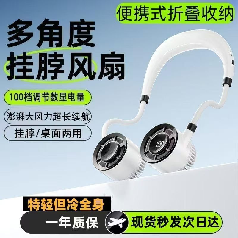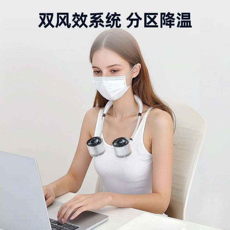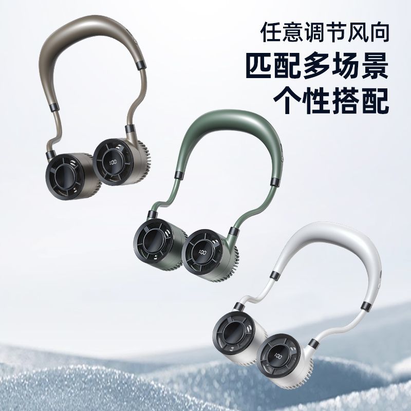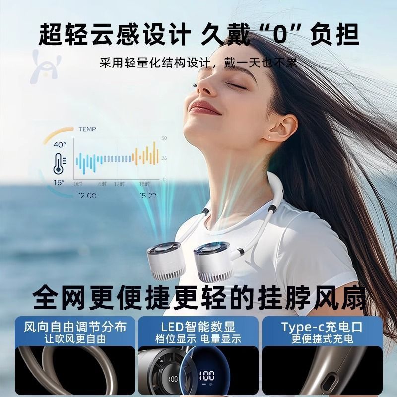 脖子挂脖风扇懒人便携式充电降温户外运动续航高速随身数显耐用