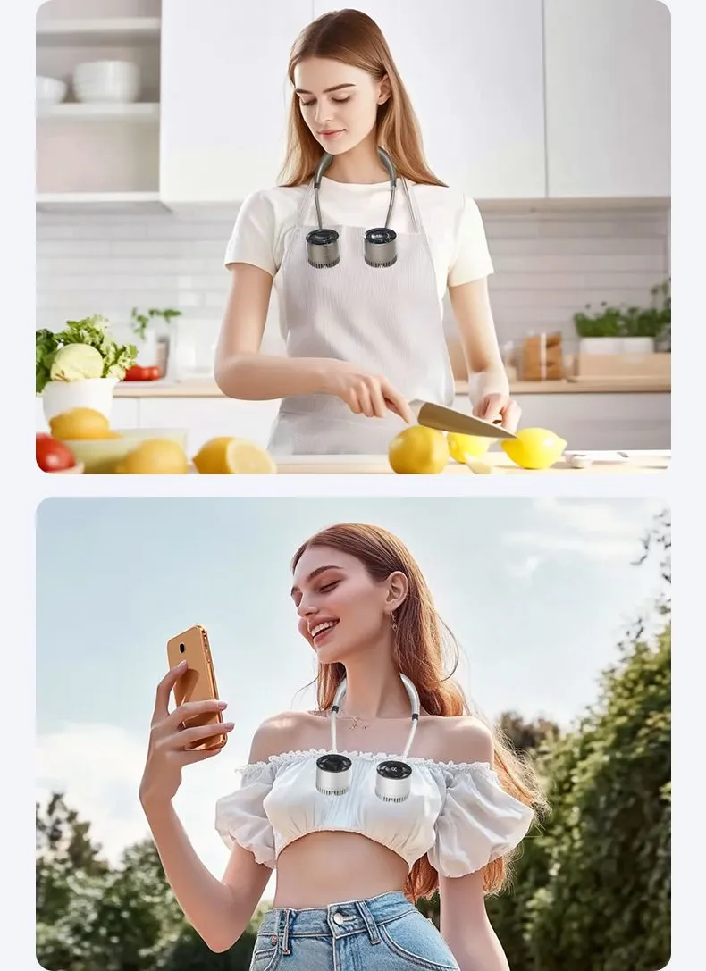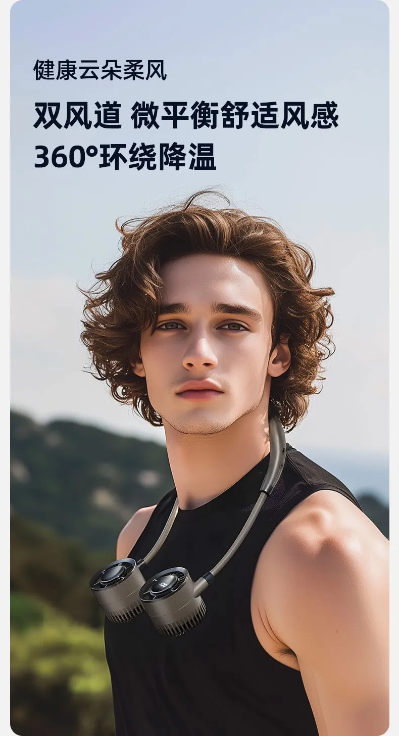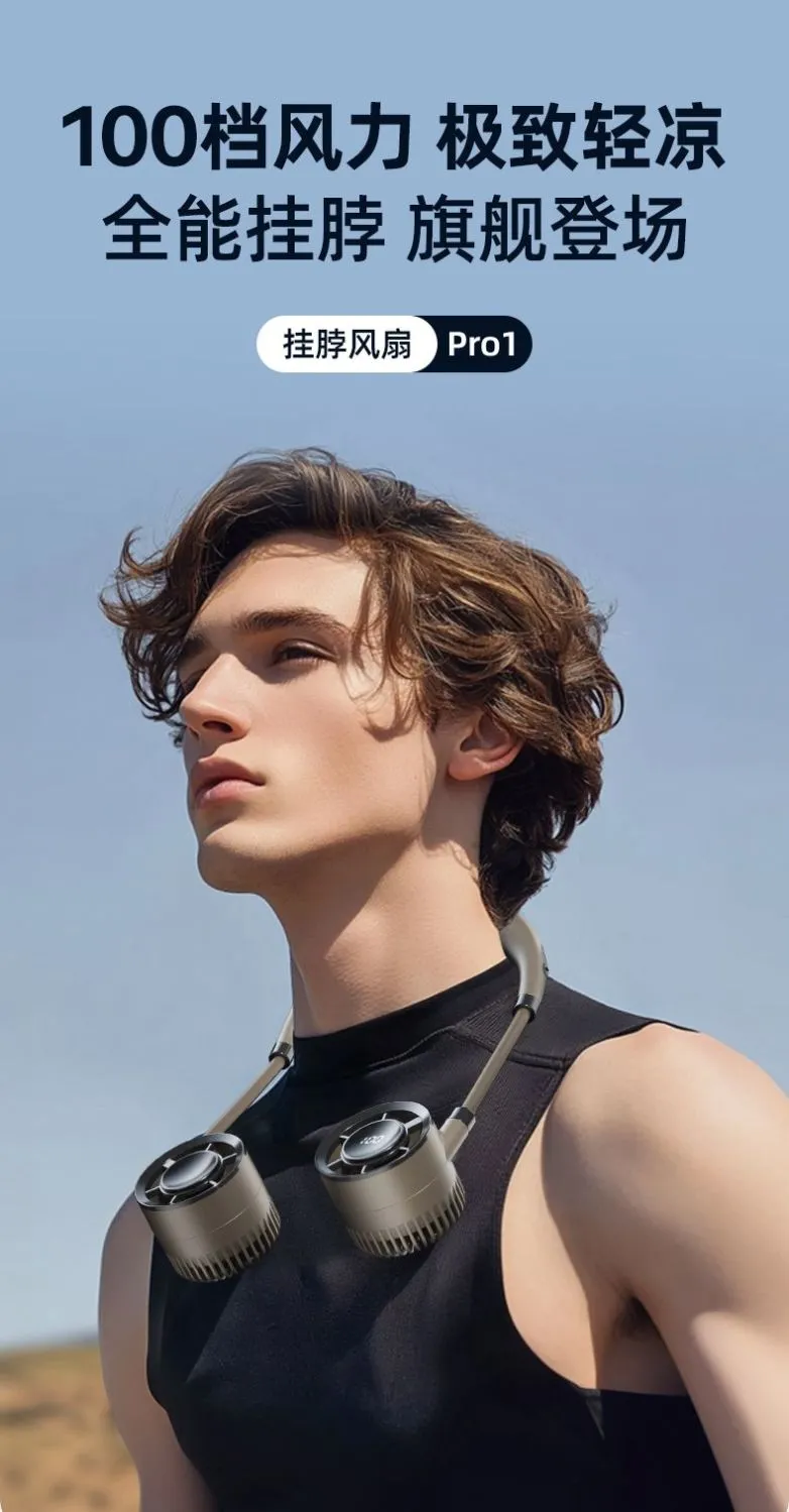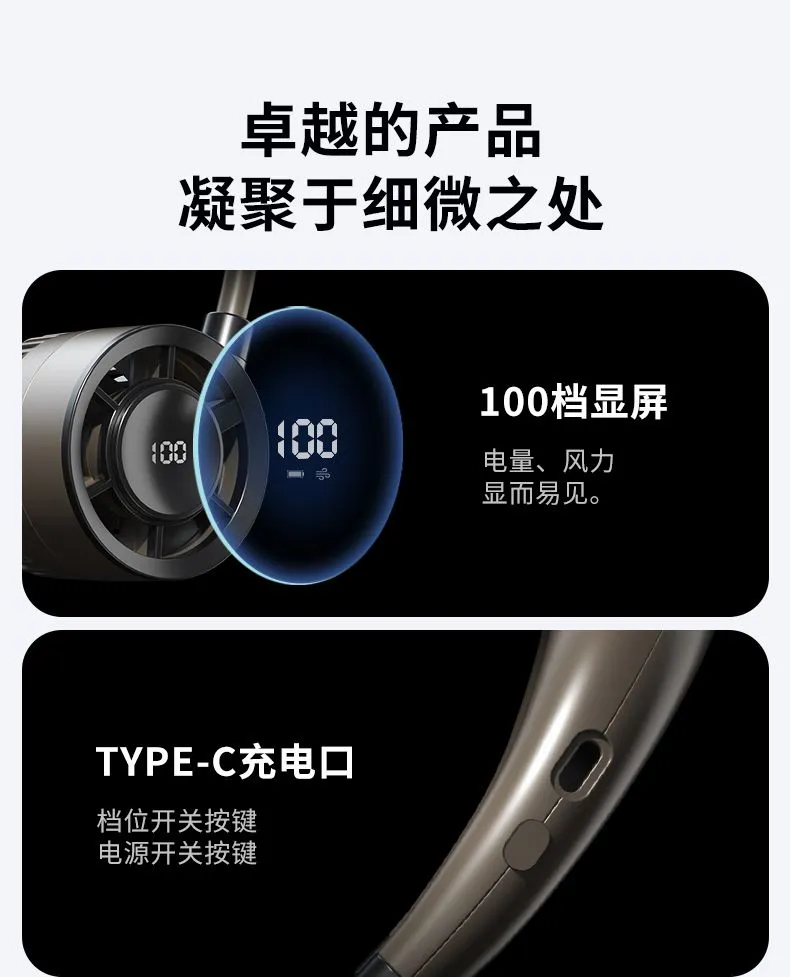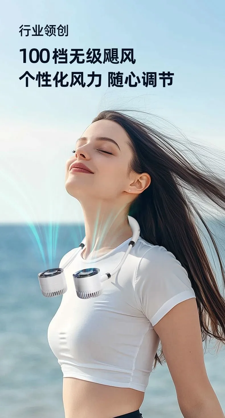 脖子挂脖风扇懒人便携式充电降温户外运动续航高速随身数显耐用