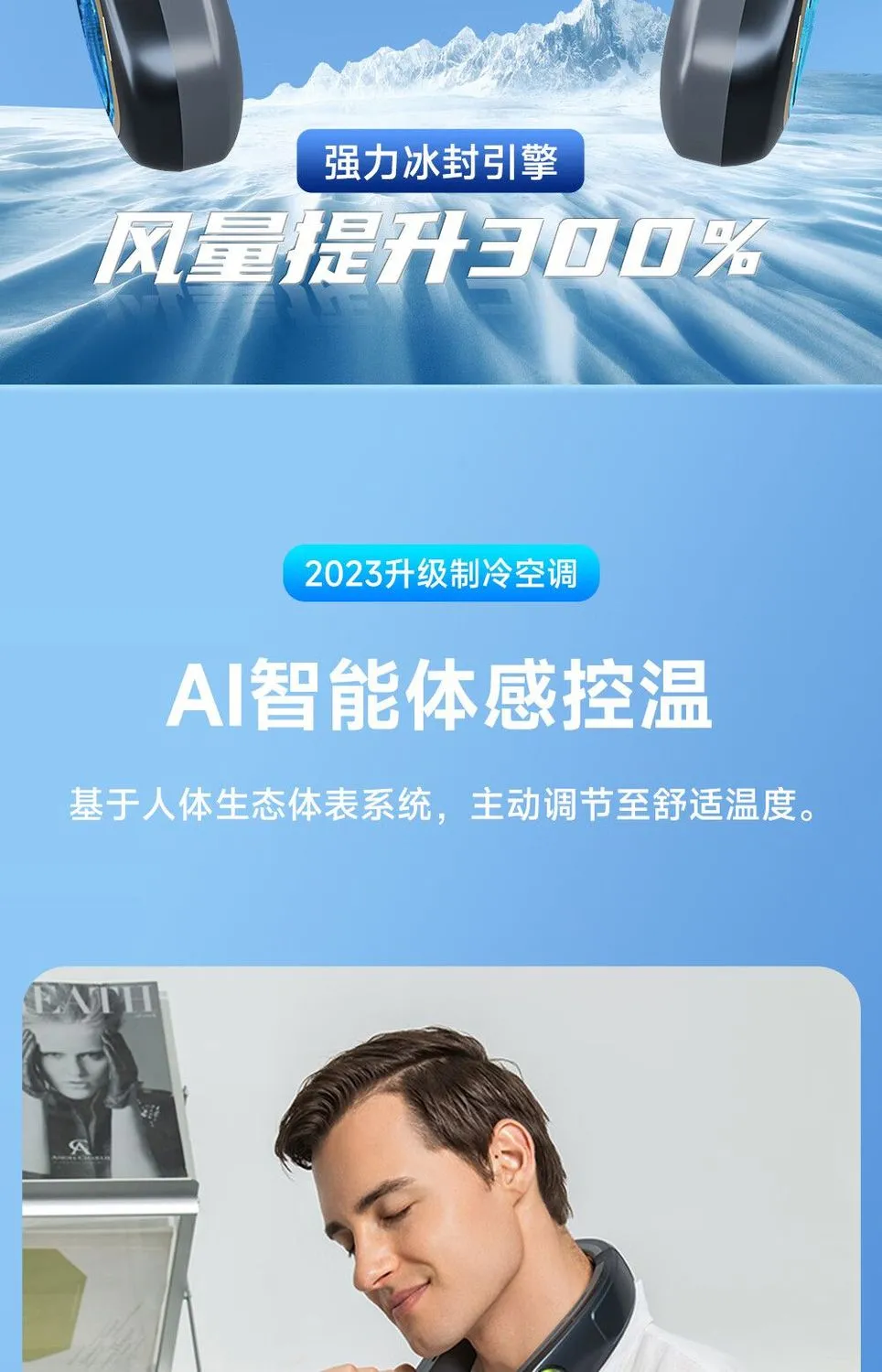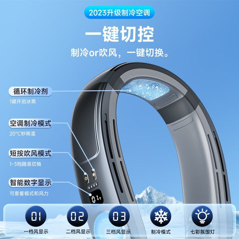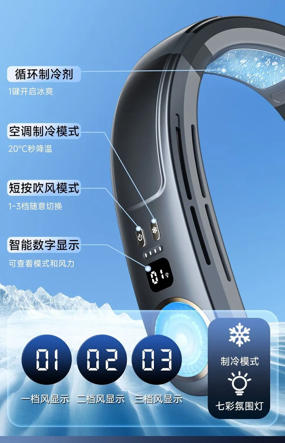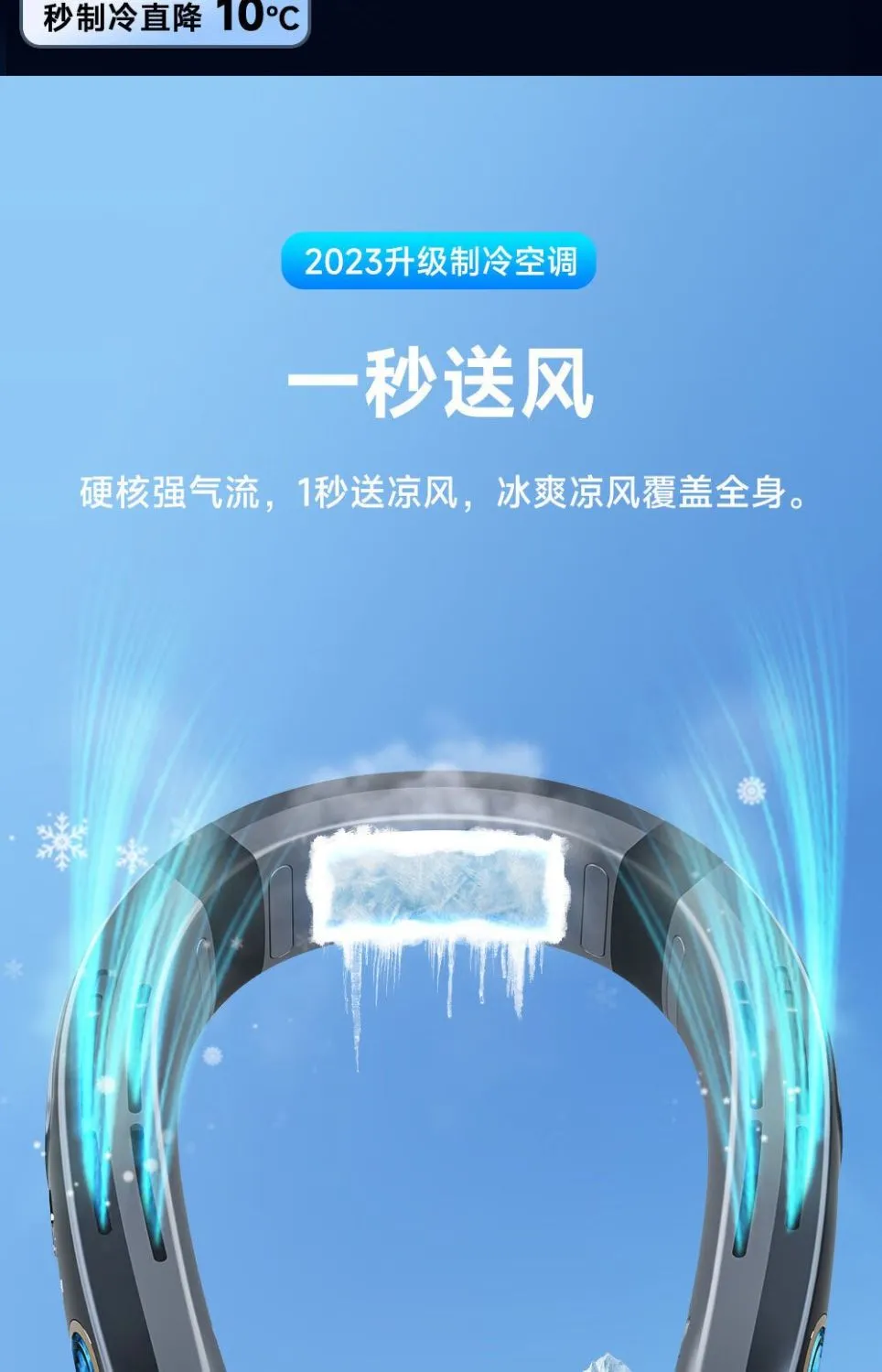 挂脖风扇制冷无叶充电便携式大风力长续航半导体无噪音懒人办公室