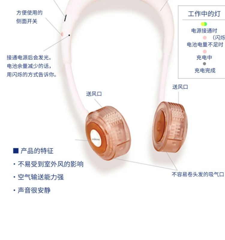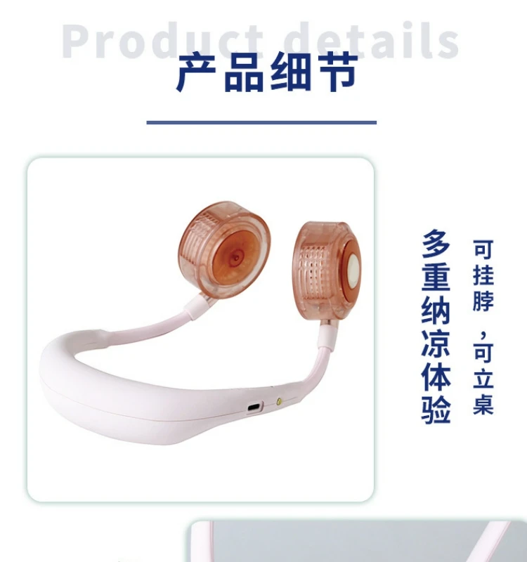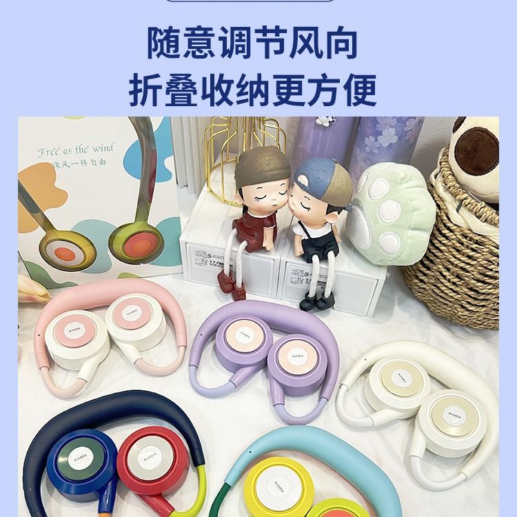 阿宜准无叶挂脖子风扇大风力懒人便携静音usb充电挂脖收纳小风扇