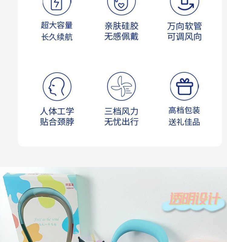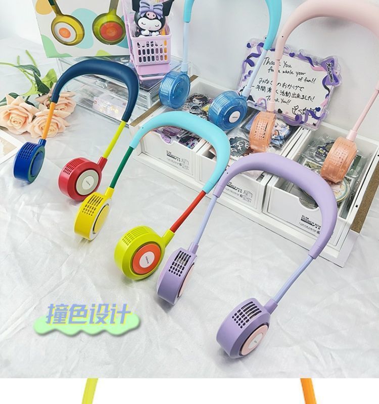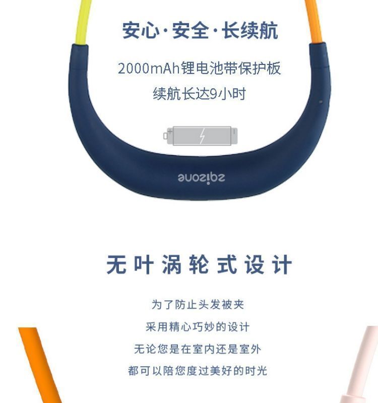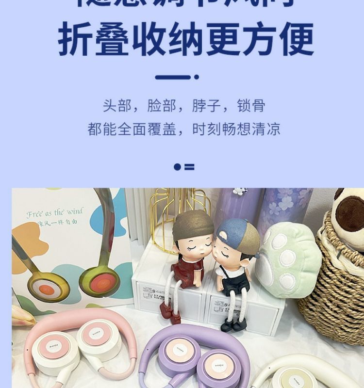 阿宜准无叶挂脖子风扇大风力懒人便携静音usb充电挂脖收纳小风扇