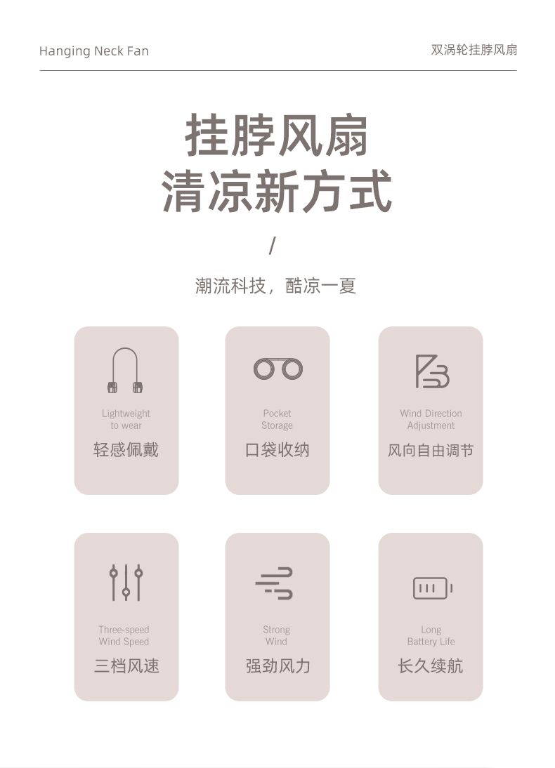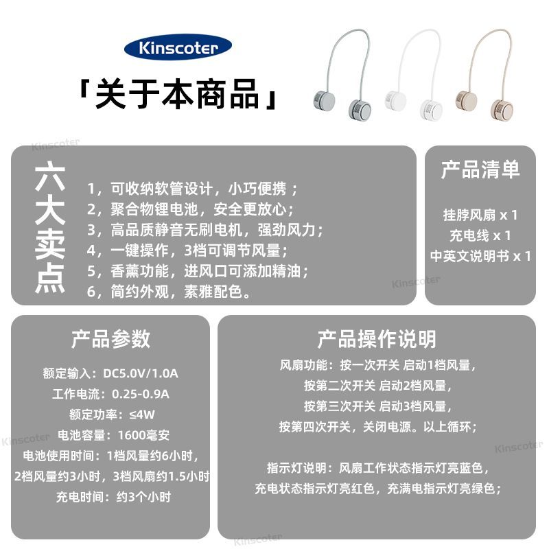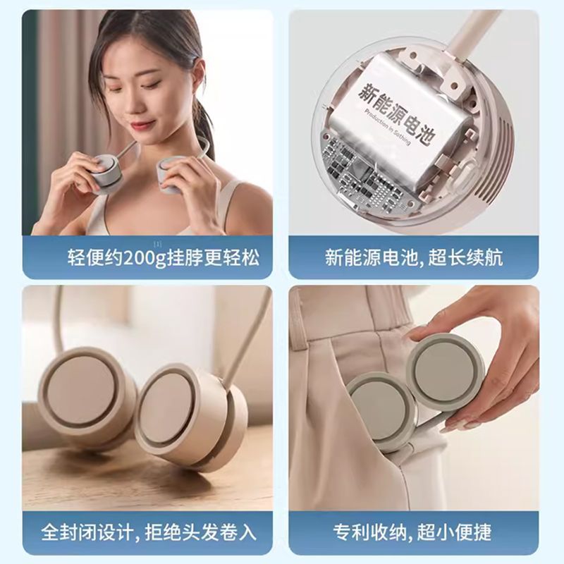 新款挂脖小风扇可折叠超便携 懒人风扇迷你USB长续航上班族 旅游
