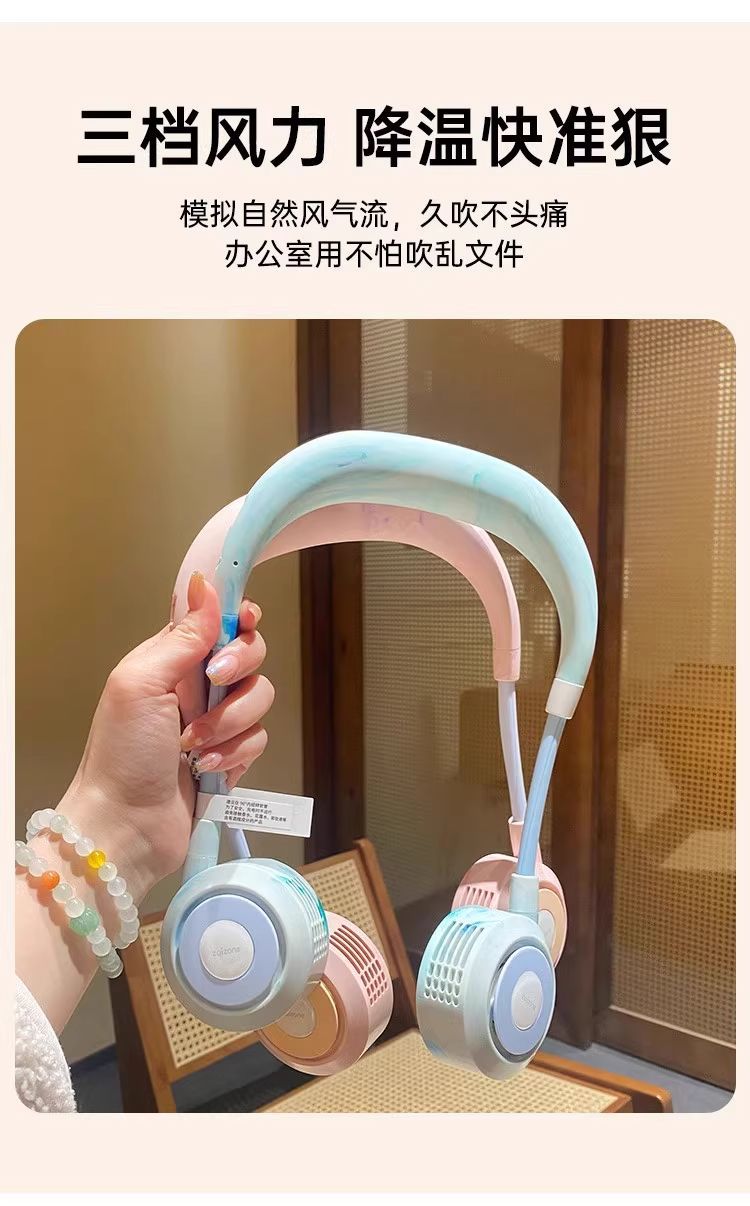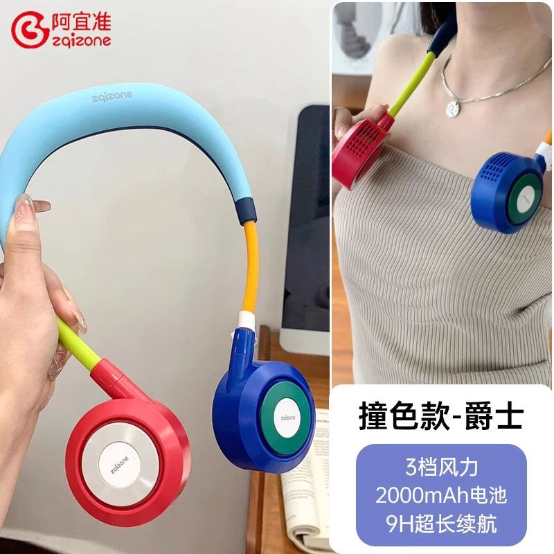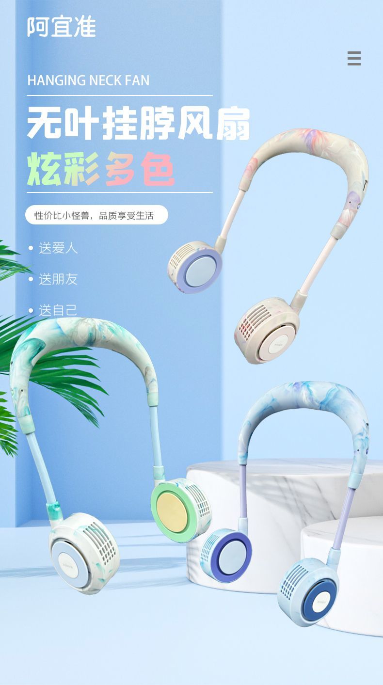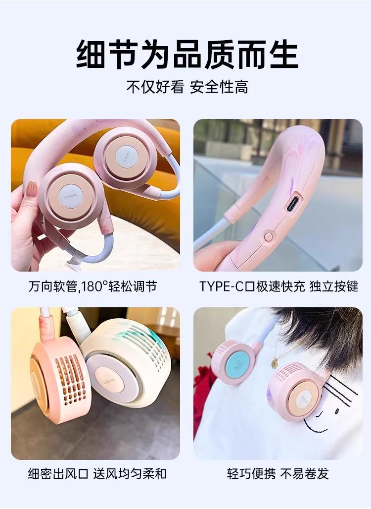 阿宜准USB挂脖风扇|时尚高颜值|无叶静音便捷式|柔软硅胶可折叠