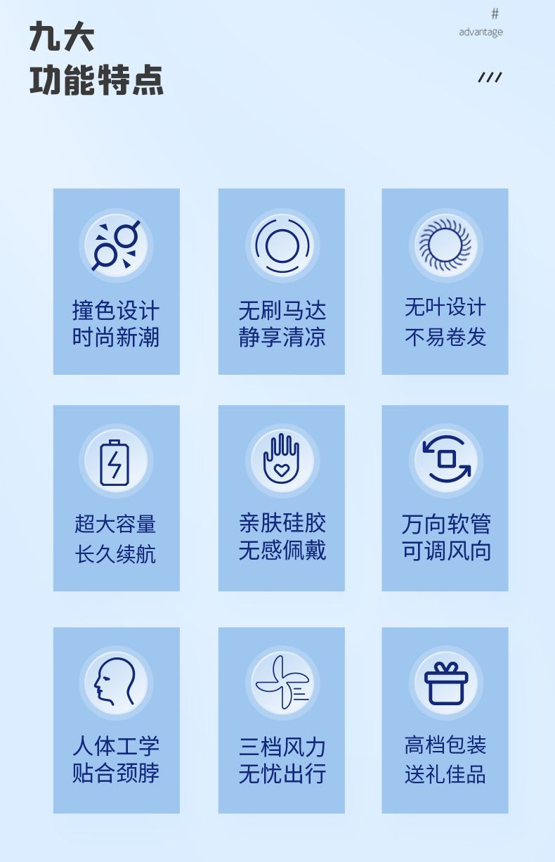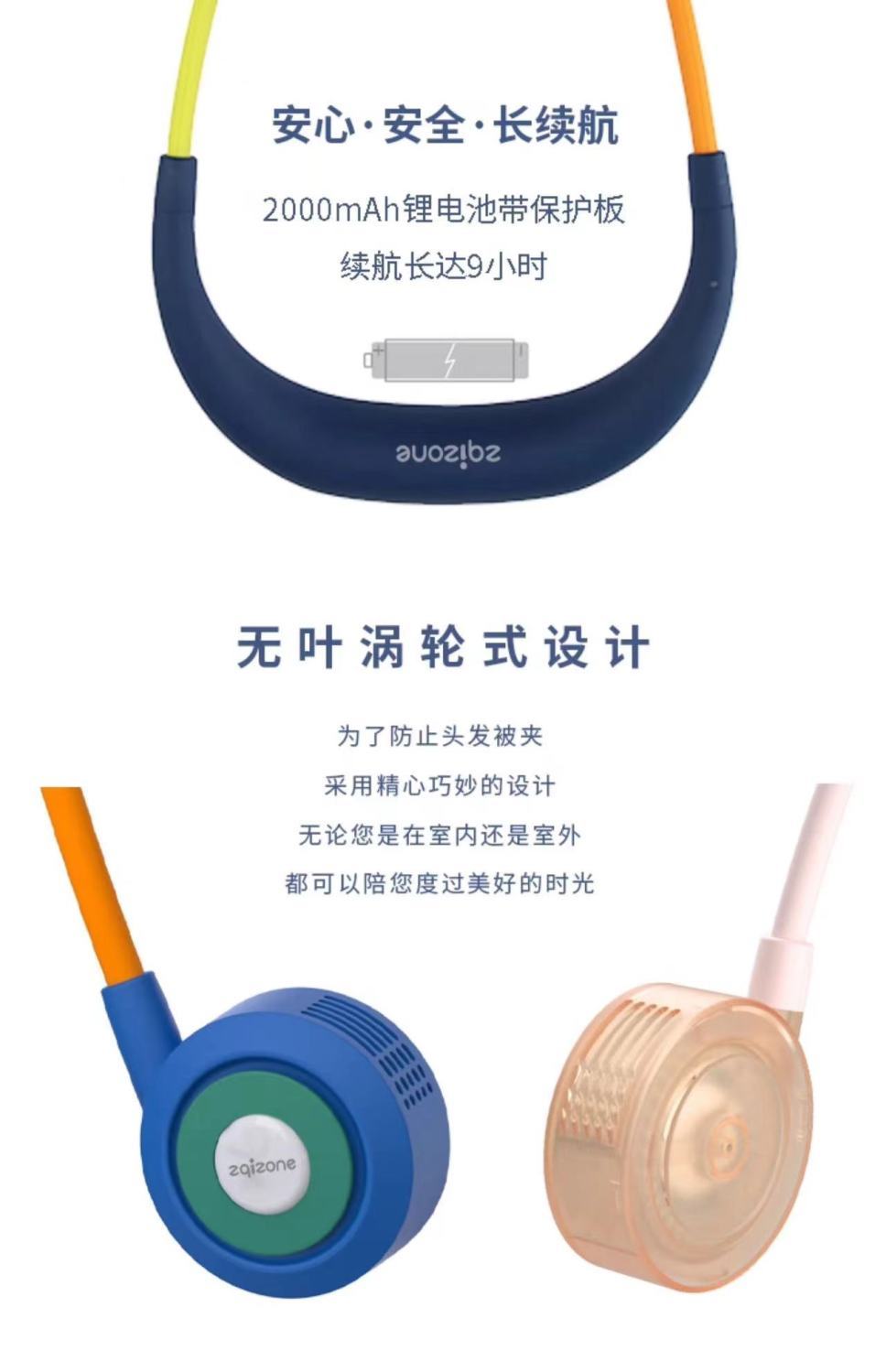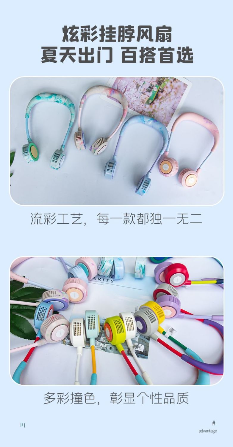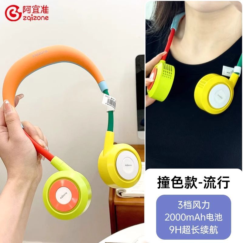 阿宜准USB挂脖风扇|时尚高颜值|无叶静音便捷式|柔软硅胶可折叠