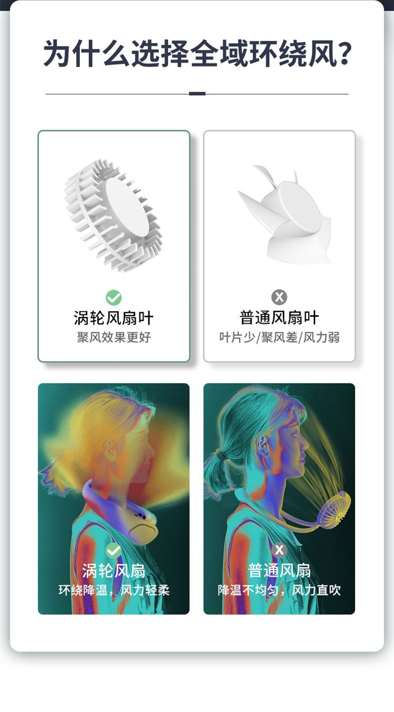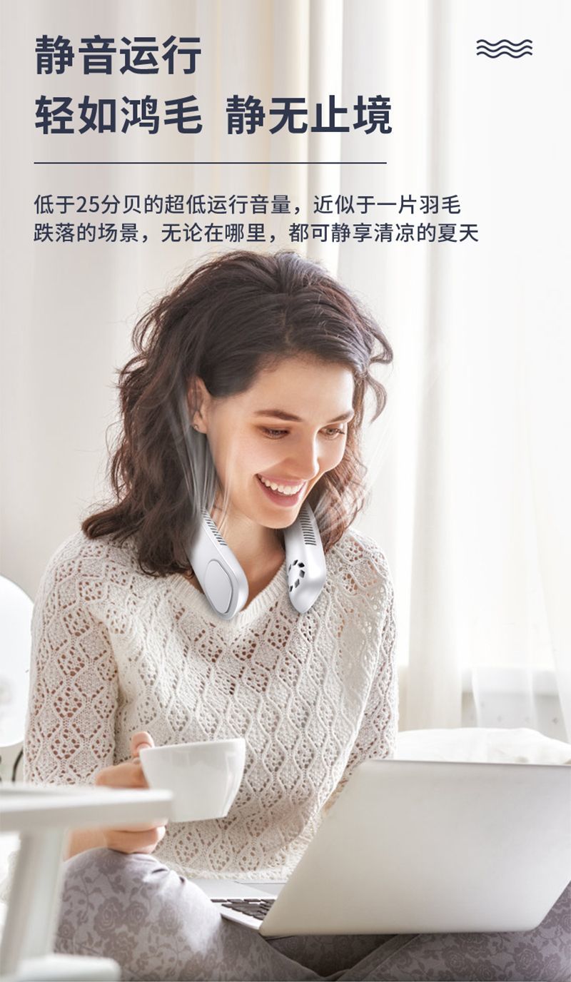 24000M懒人新款无叶挂脖风扇户外静音制冷空调随身便携usb可充电