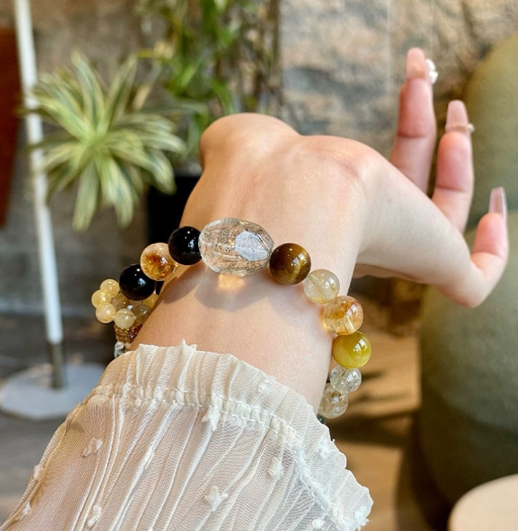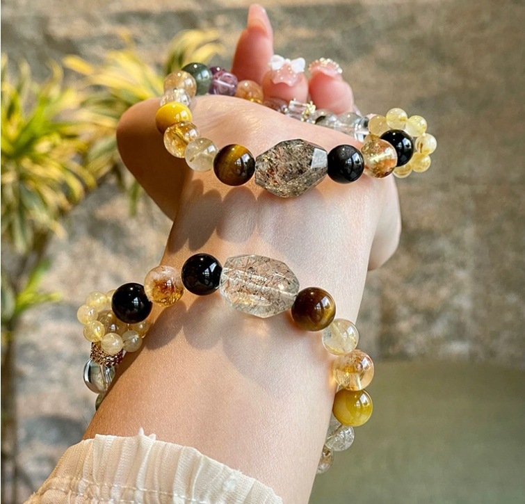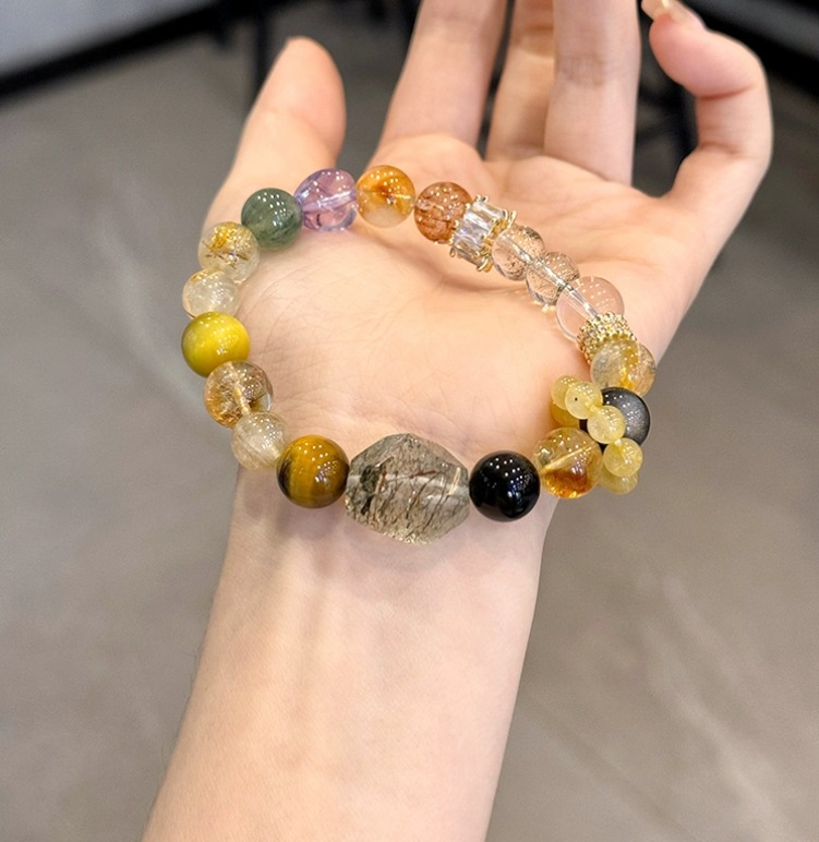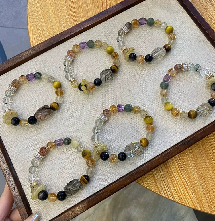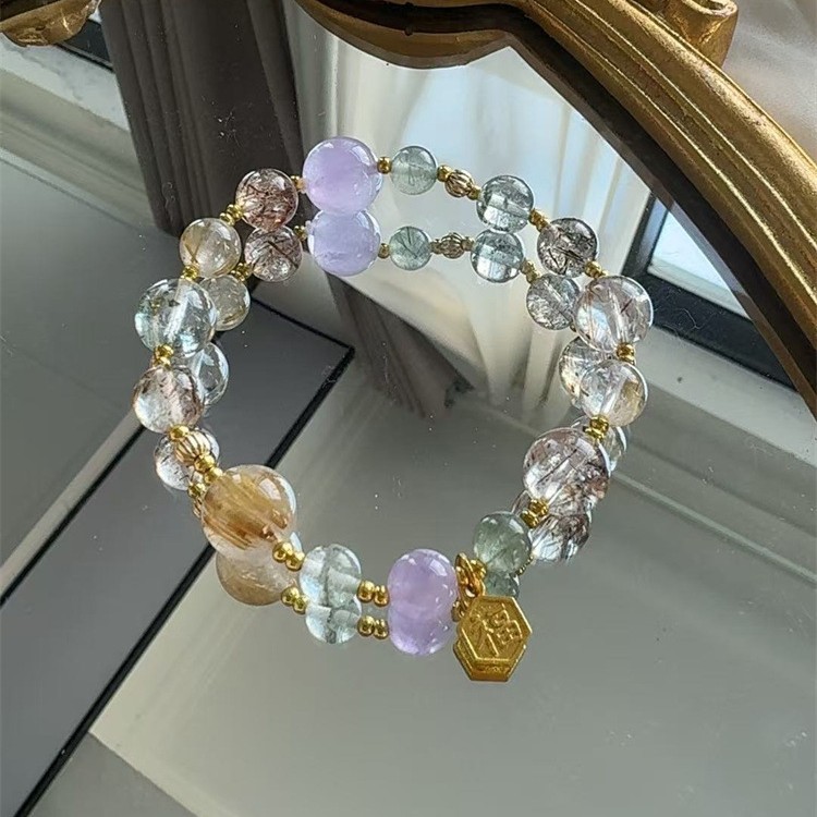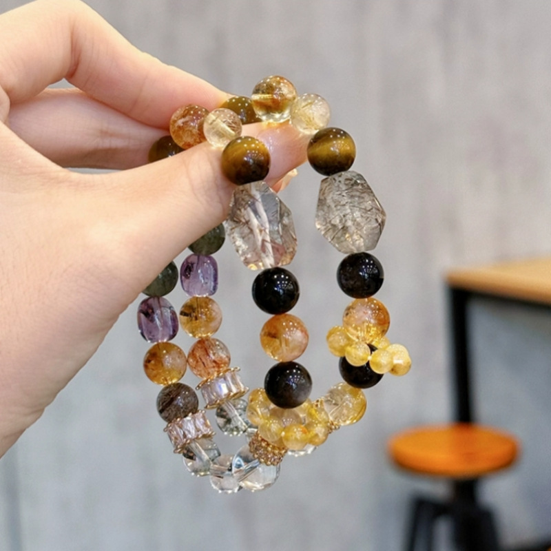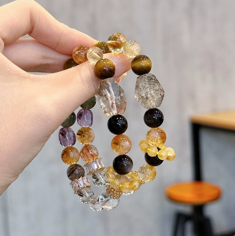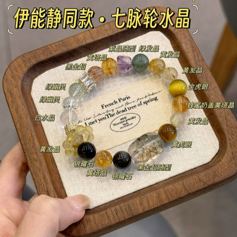 伊能静同款水晶七轮脉手串黑金超随型虎眼石金发晶绿幽灵多宝手链
