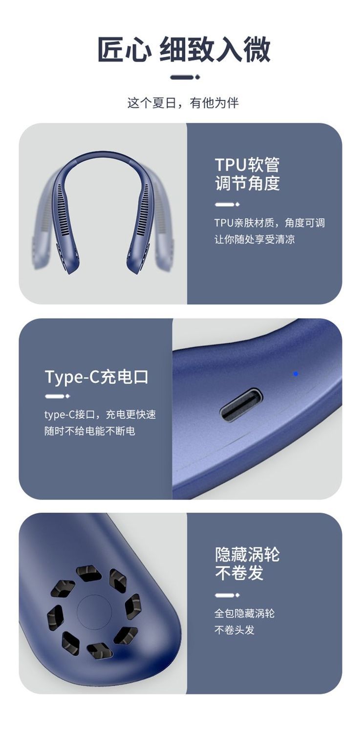 24000M挂脖小风扇usb充电小风扇随身制冷小型无叶懒人挂脖子空调