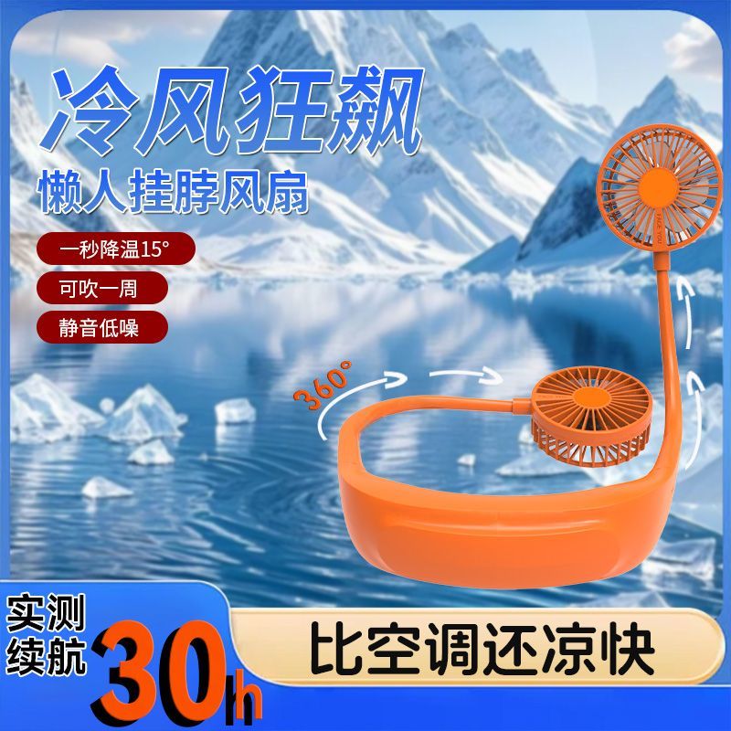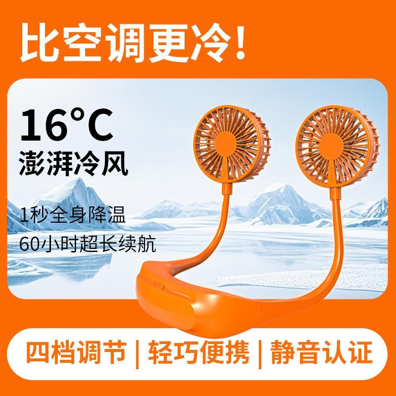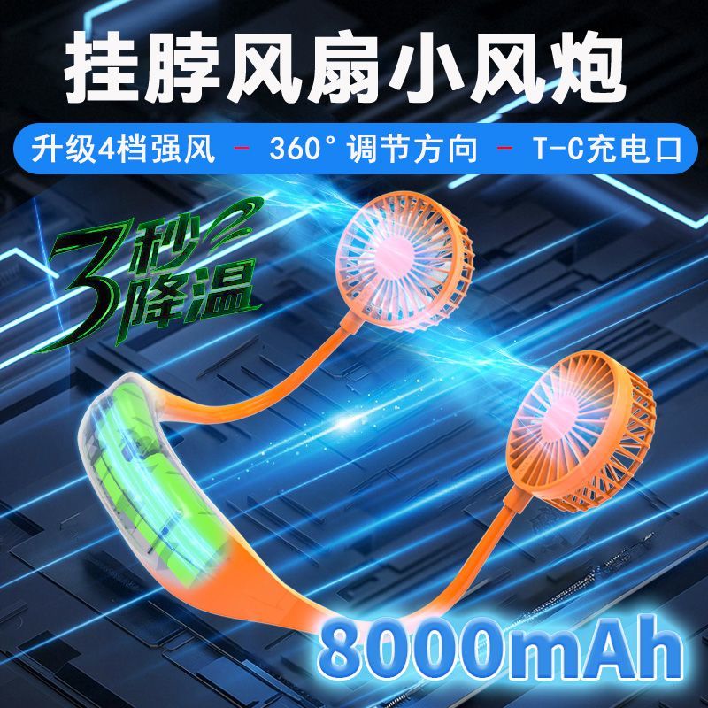 18000M懒人挂脖风扇USB便携静音高颜值挂脖子小风扇大风力可充电