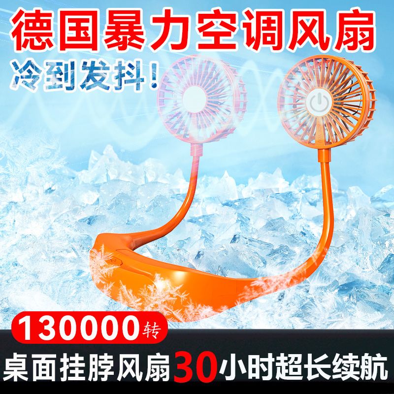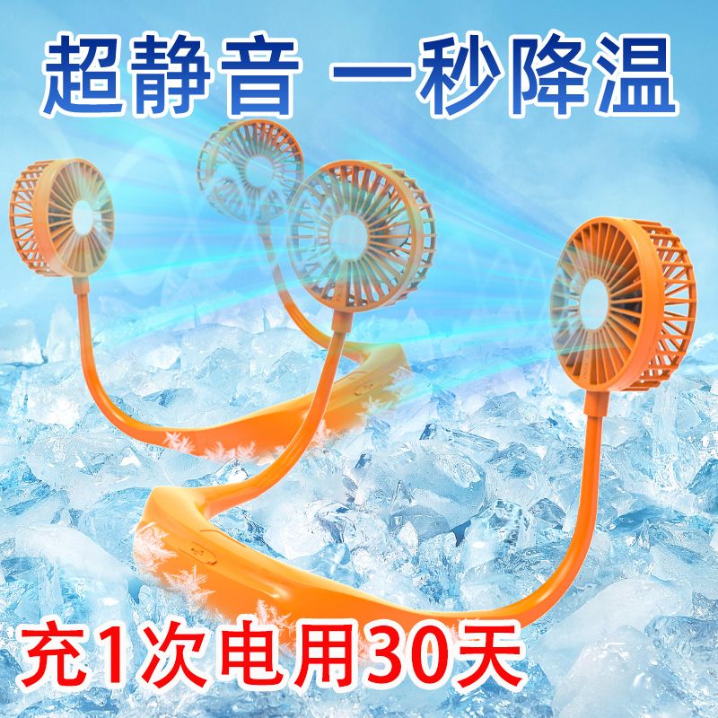 13000M新款挂脖小风扇宿舍静音便携式USB充电可折叠高颜值电风扇