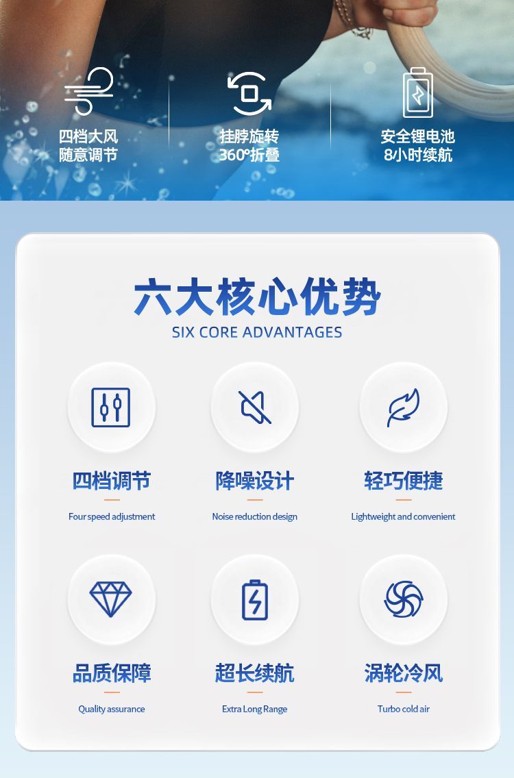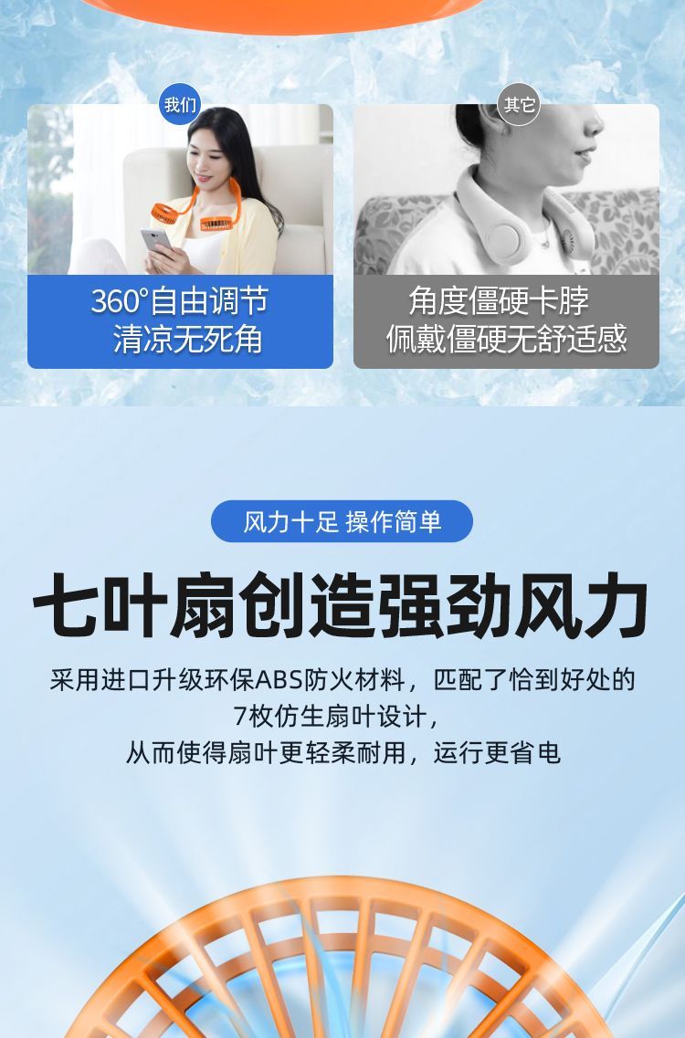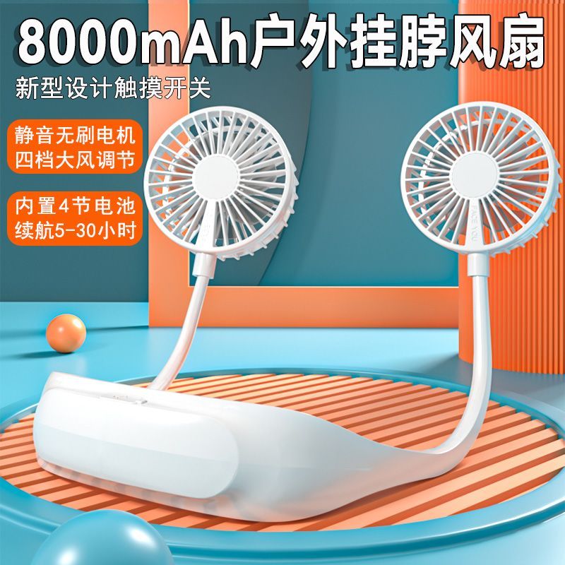 13000M挂脖式小风扇usb充电迷你学生户外超静音可折叠厨房办公室