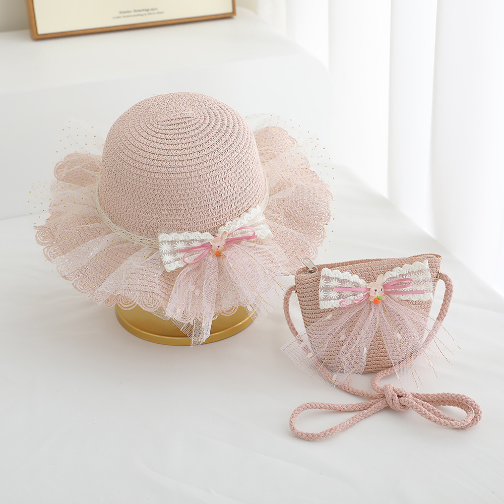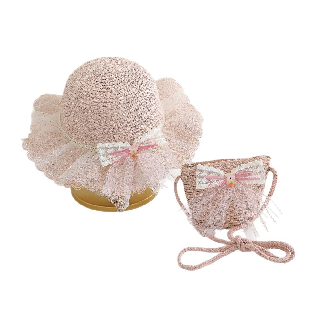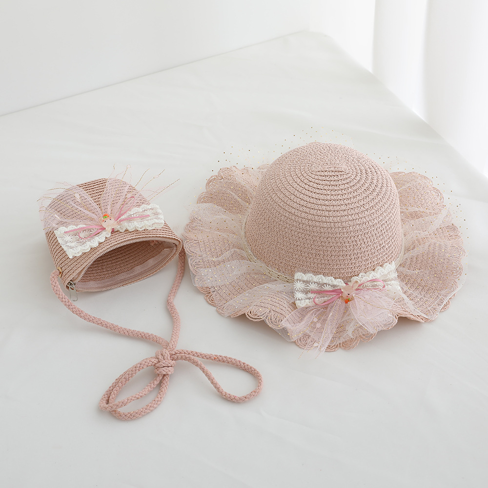 宝宝帽子夏季女童草帽包包套装儿童网纱遮阳帽女孩公主帽子太阳帽