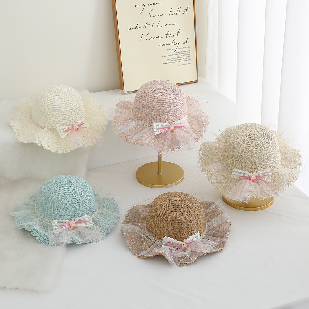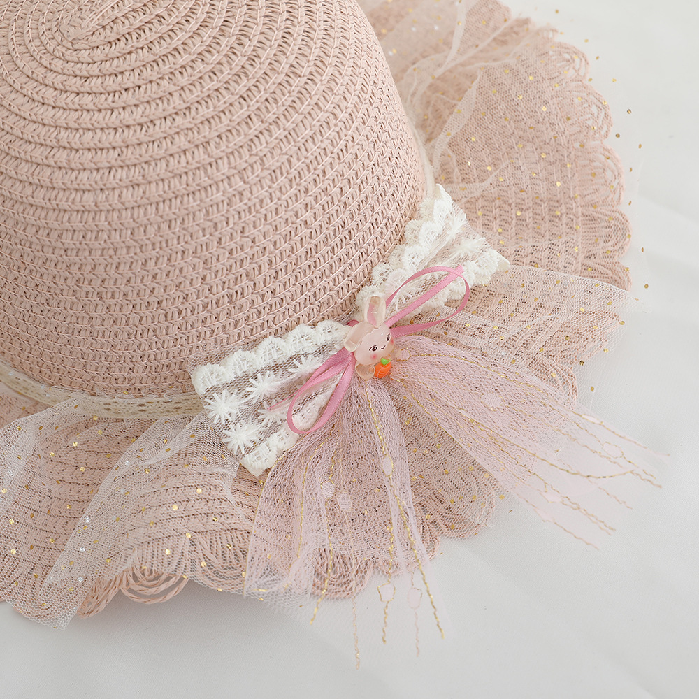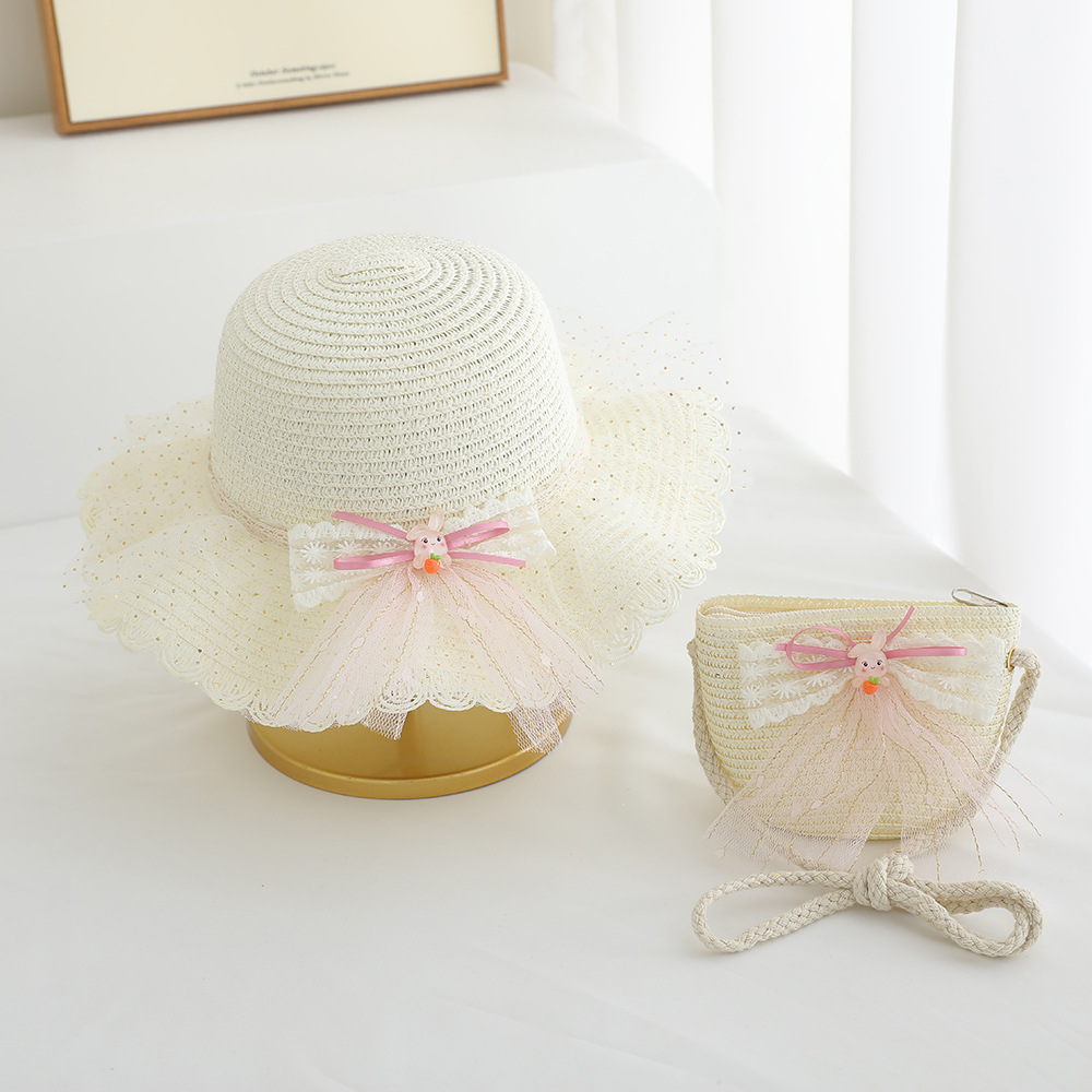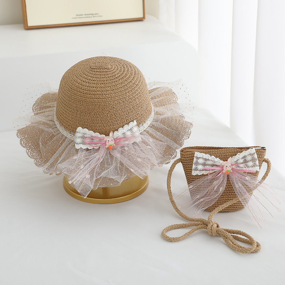 宝宝帽子夏季女童草帽包包套装儿童网纱遮阳帽女孩公主帽子太阳帽