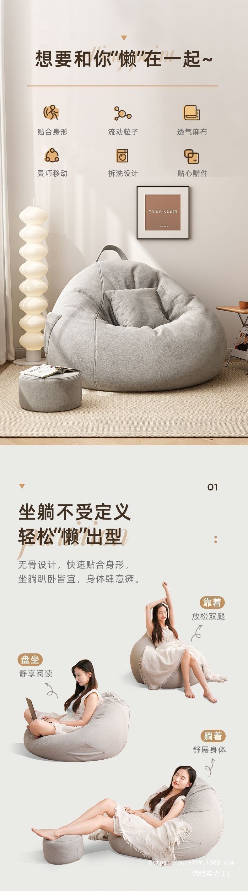 豆袋懒人沙发懒人单椅客厅阳台休闲耐磨可躺可睡榻榻米懒人沙发